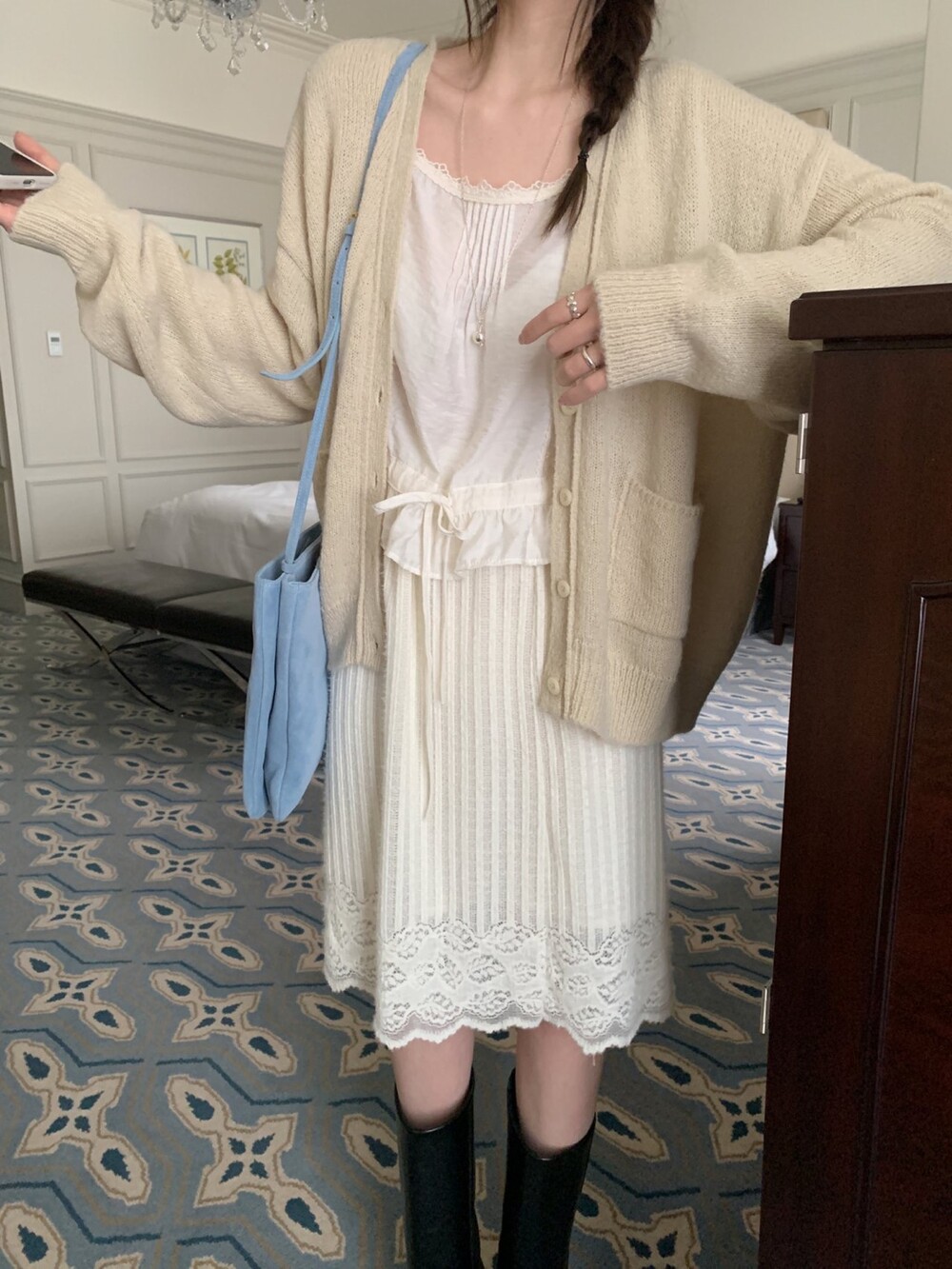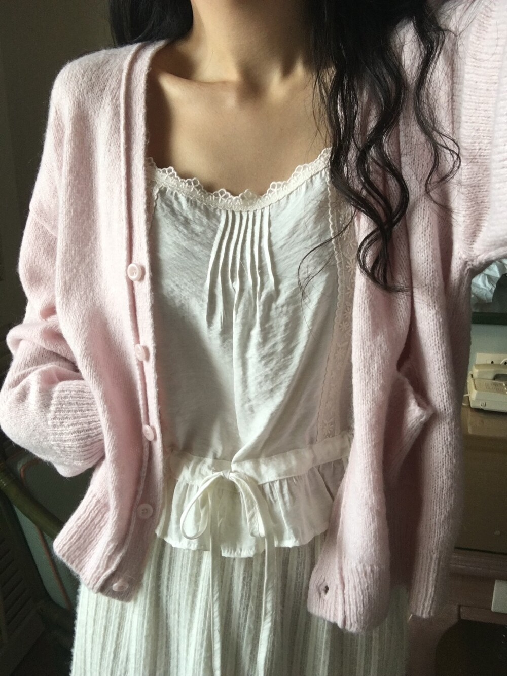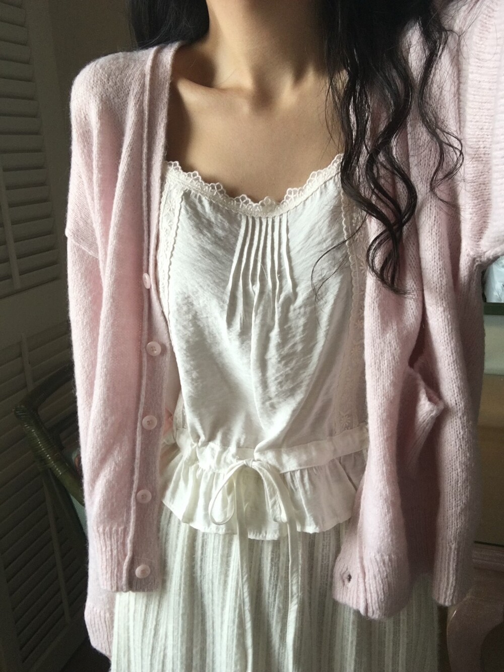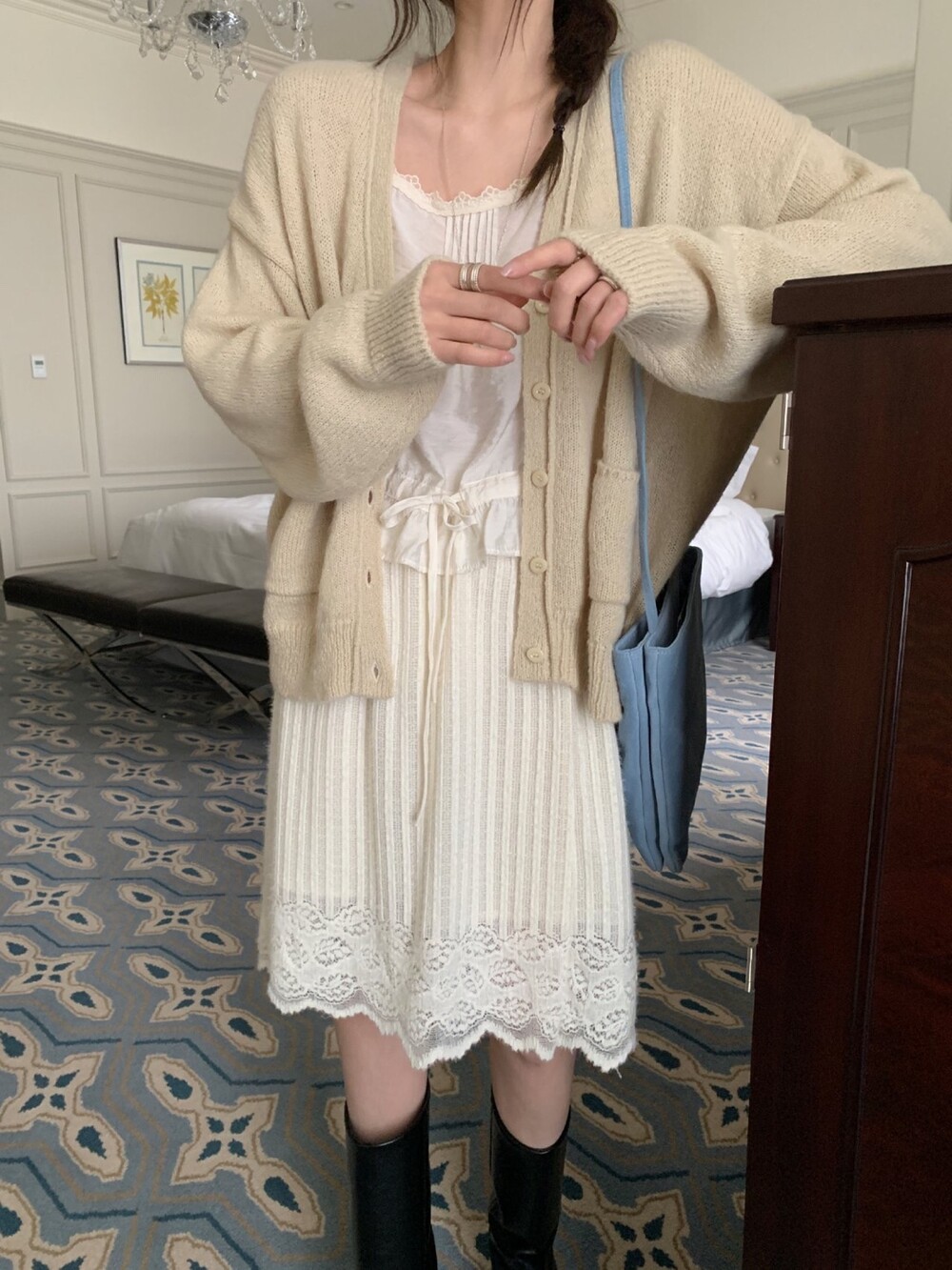 가디건이나 셔츠 안에 이너로 매치해 레이스 포인트만 살짝 보여주어도 정말 예뻐요.