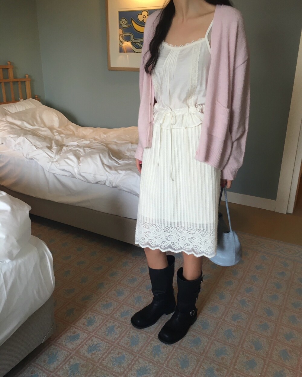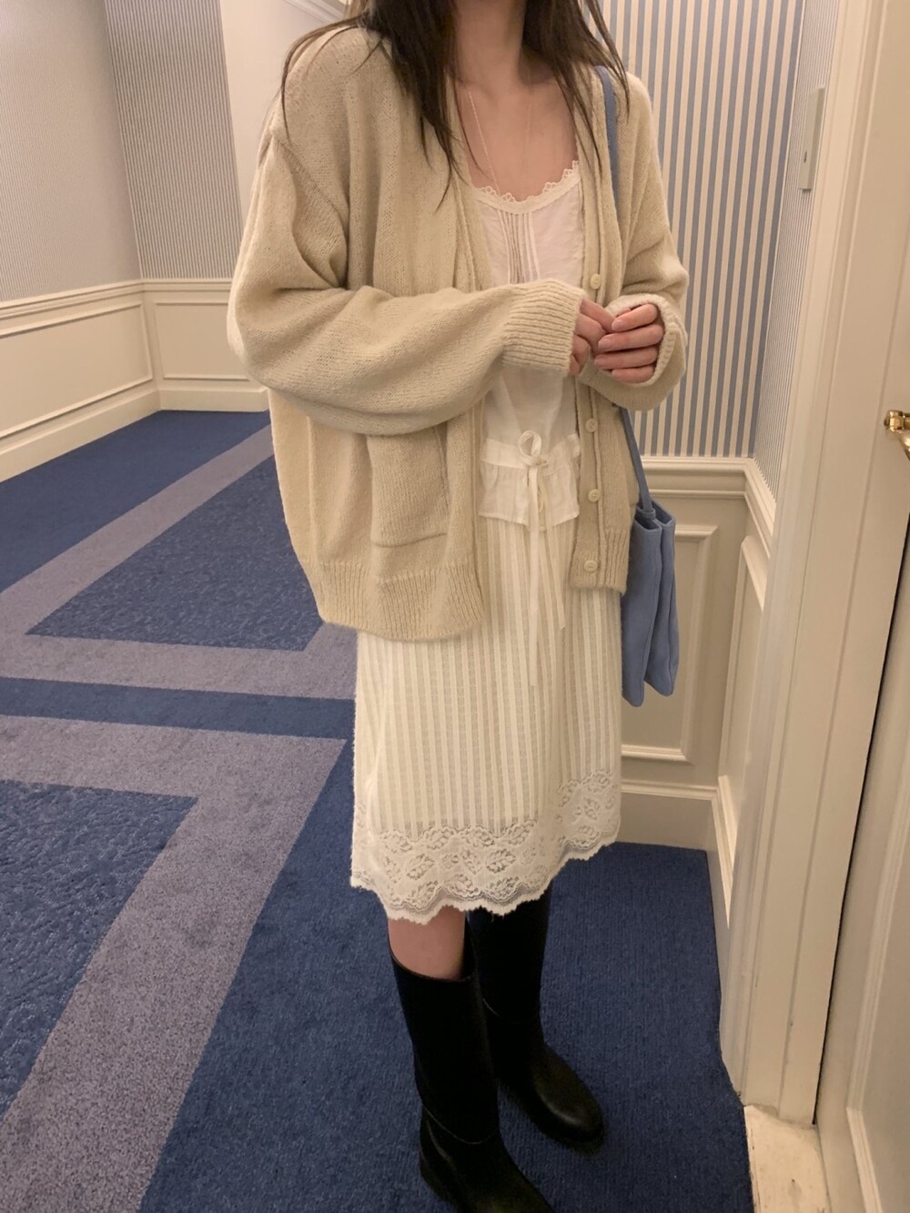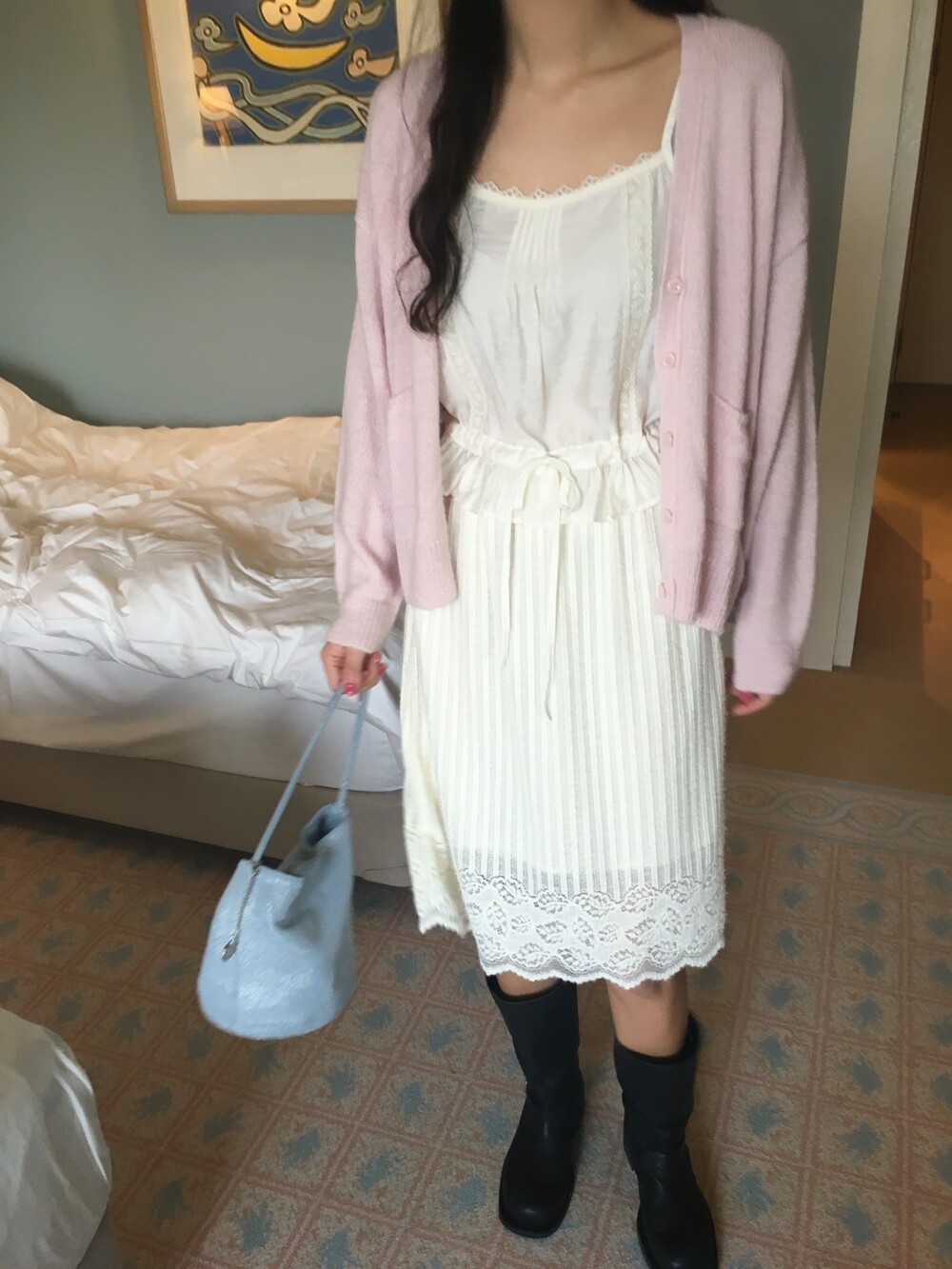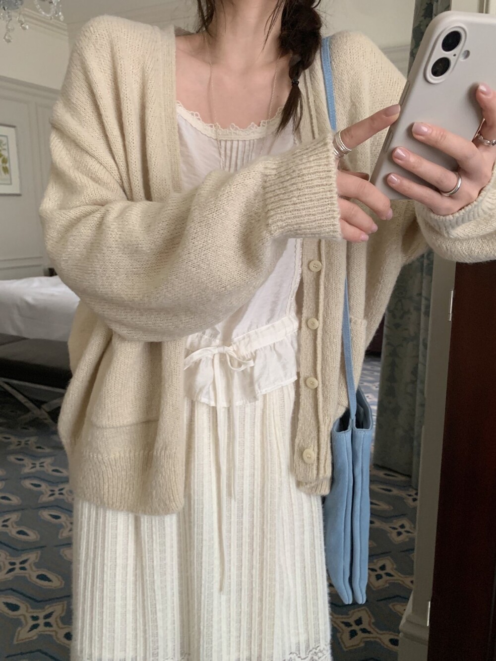 가디건이나 셔츠 안에 이너로 매치해 레이스 포인트만 살짝 보여주어도 정말 예뻐요.