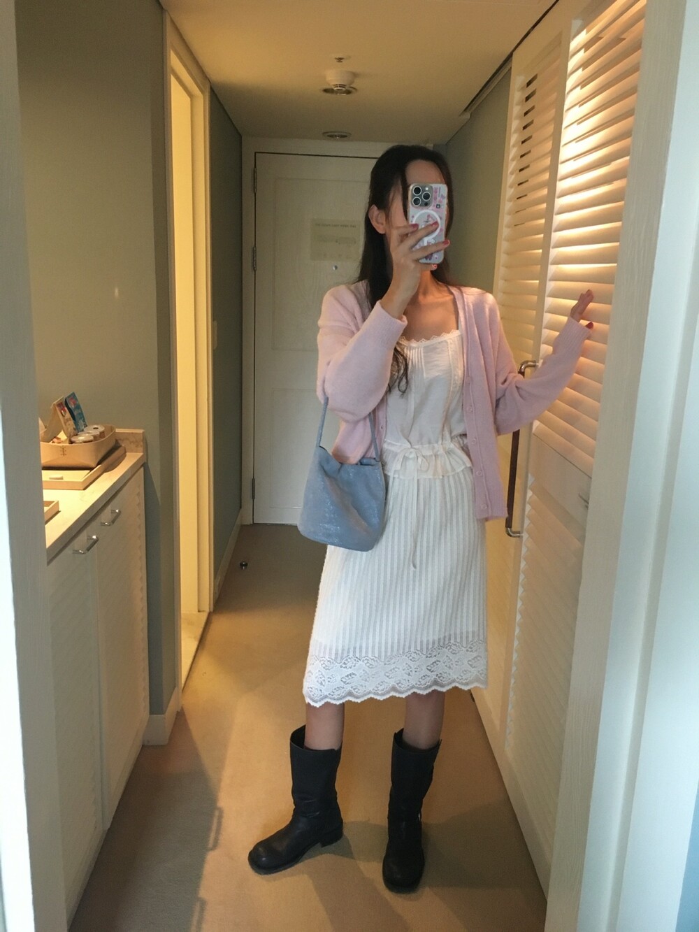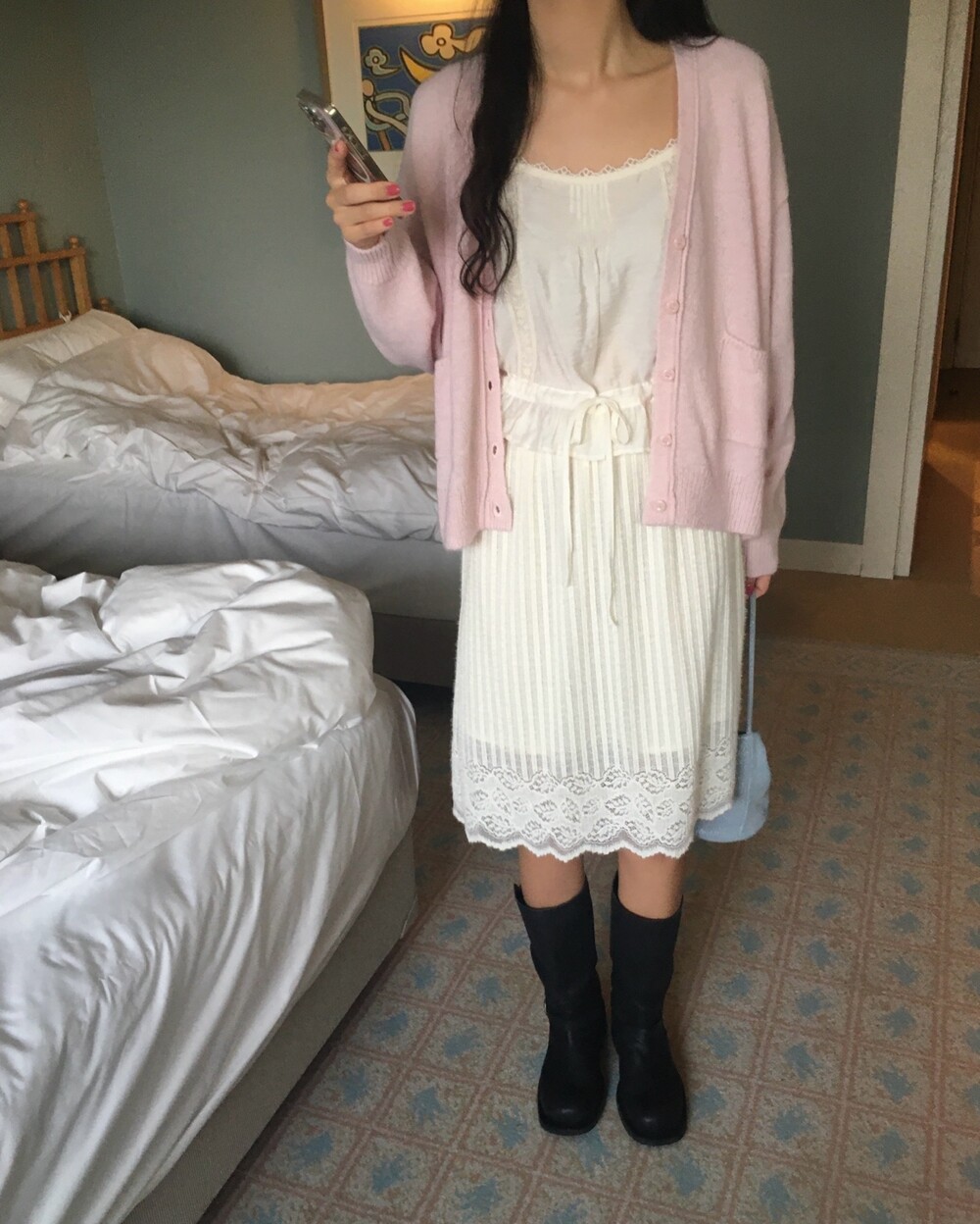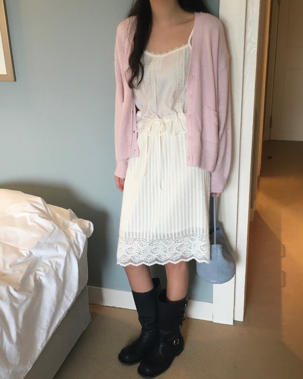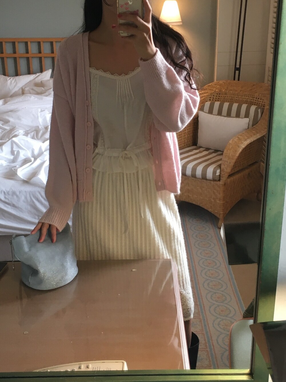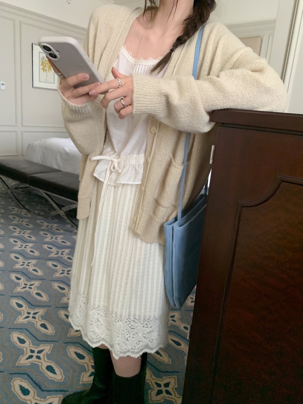가디건이나 셔츠 안에 이너로 매치해 레이스 포인트만 살짝 보여주어도 정말 예뻐요.