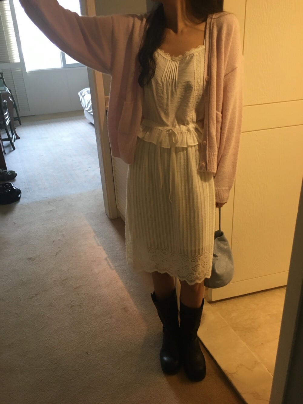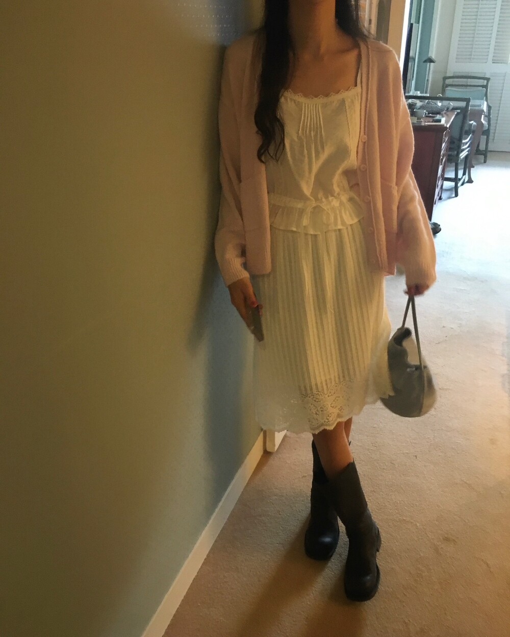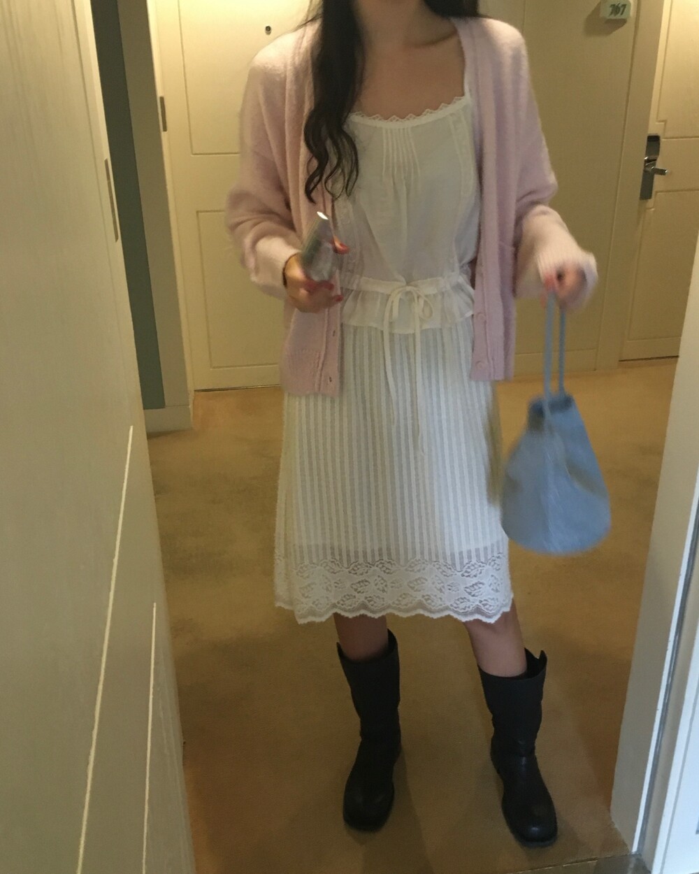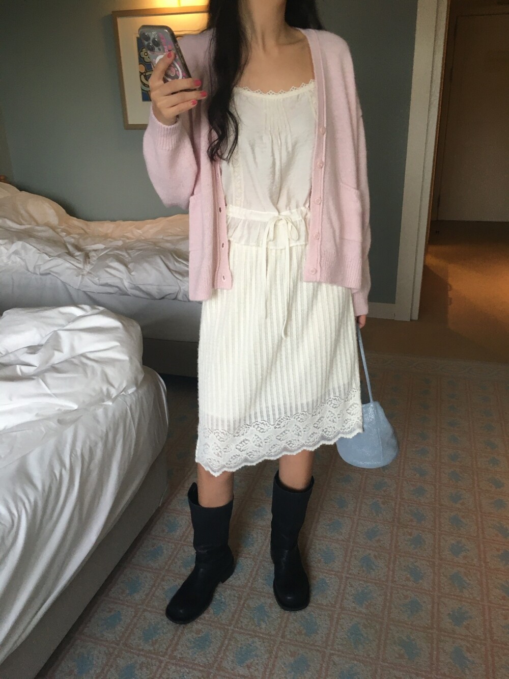 가디건이나 셔츠 안에 이너로 매치해 레이스 포인트만 살짝 보여주어도 정말 예뻐요.