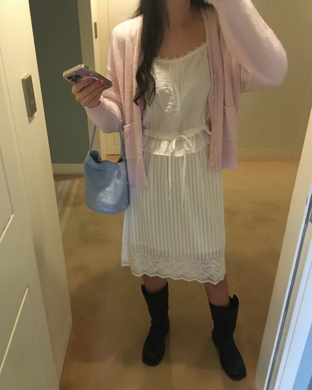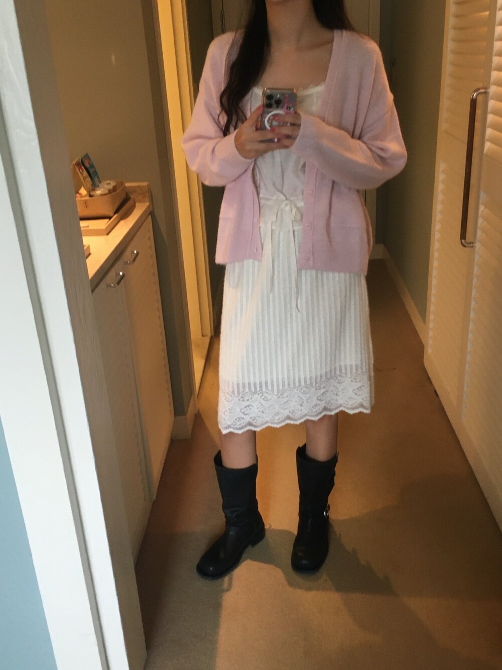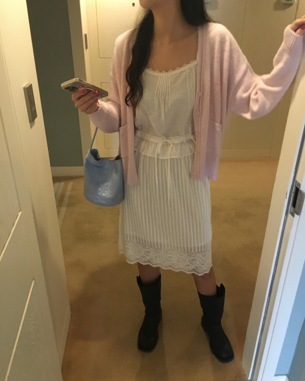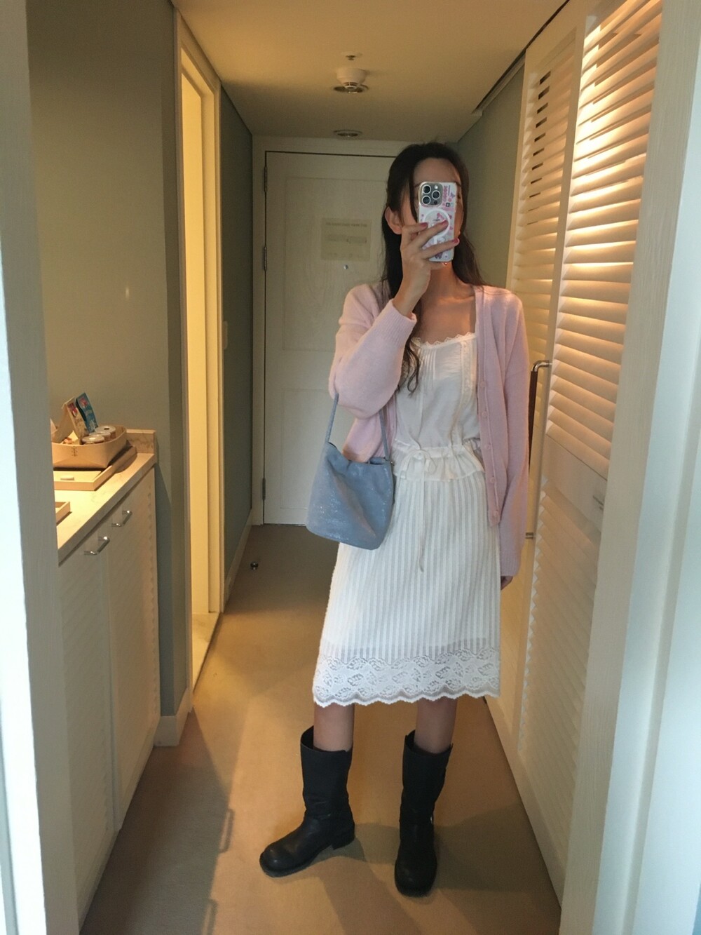 가디건이나 셔츠 안에 이너로 매치해 레이스 포인트만 살짝 보여주어도 정말 예뻐요.