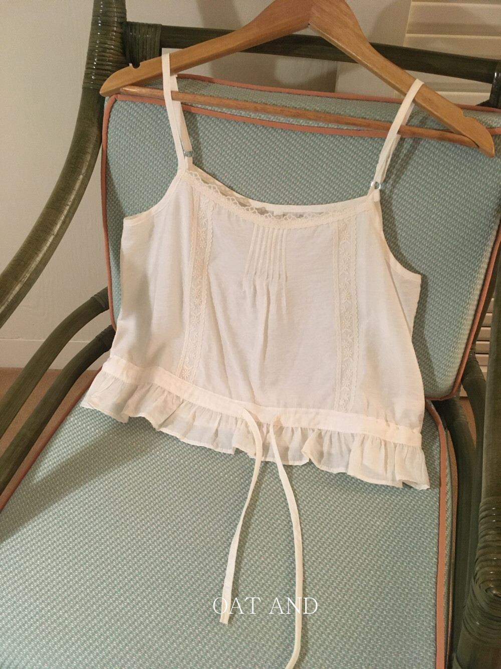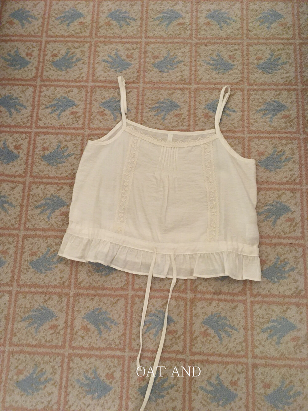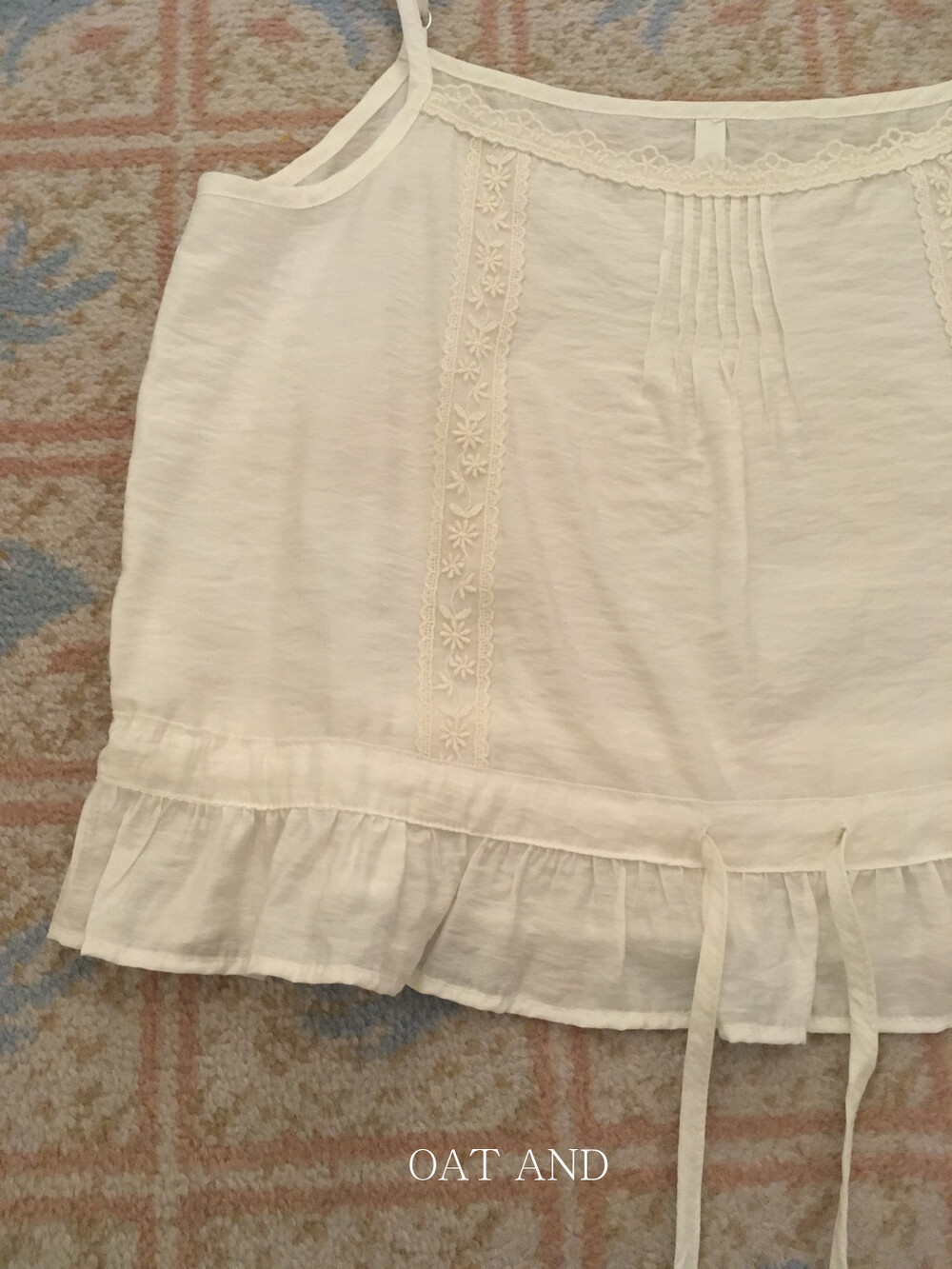 섬세한 플라워 자수와 프릴 디테일이 매력적인 나시예요.