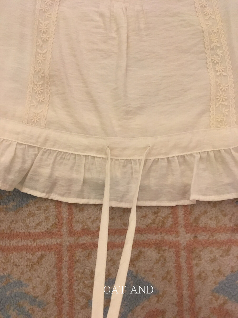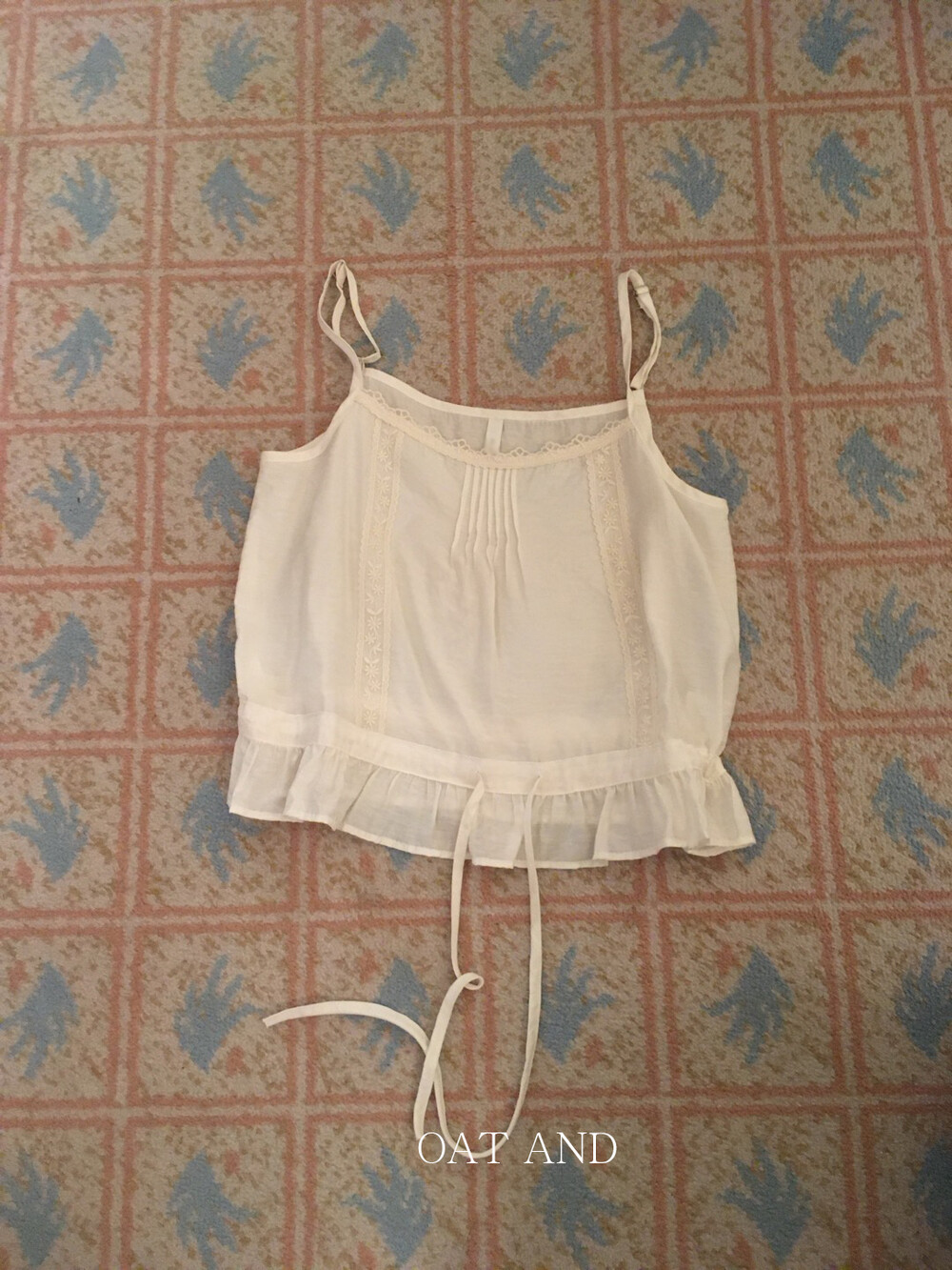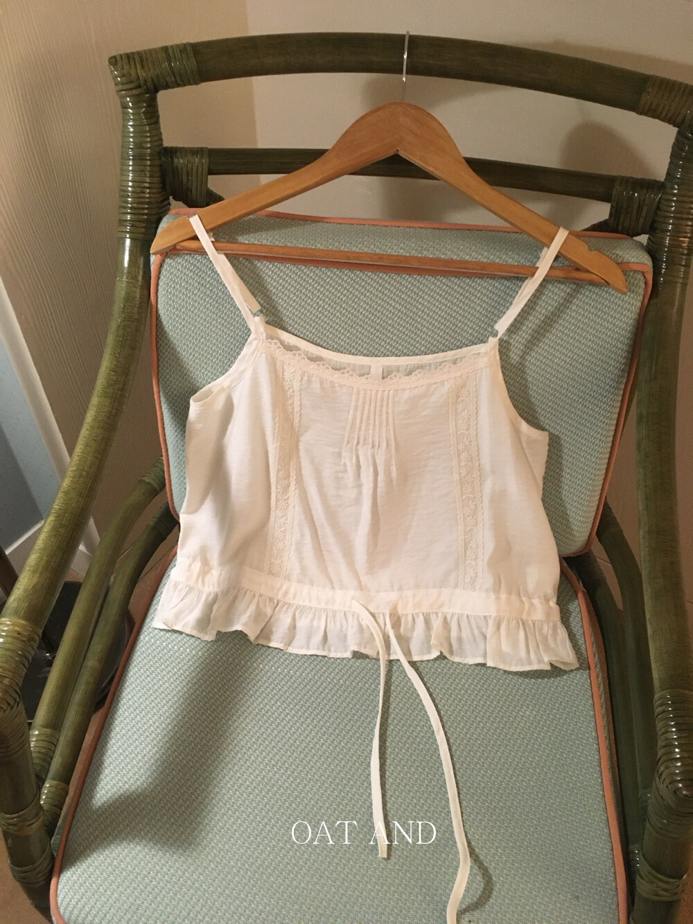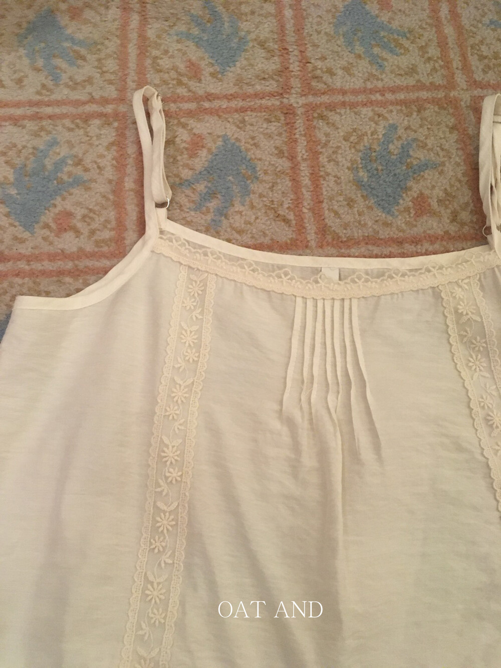 섬세한 플라워 자수와 프릴 디테일이 매력적인 나시예요.