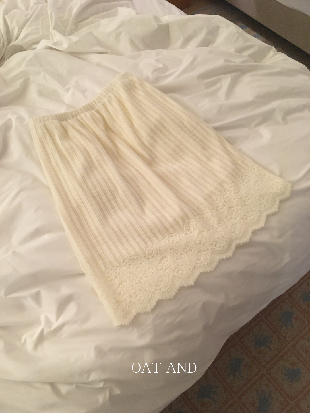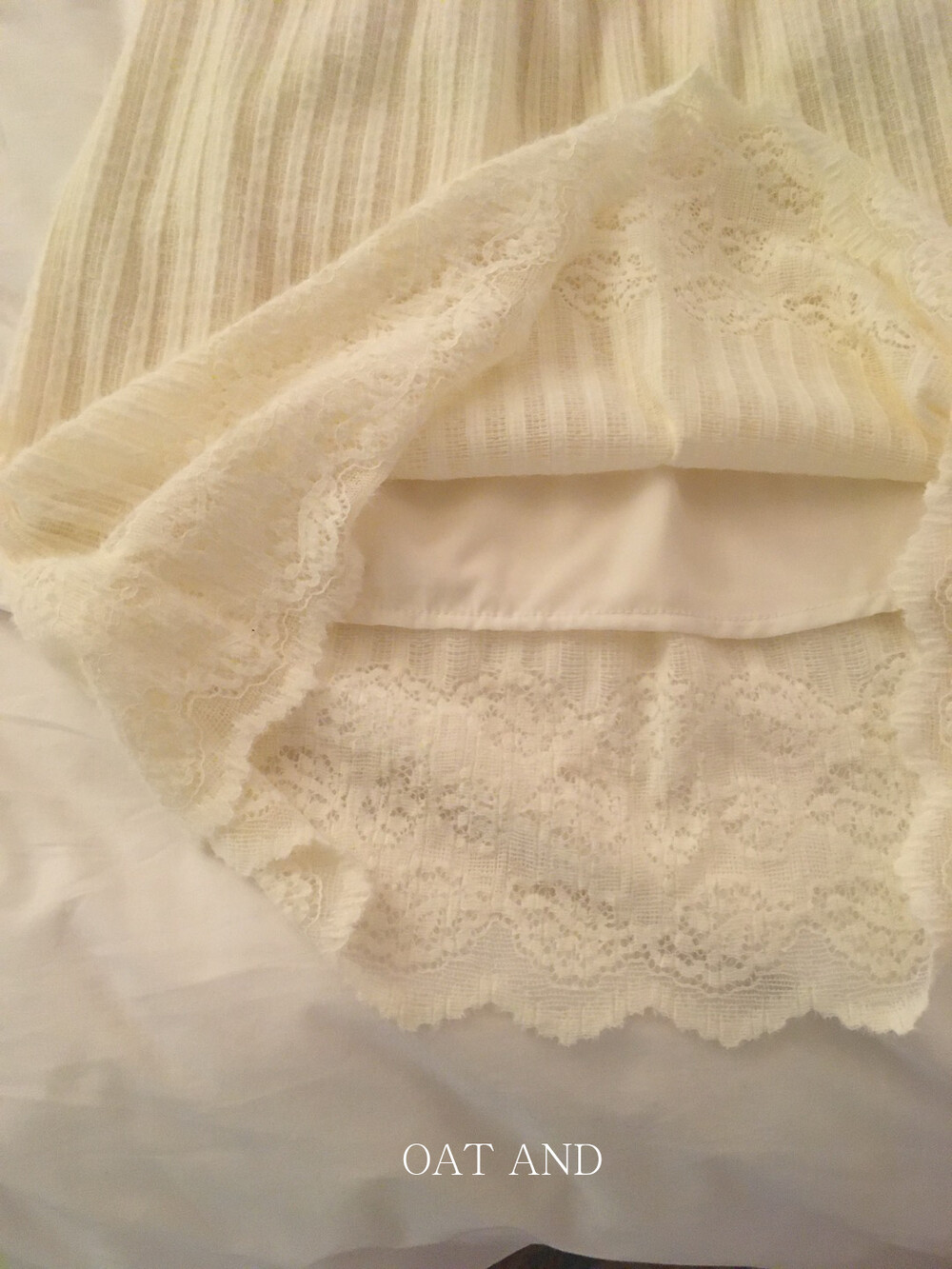 몽글몽글한 겉감 텍스처와 밑단 레이스의 조합이 정말 사랑스럽답니다.