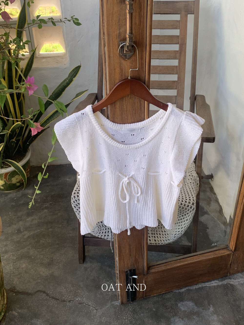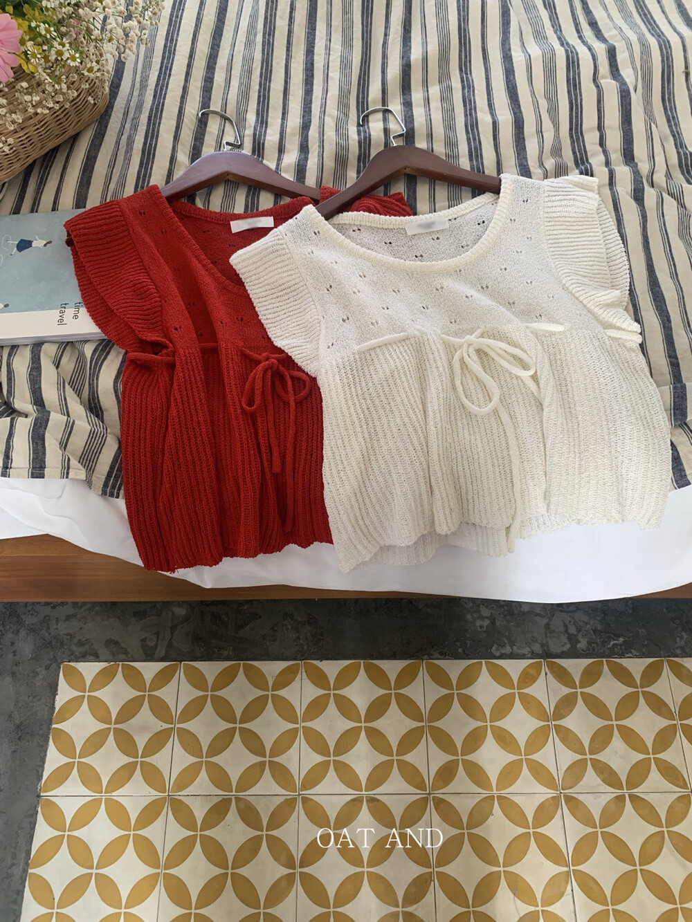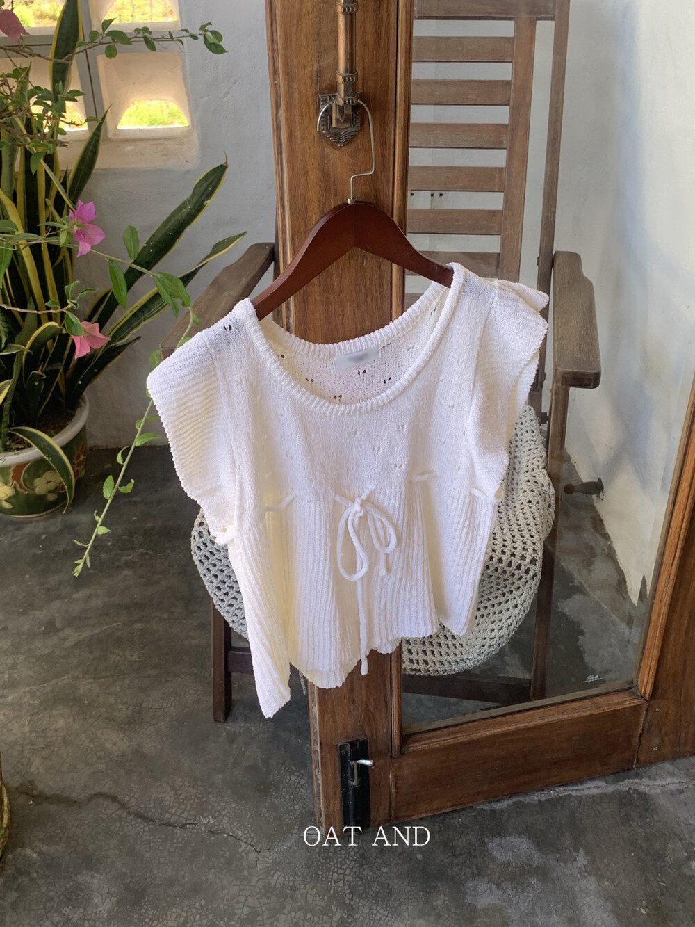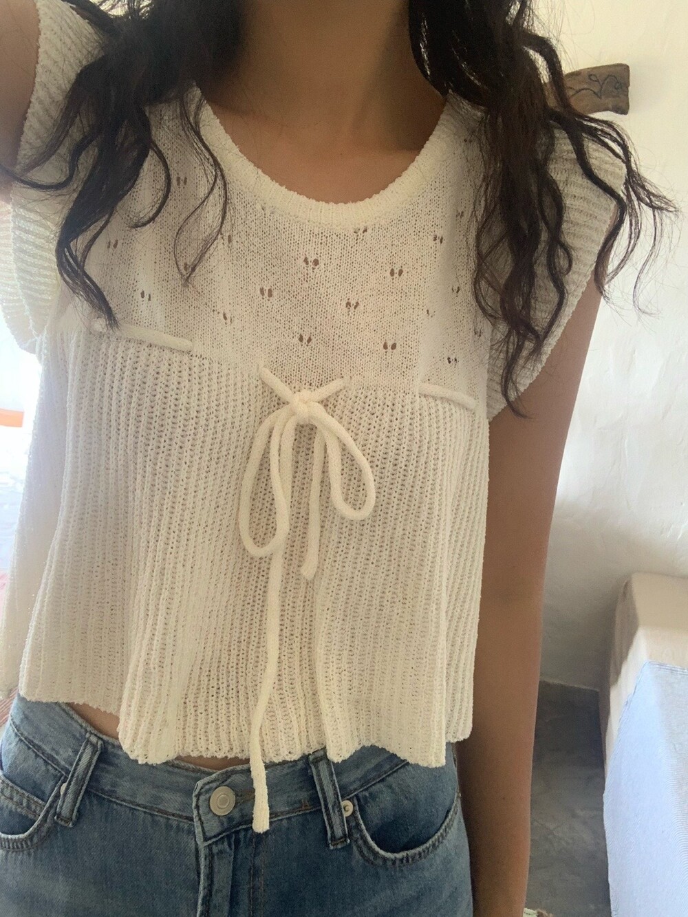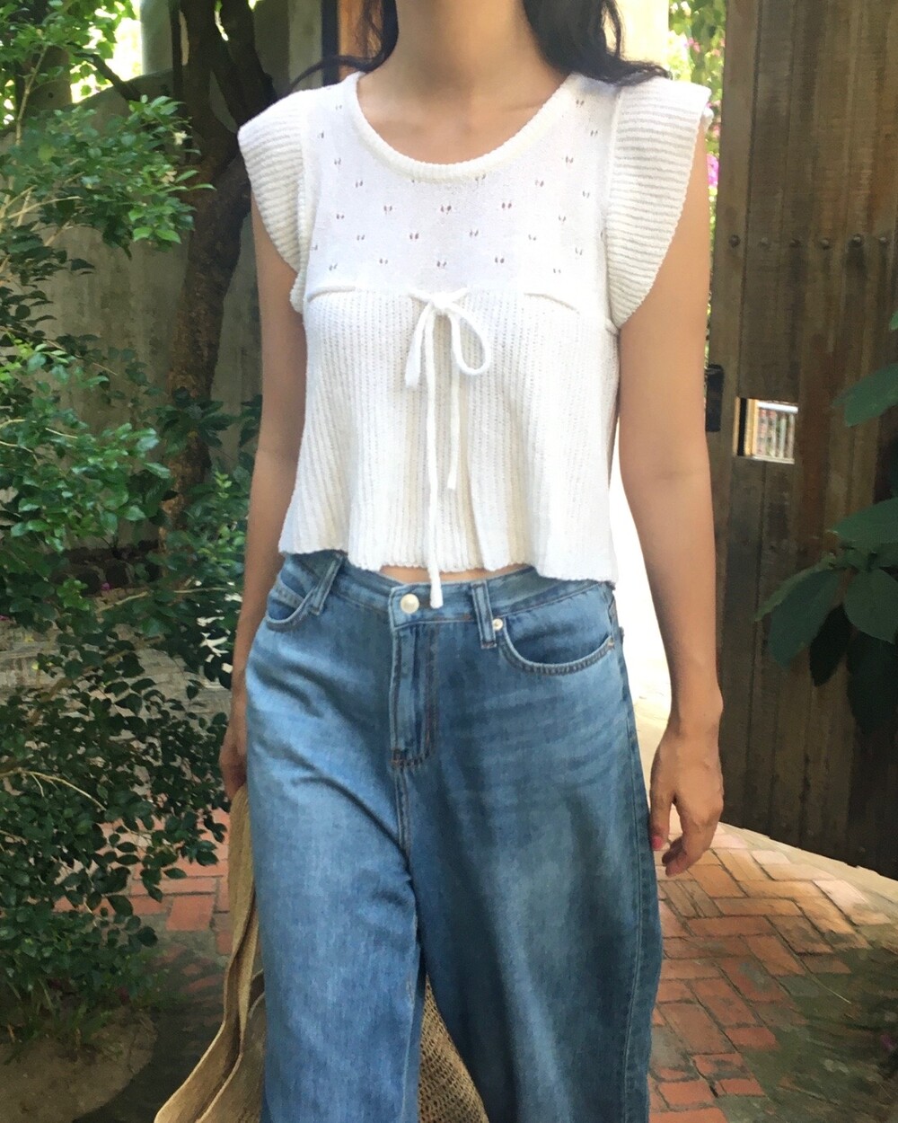 아미 리본 펀칭 니트 (아이보리)