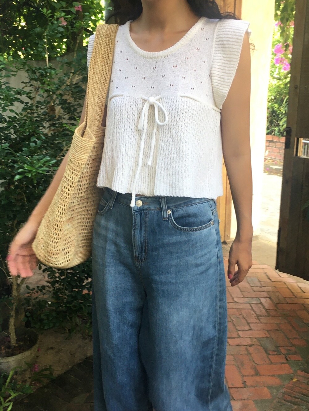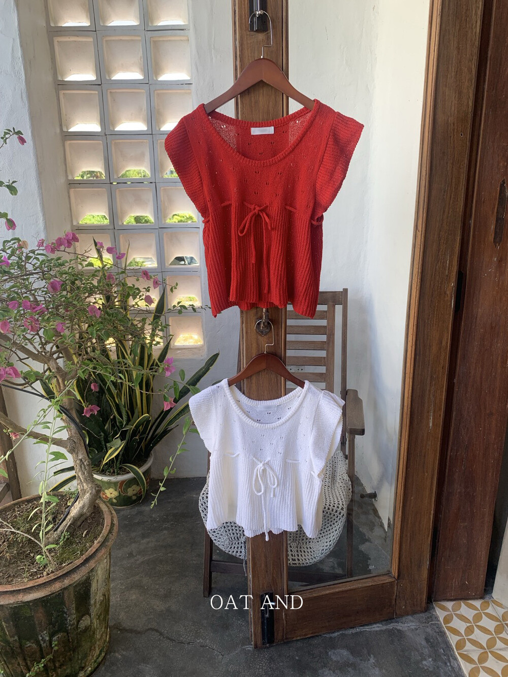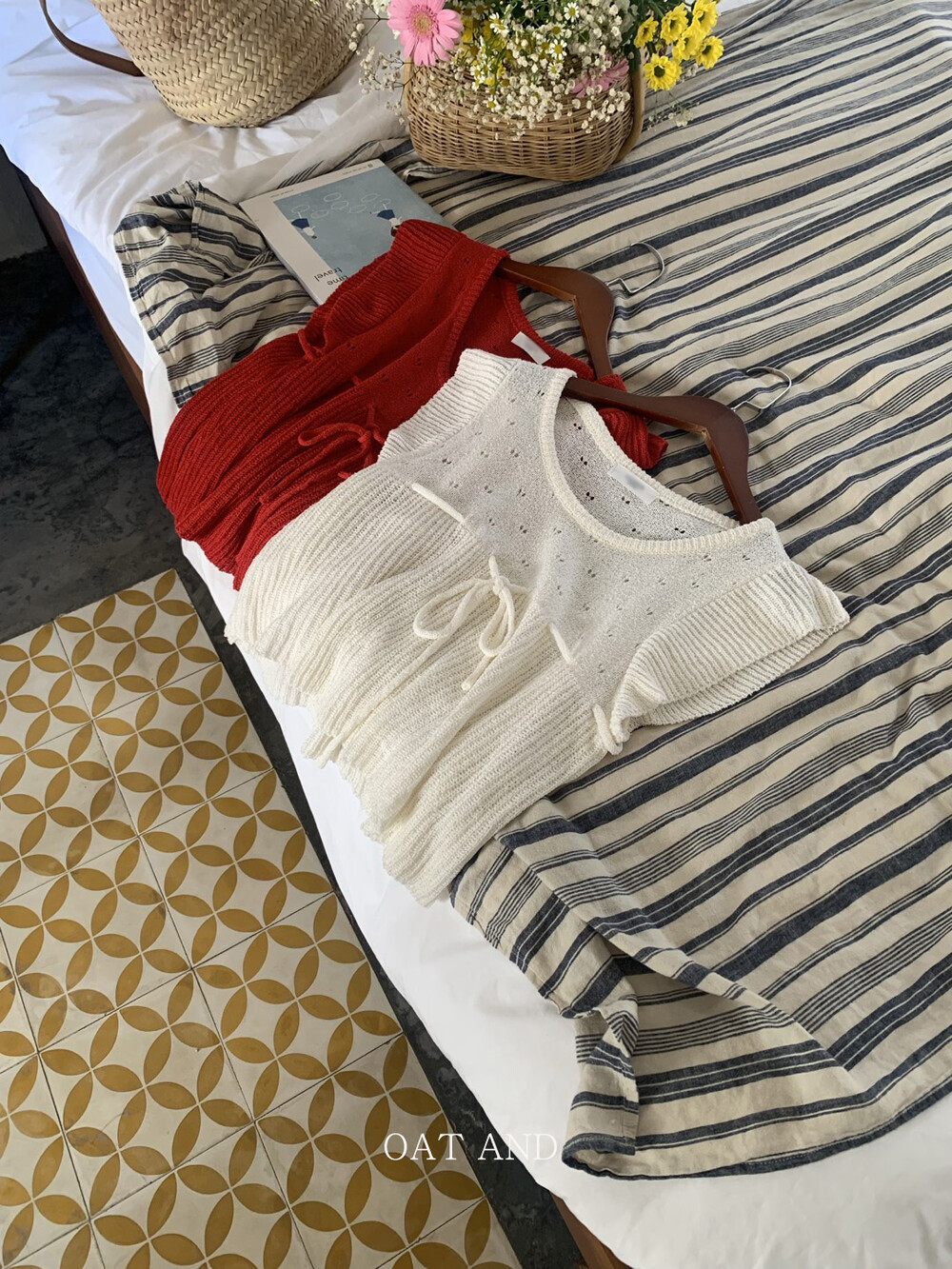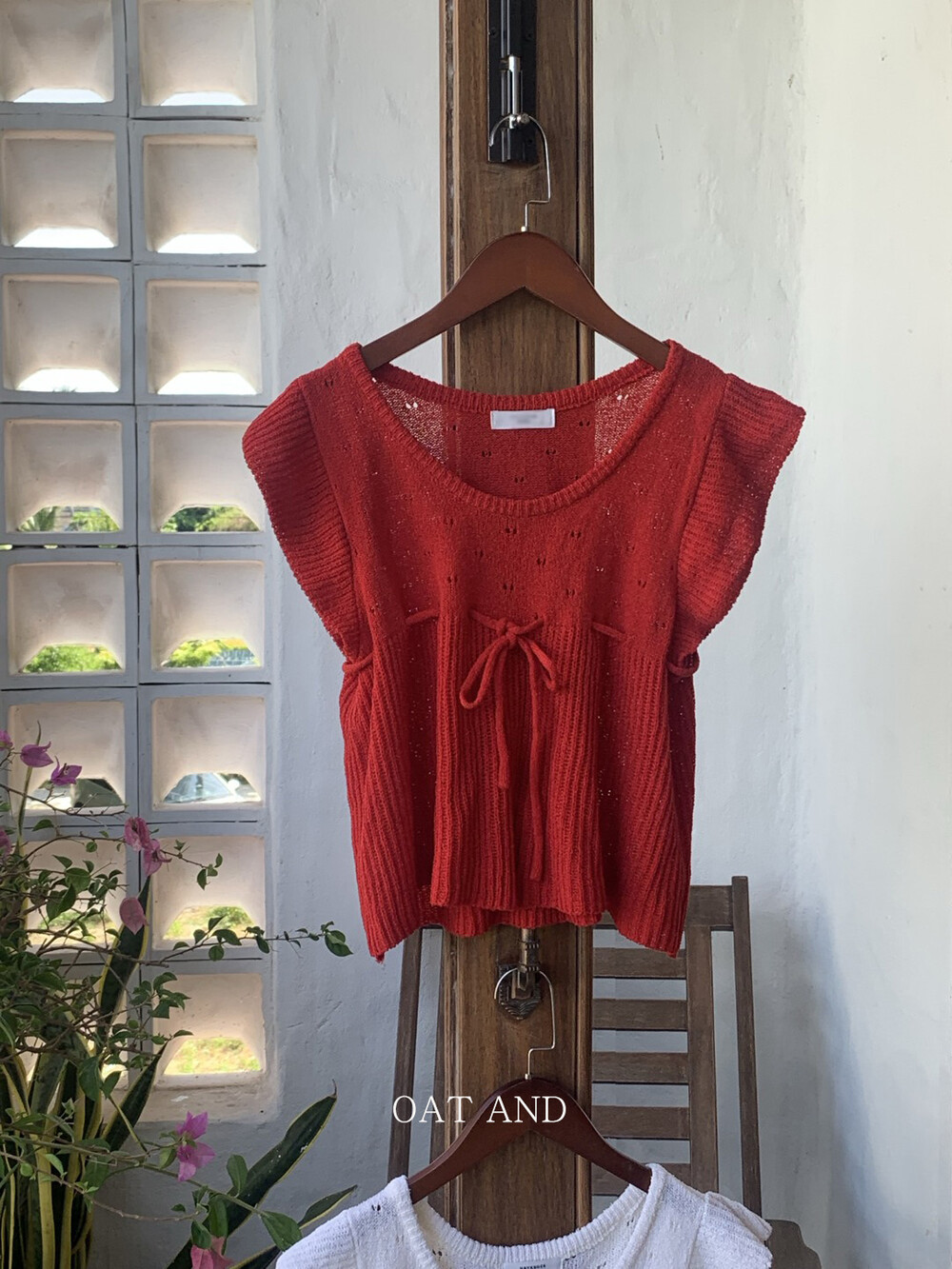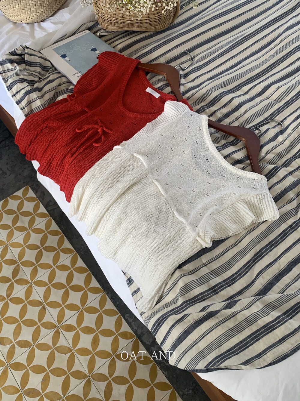 아미 리본 펀칭 니트 (아이보리)