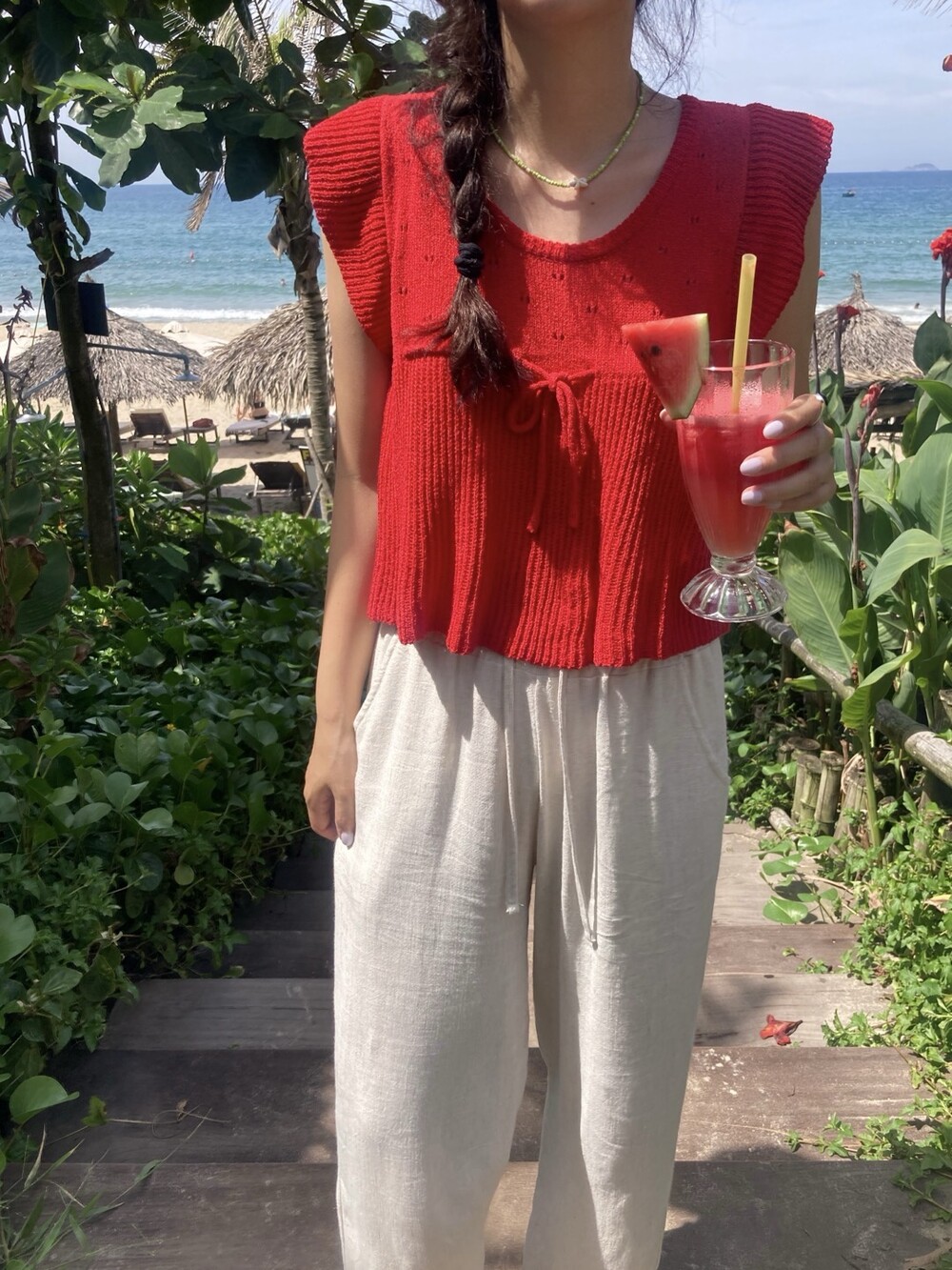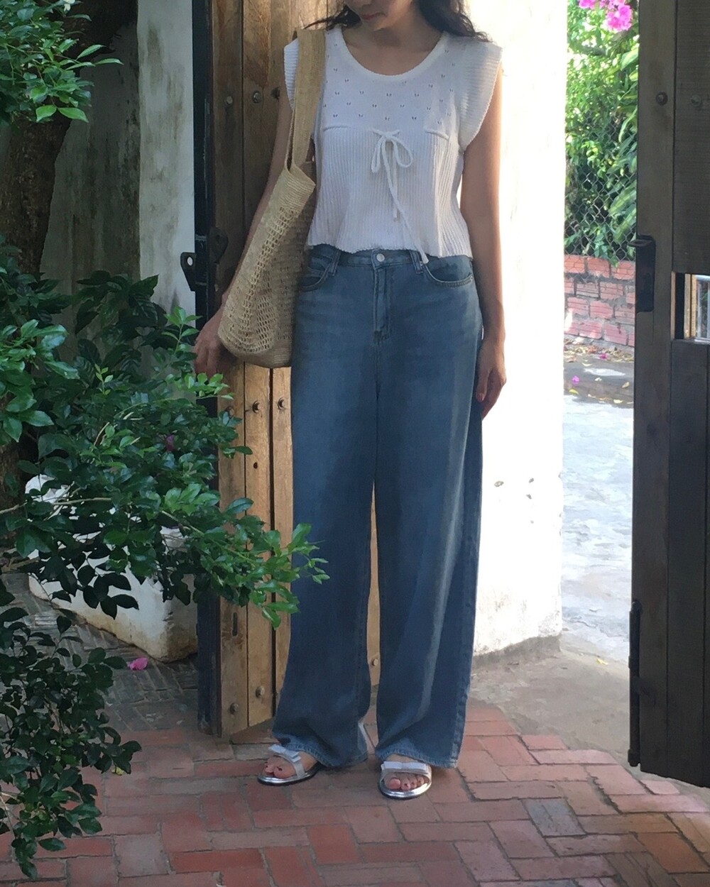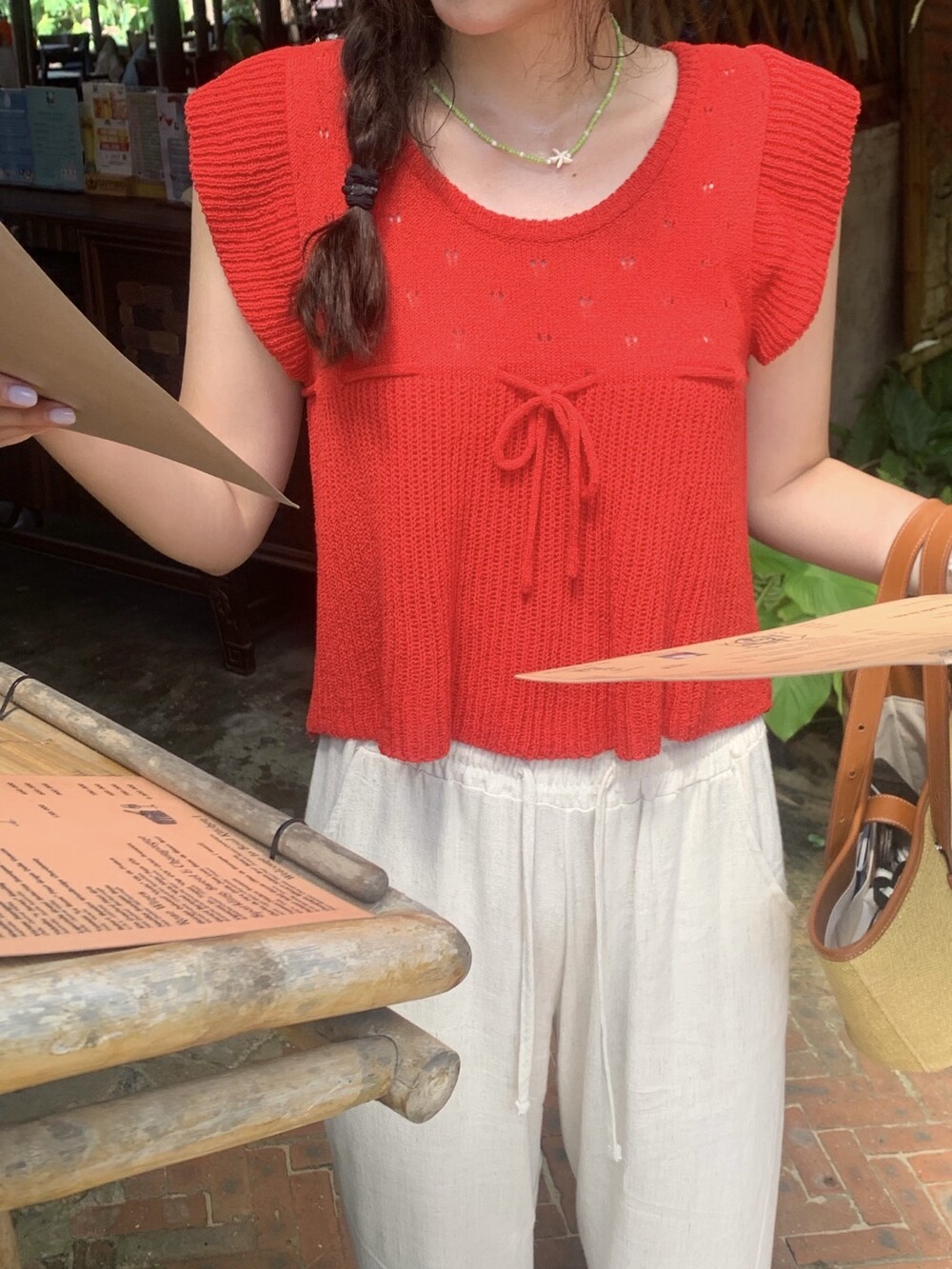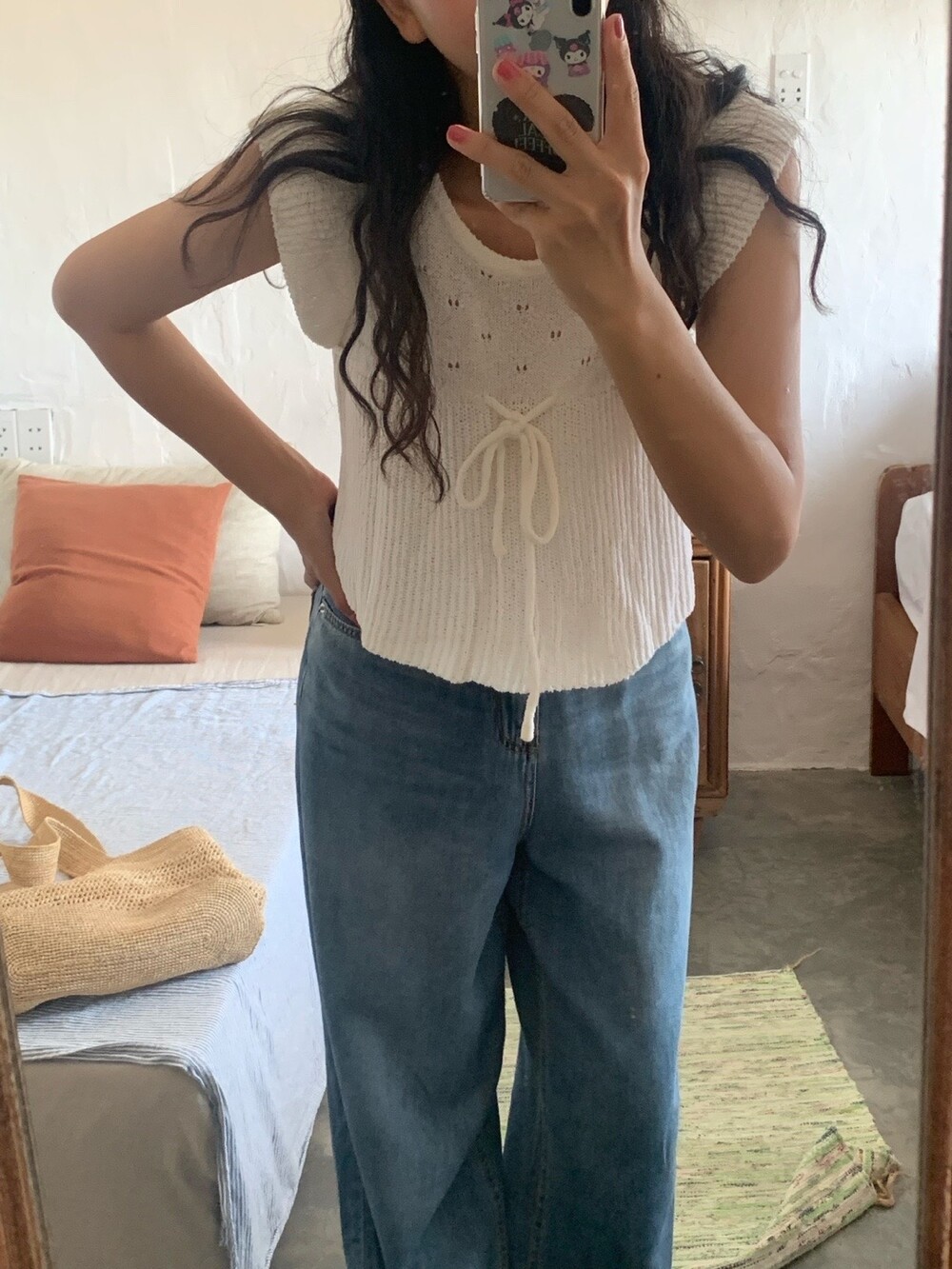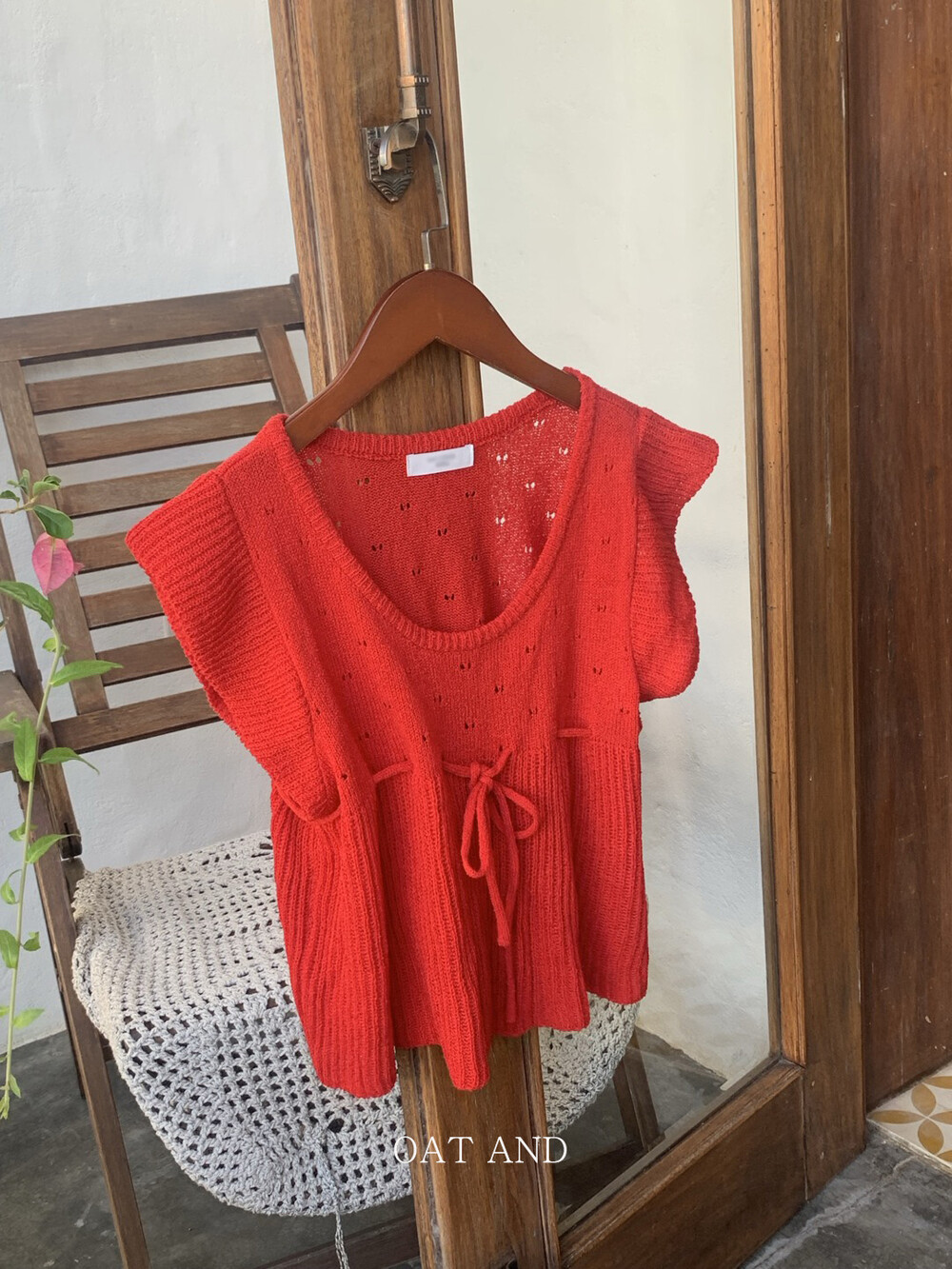 아미 리본 펀칭 니트 (아이보리)
