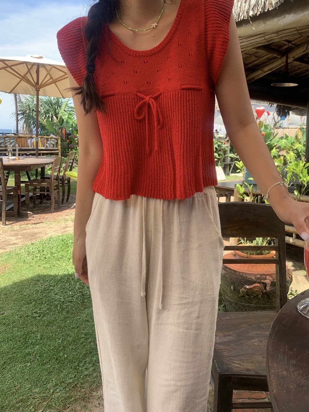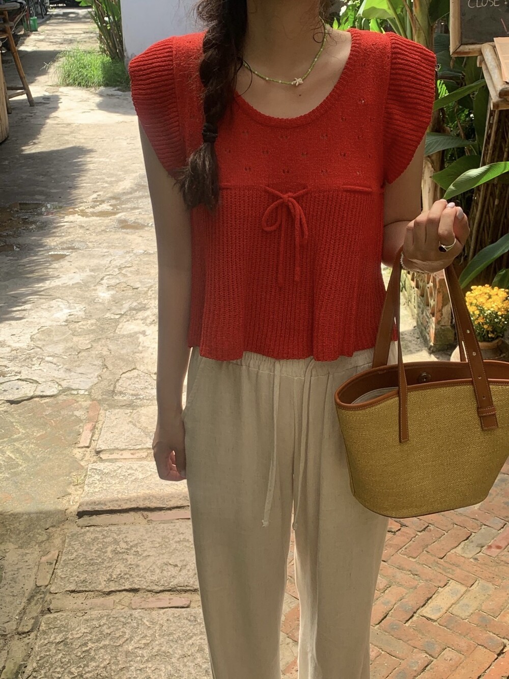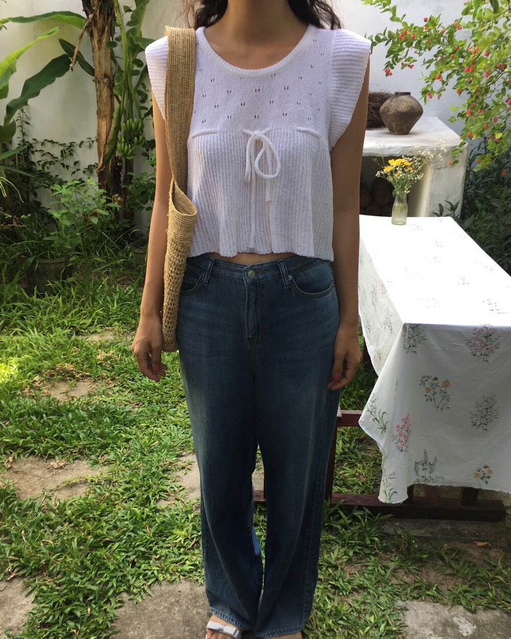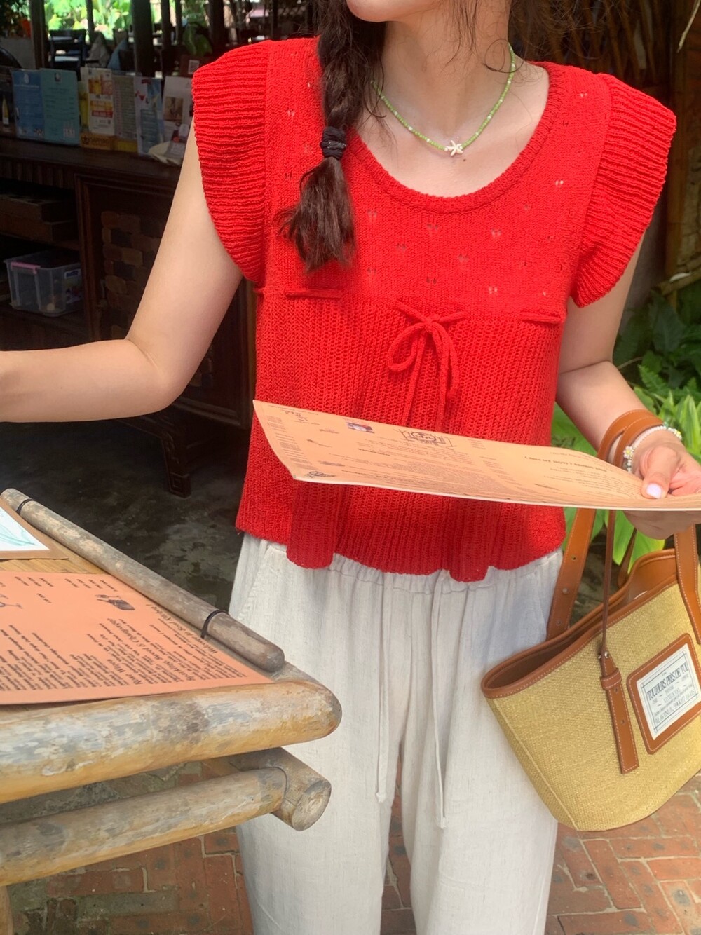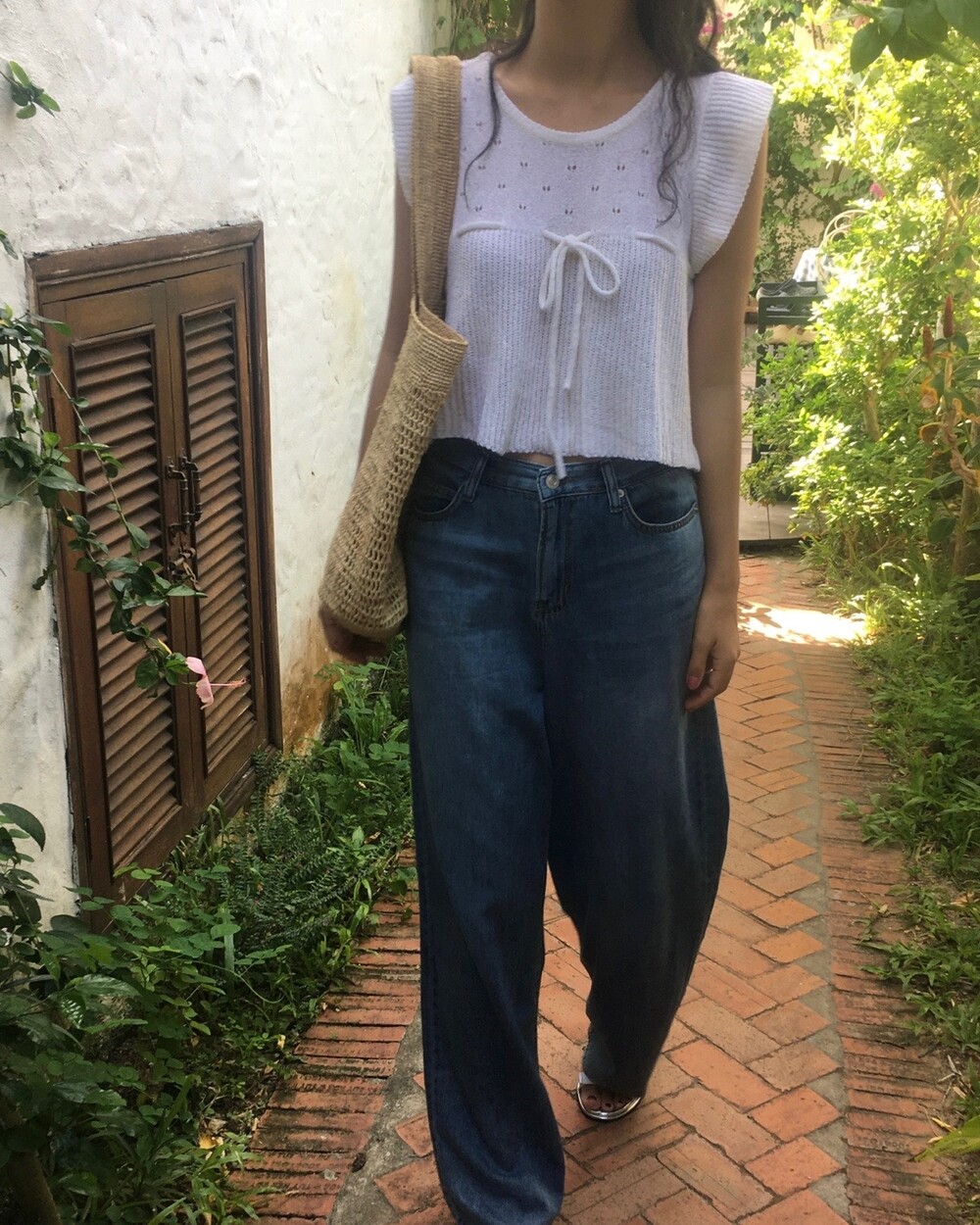 아미 리본 펀칭 니트 (아이보리)