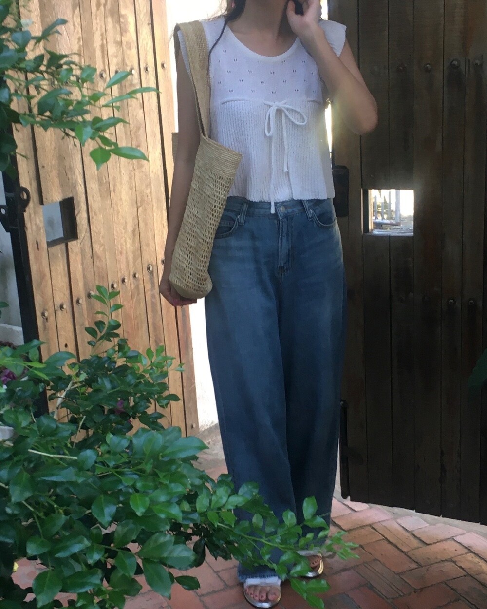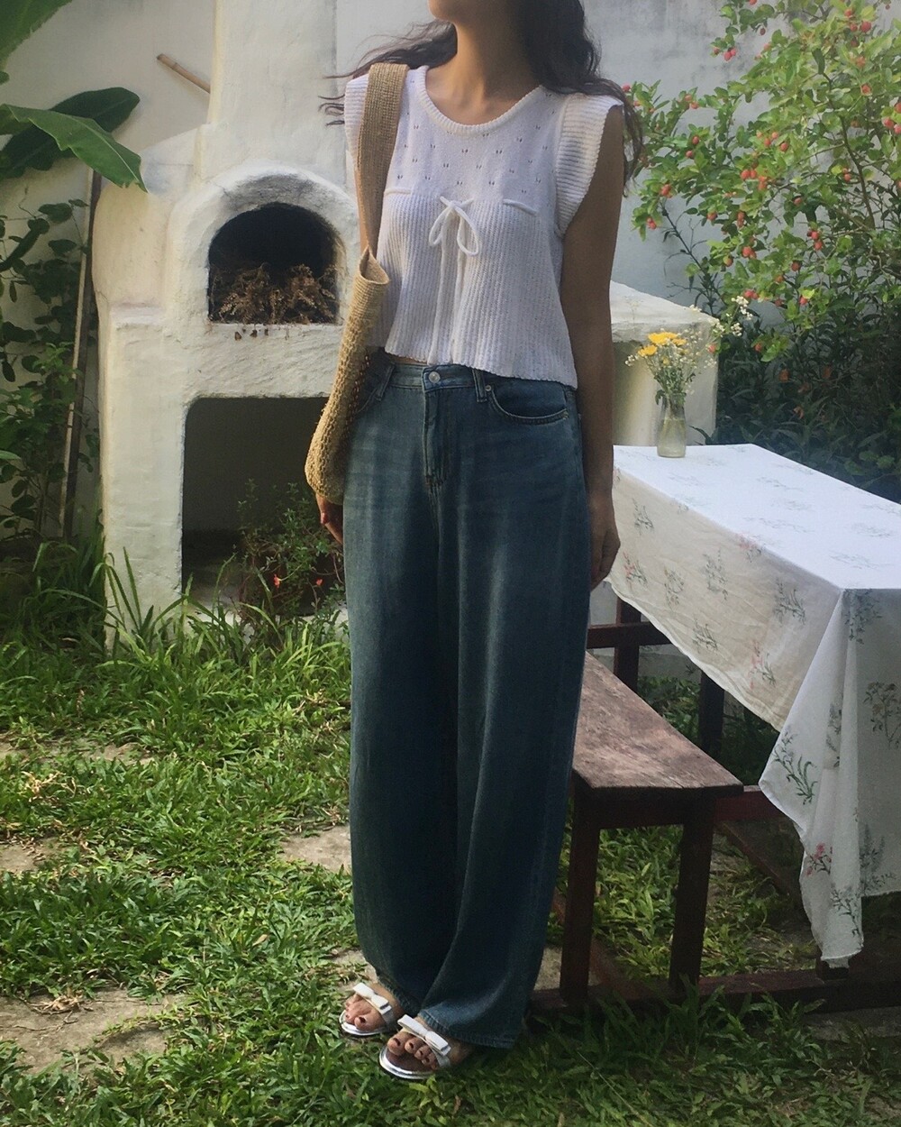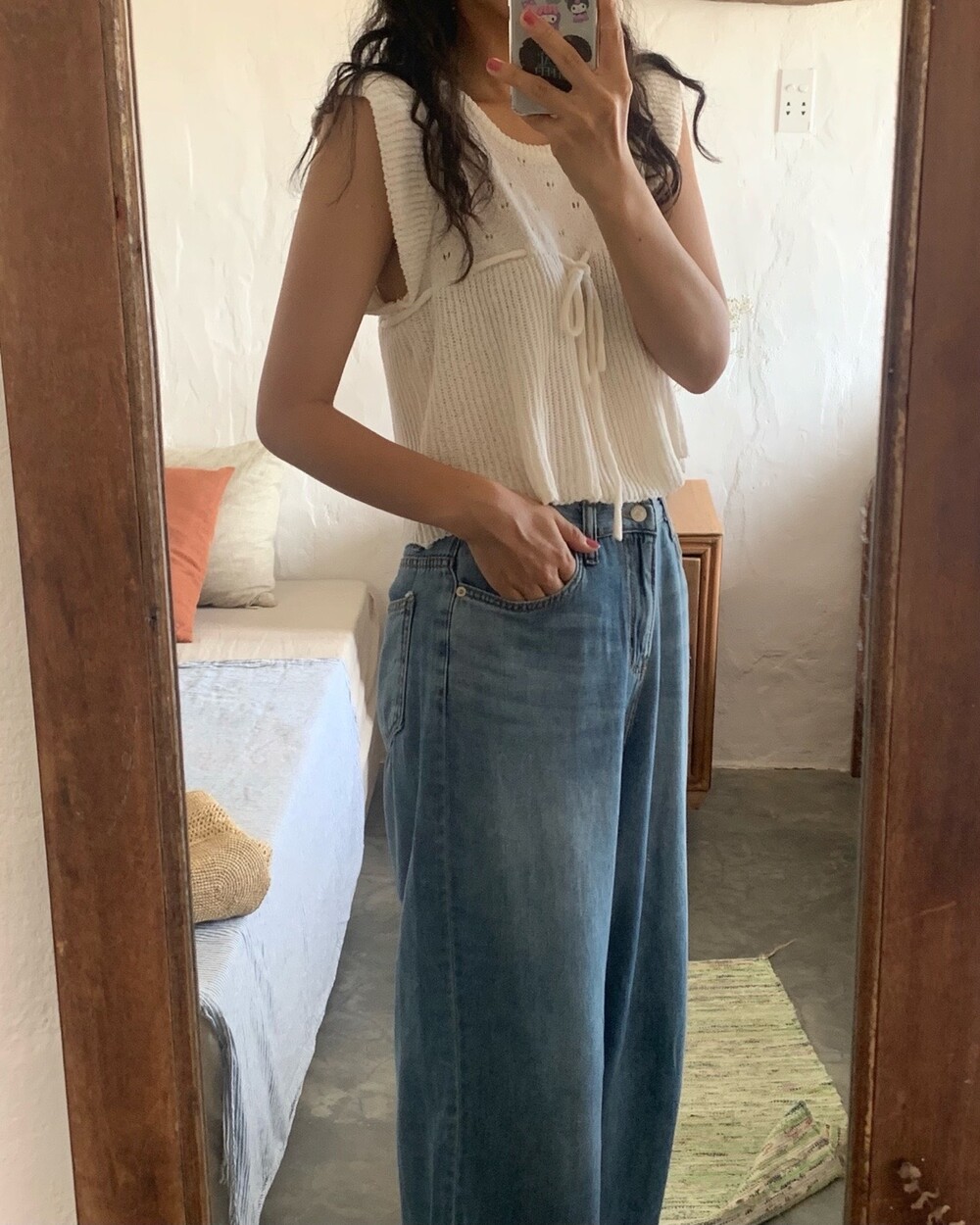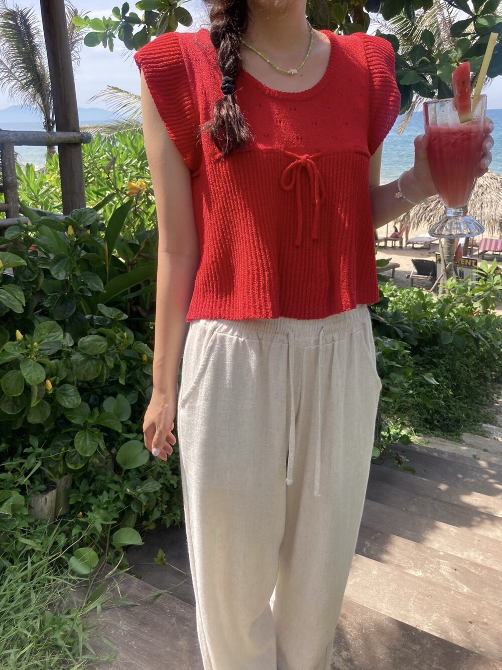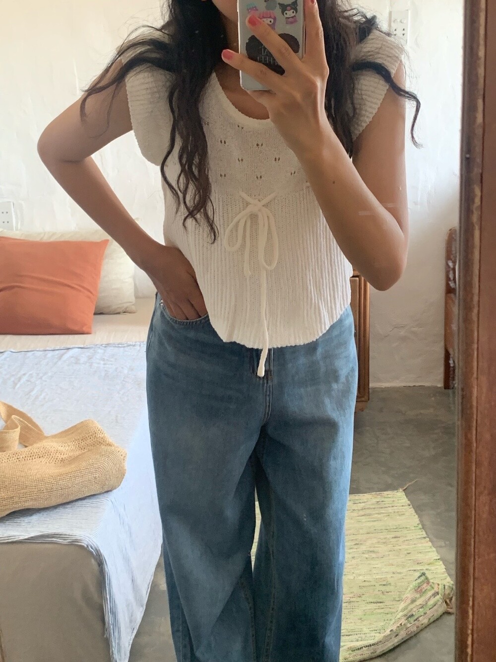 아미 리본 펀칭 니트 (아이보리)