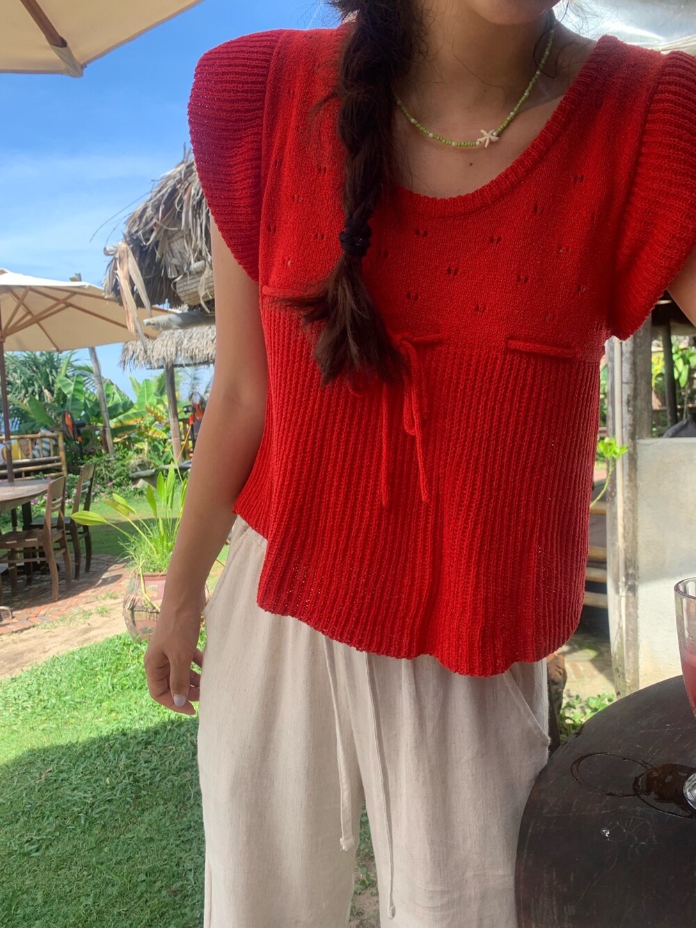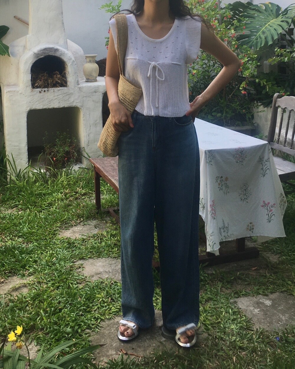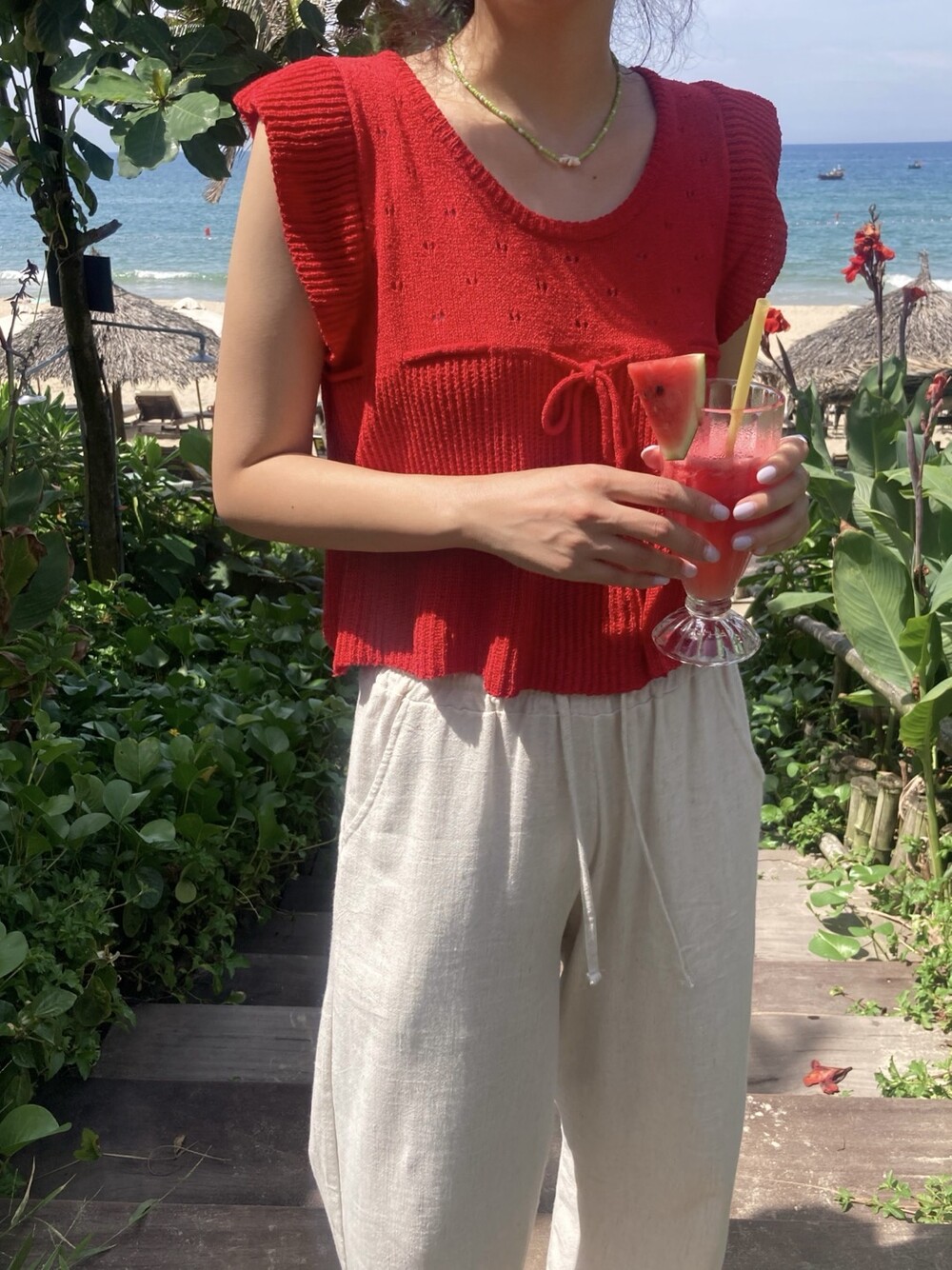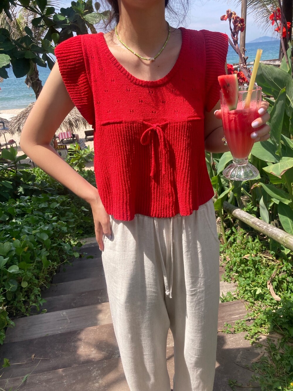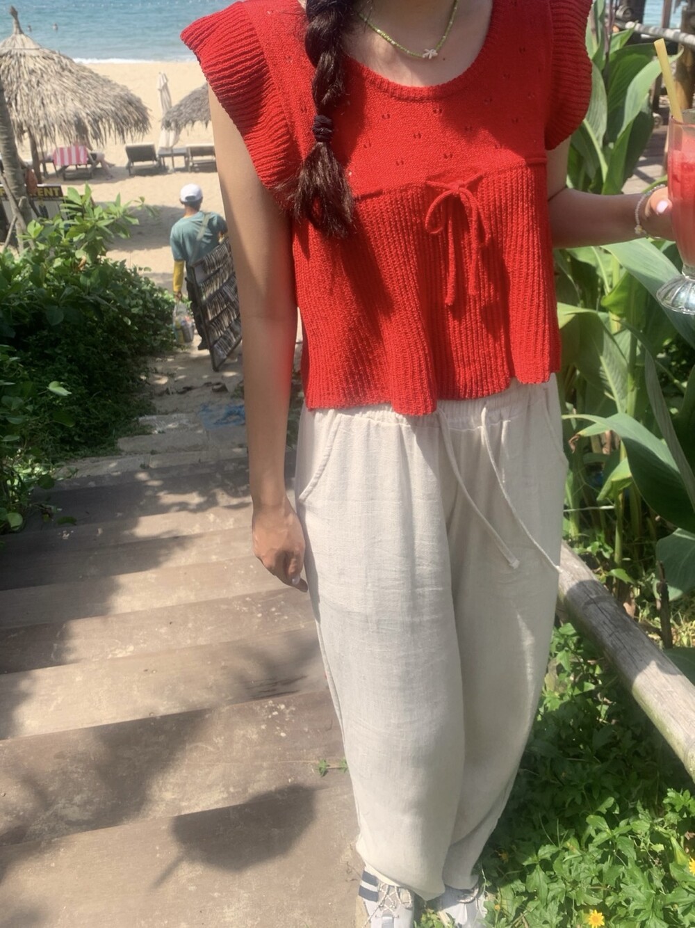 아미 리본 펀칭 니트 (아이보리)