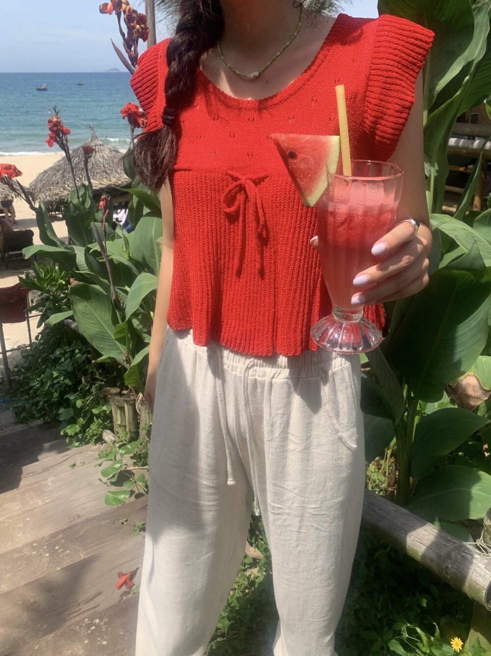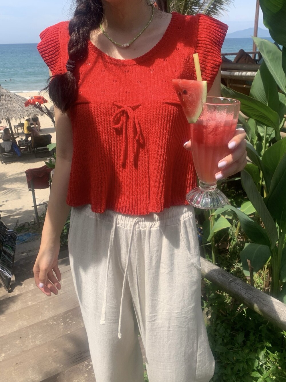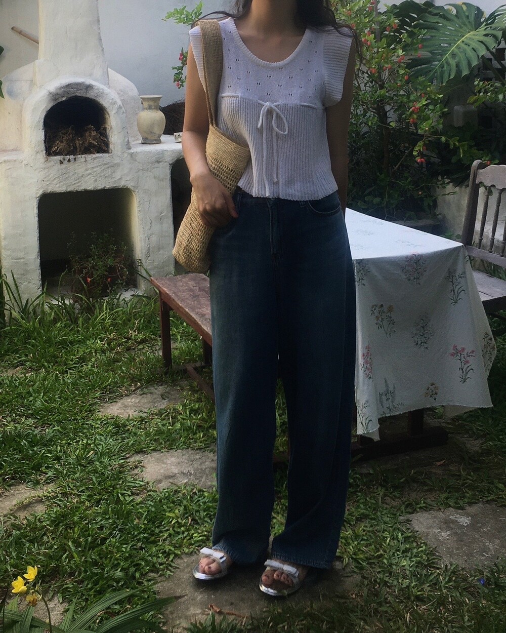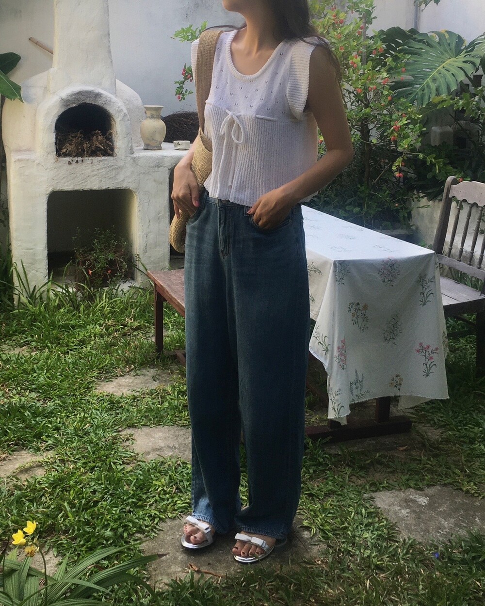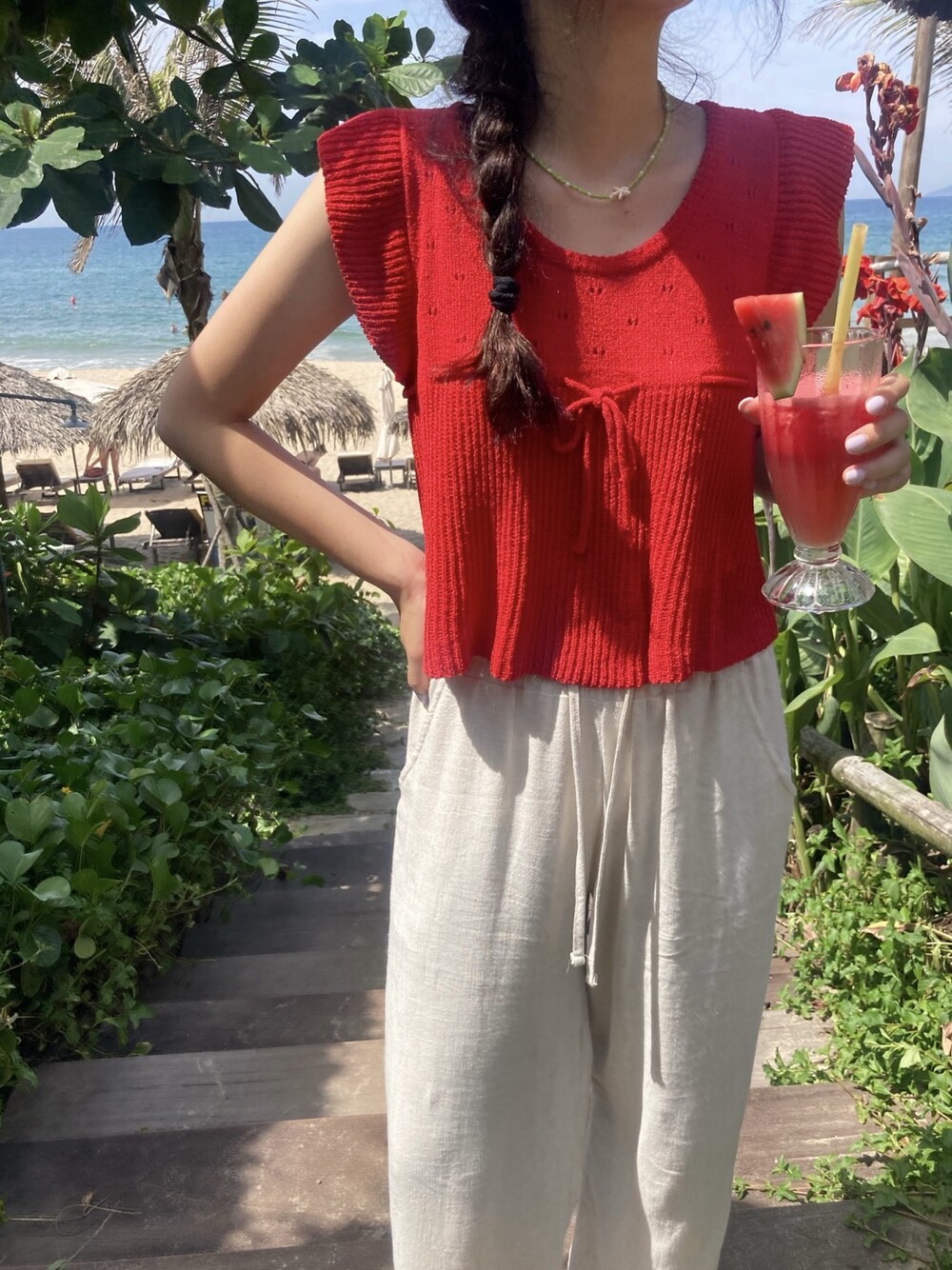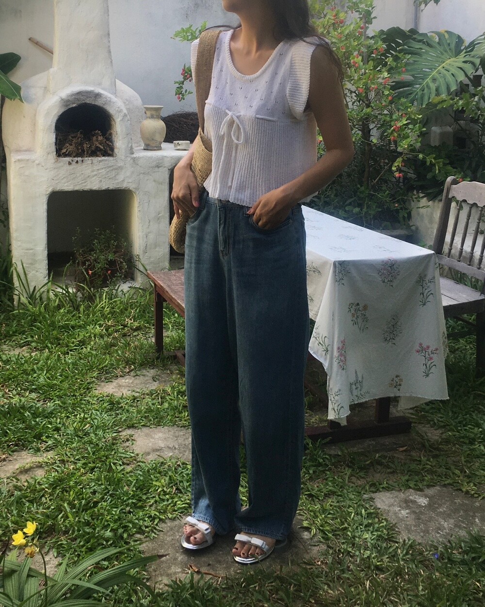 아미 리본 펀칭 니트 (아이보리)