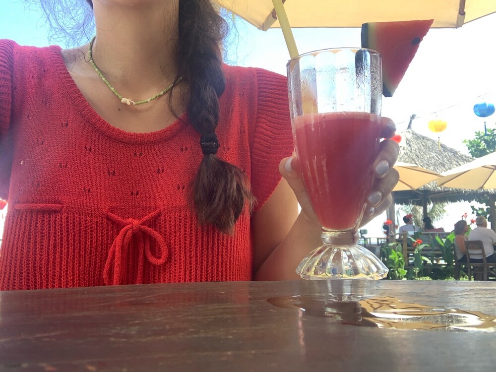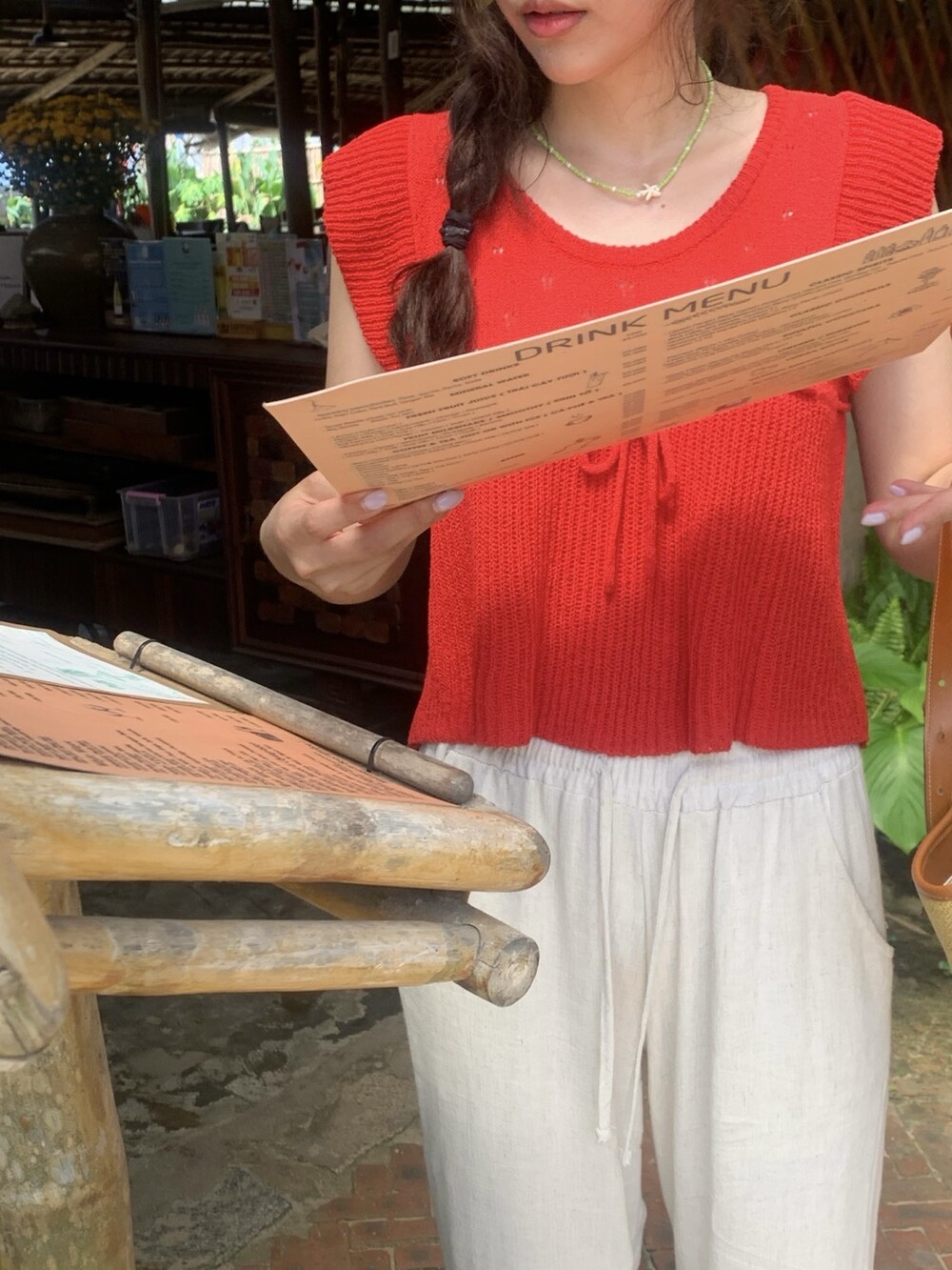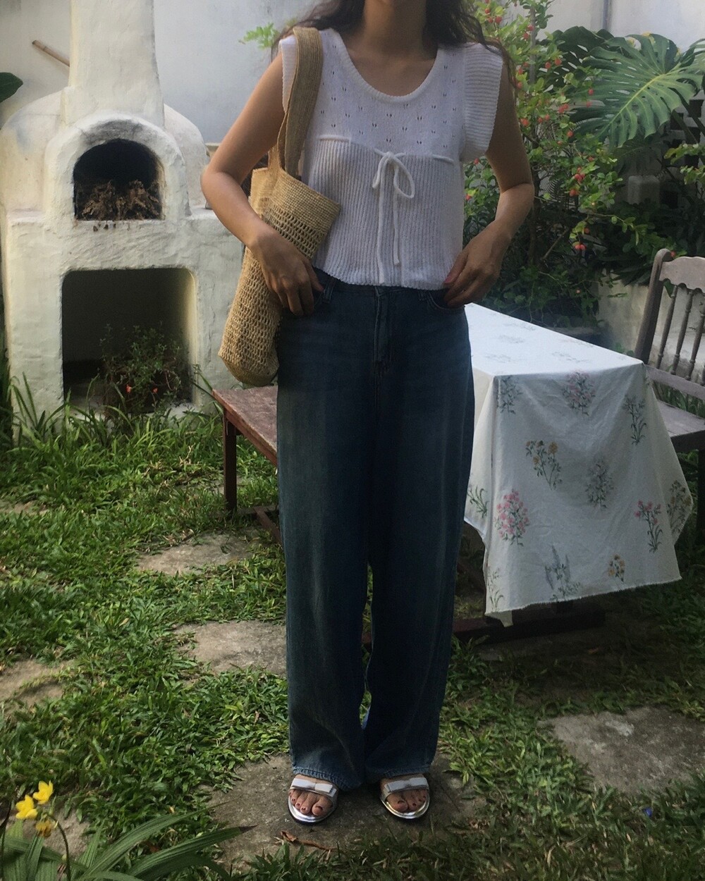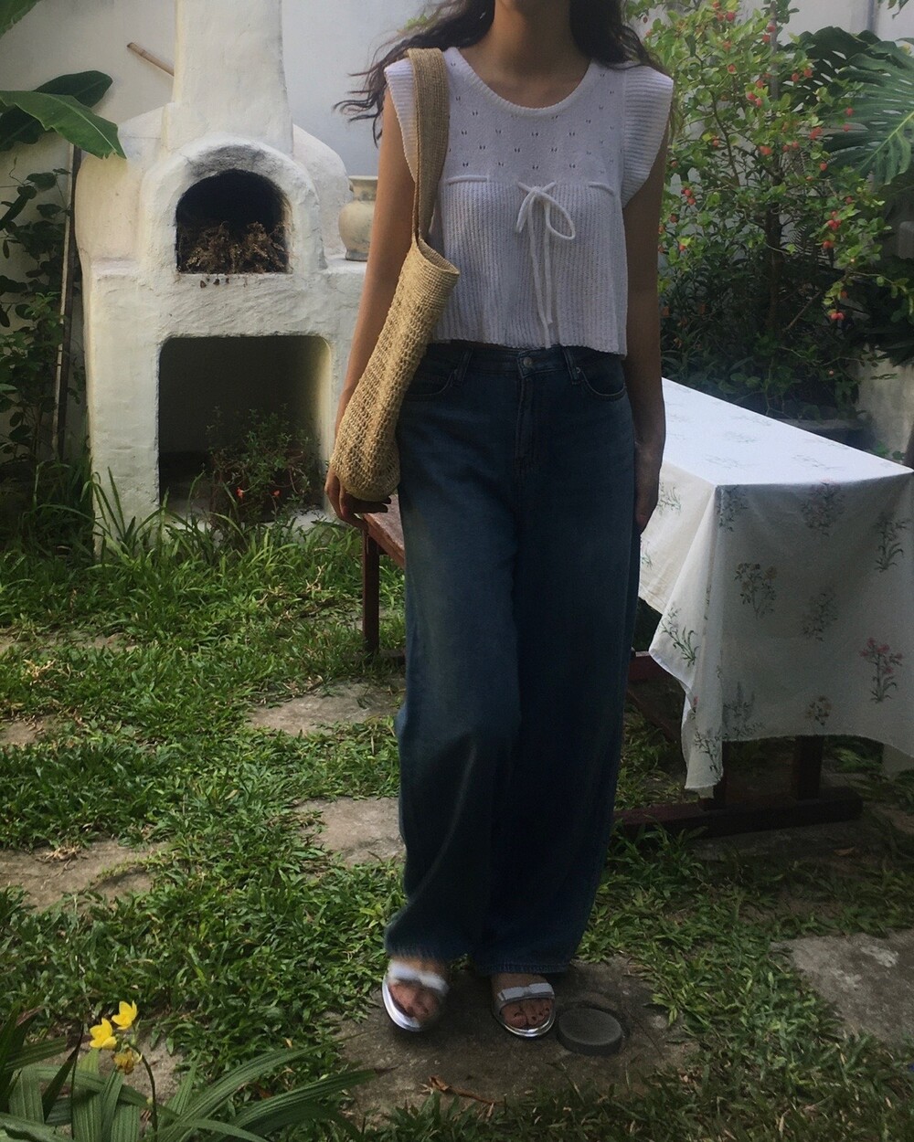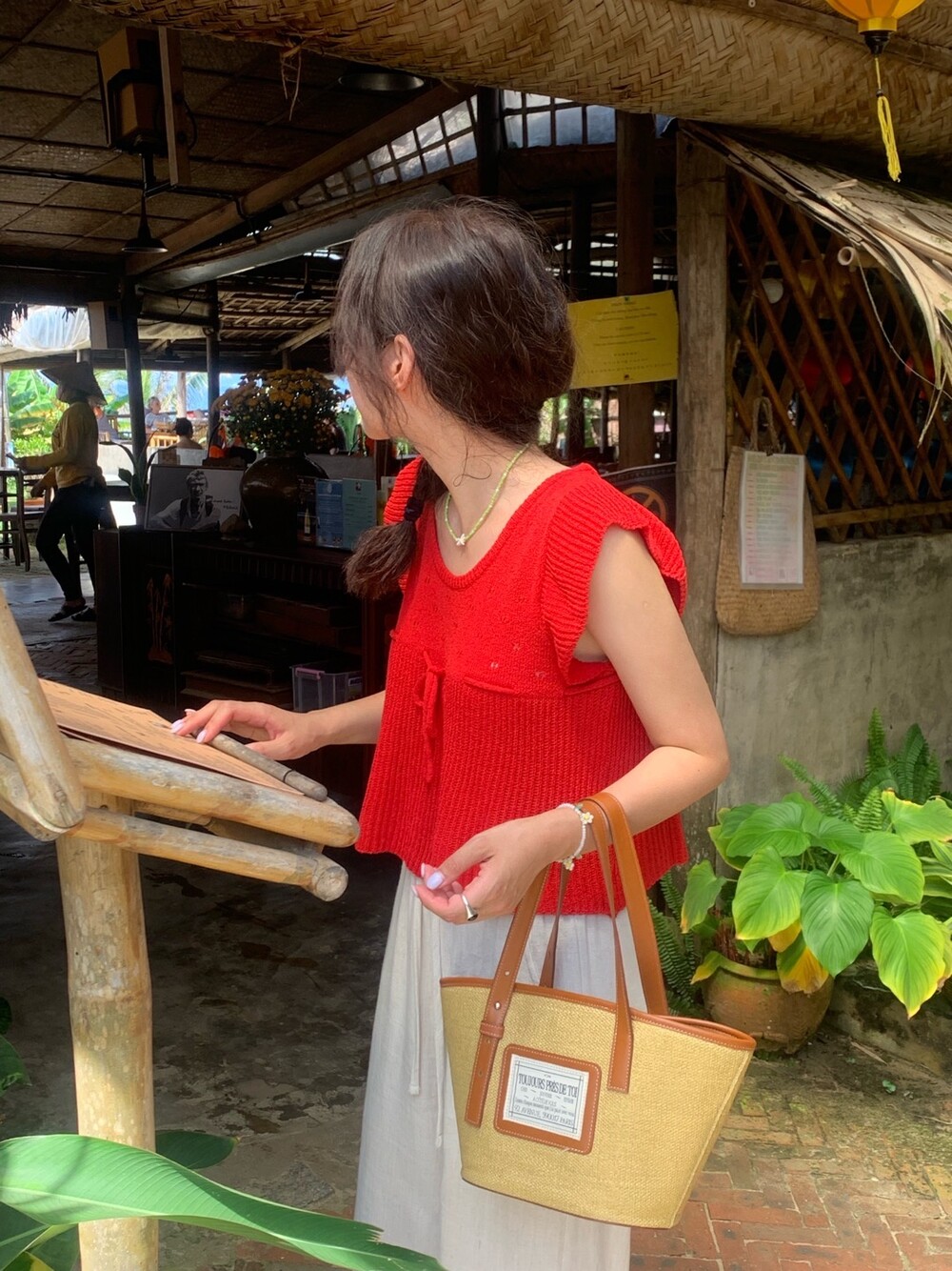 아미 리본 펀칭 니트 (아이보리)