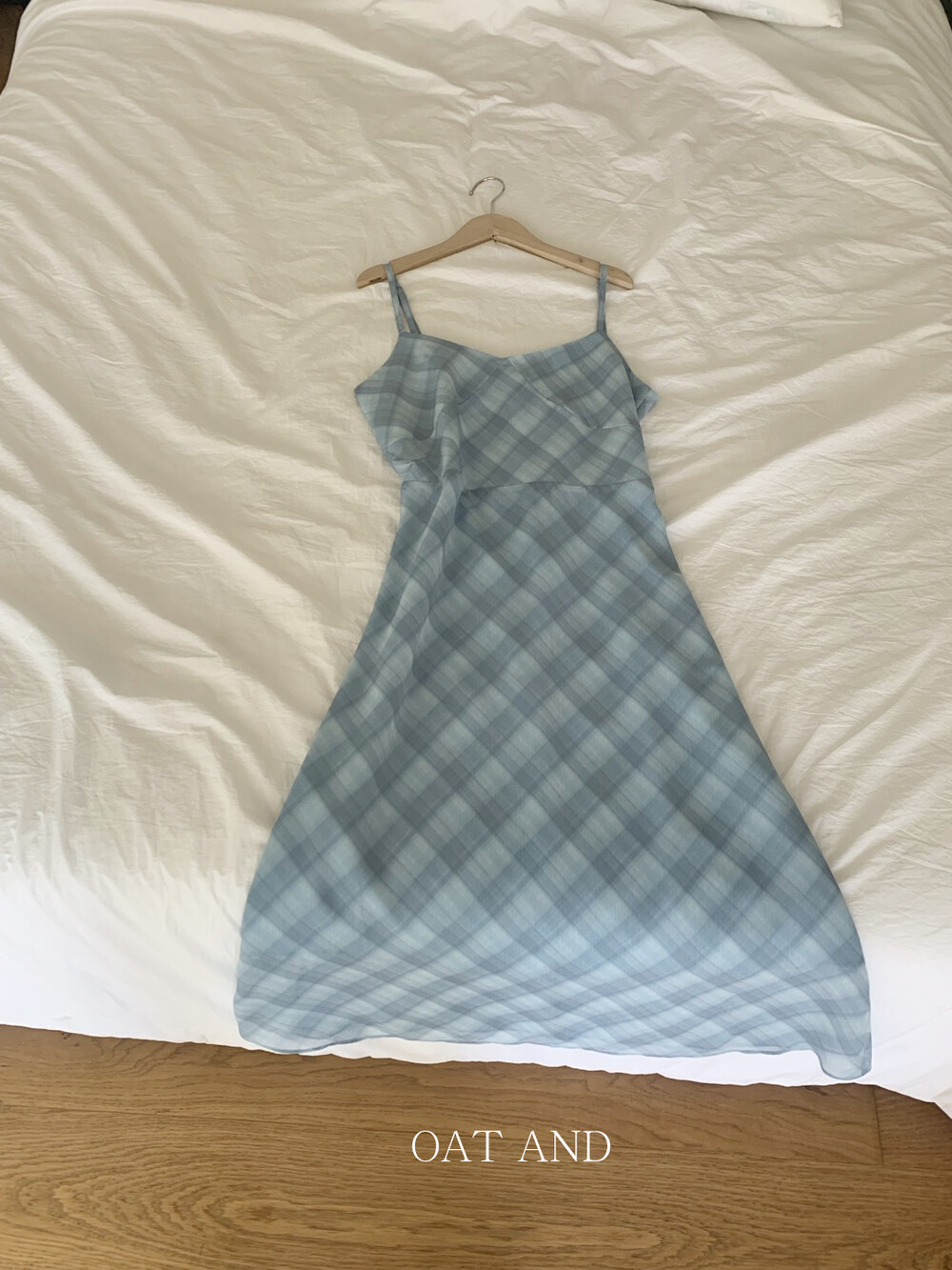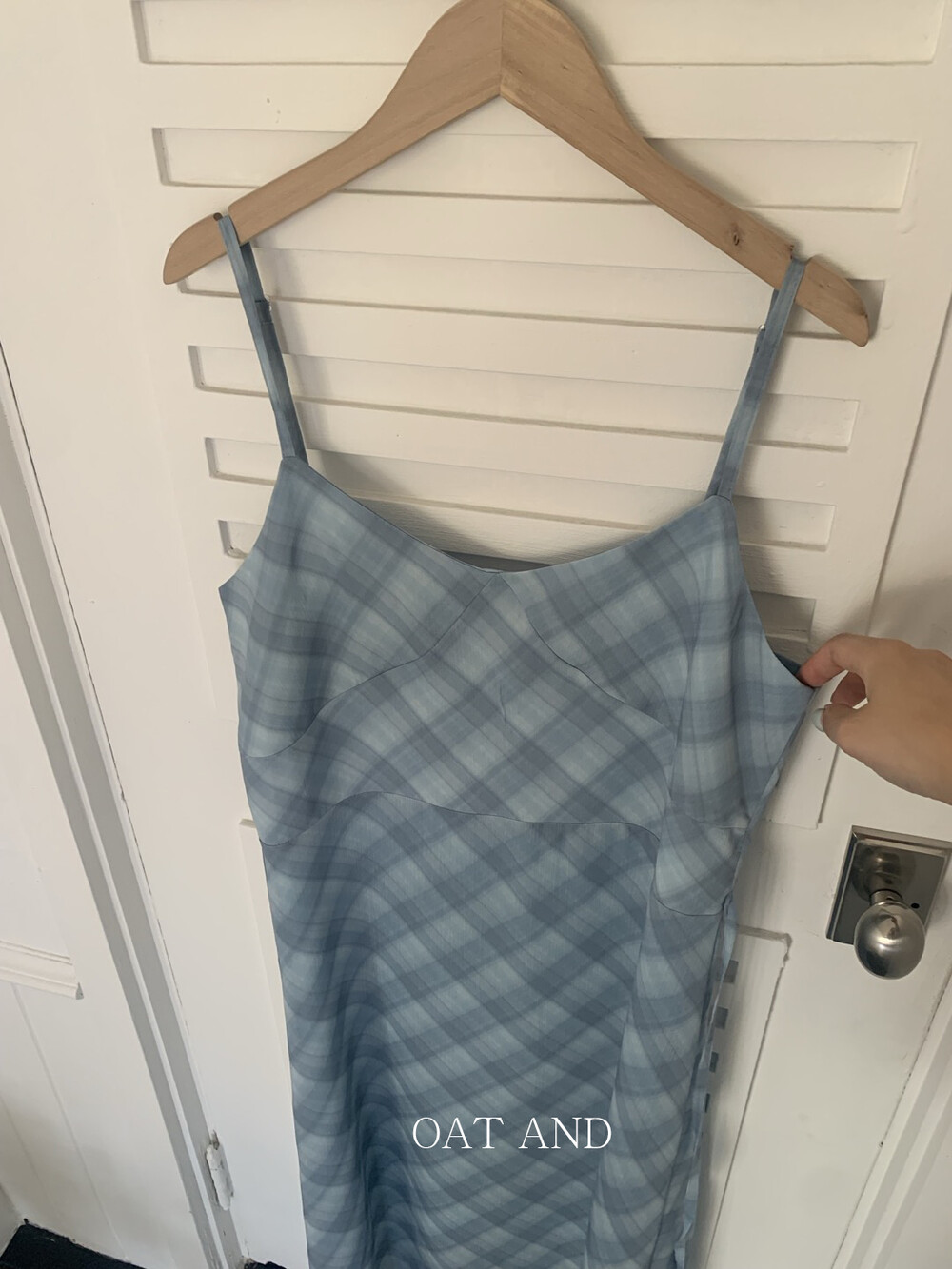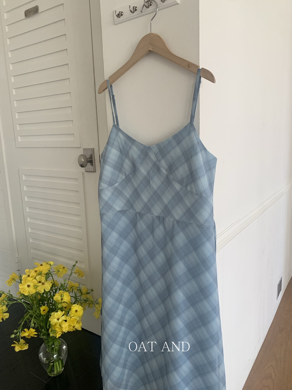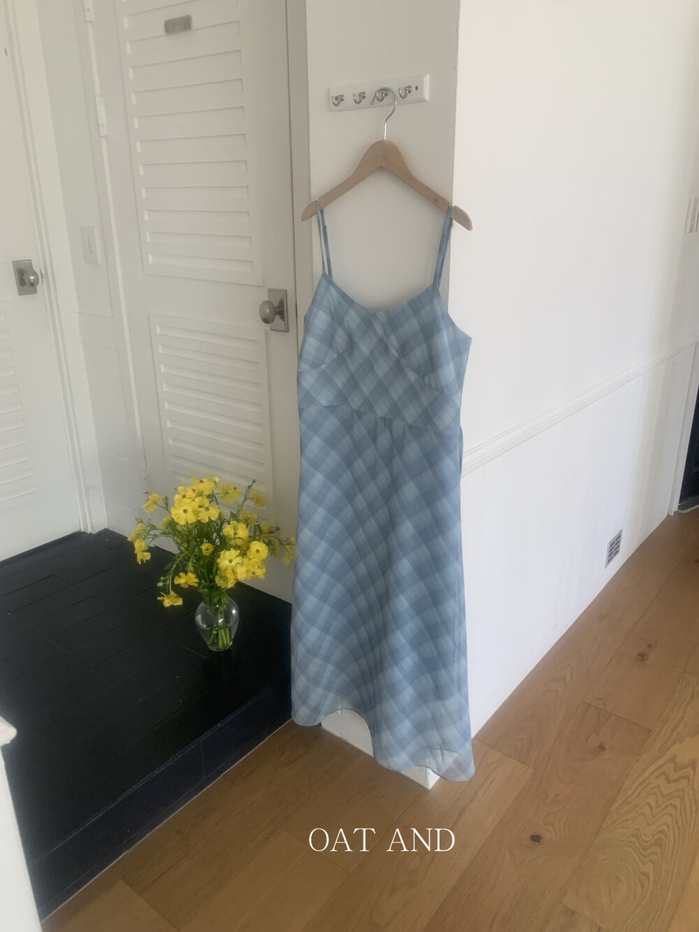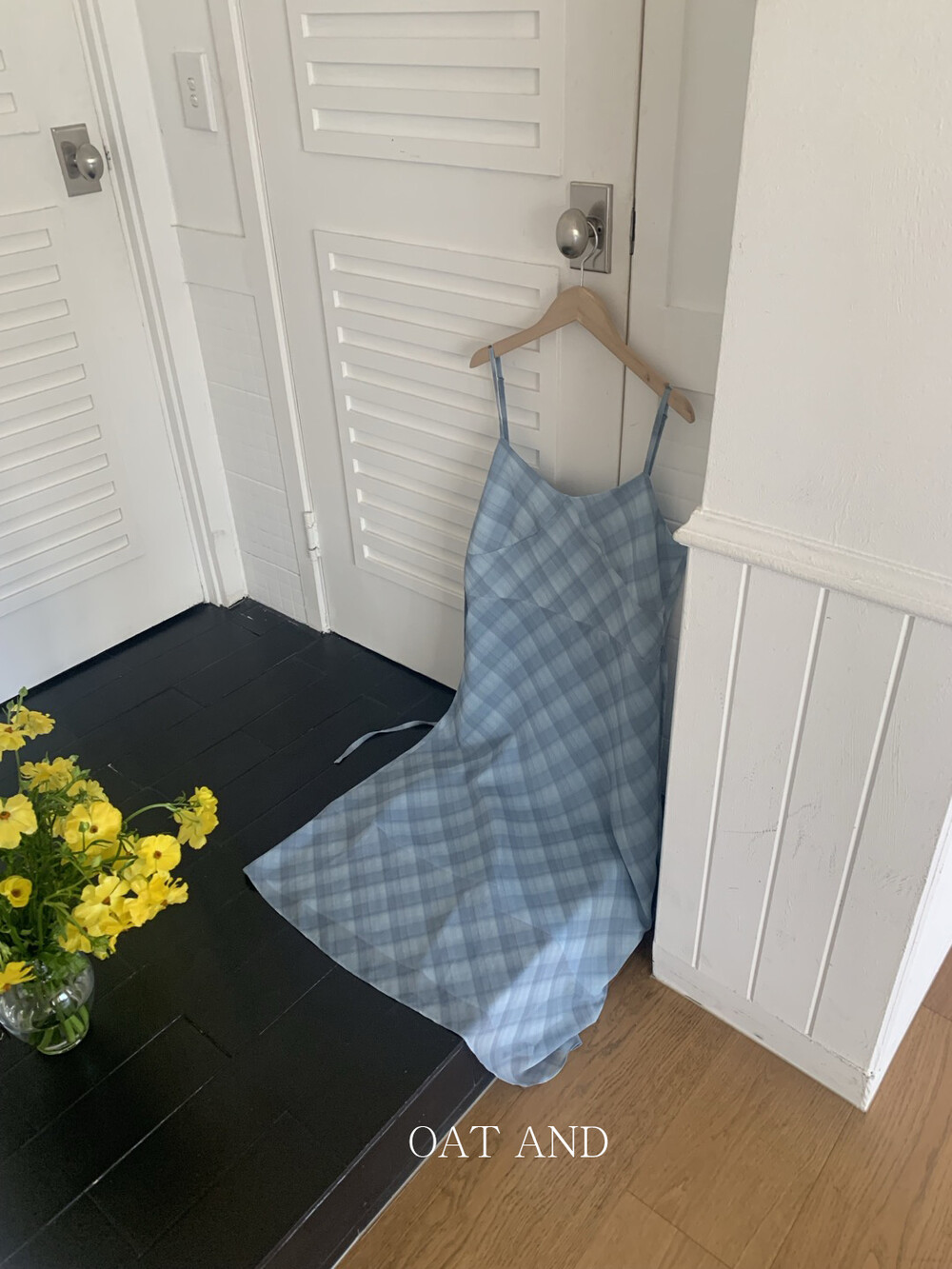봄-여름을 담은 맑은 블루 톤의 체크 슬립 원피스 오트앤드메이드 원피스 소개해드려요!