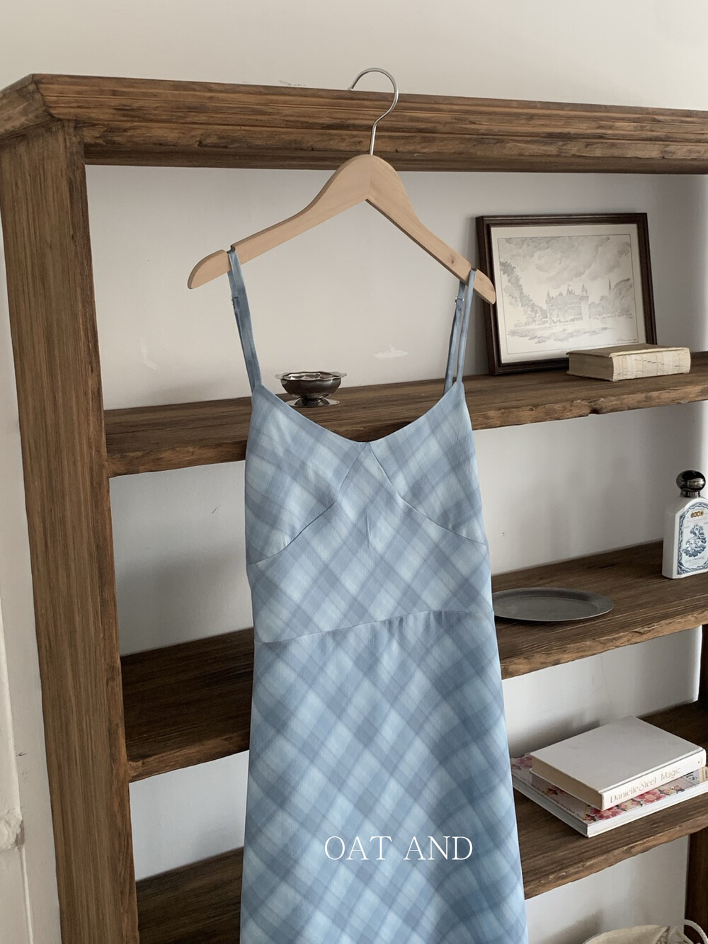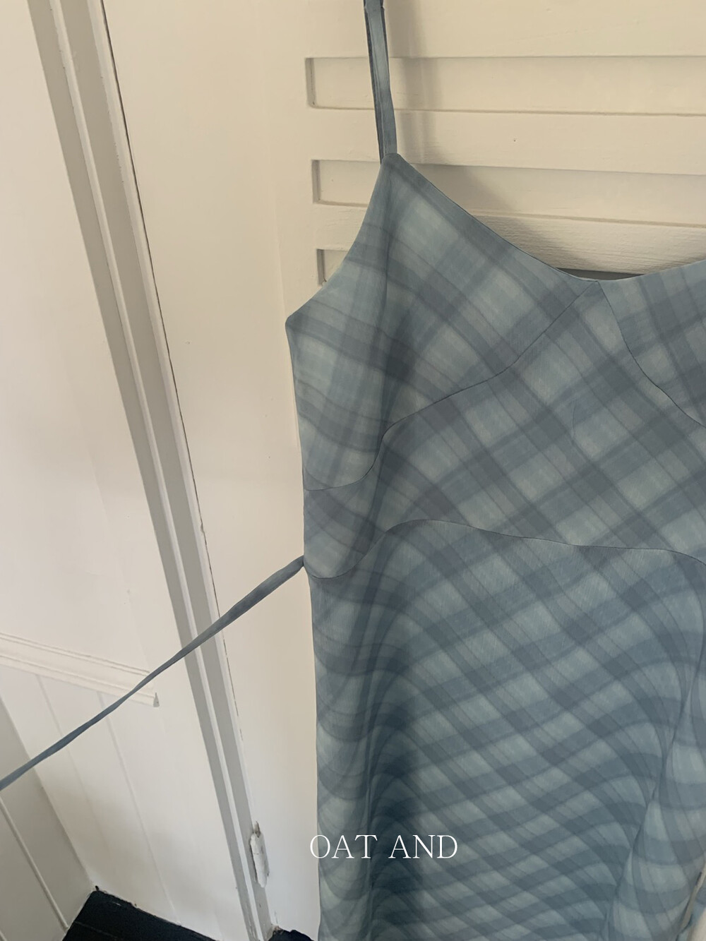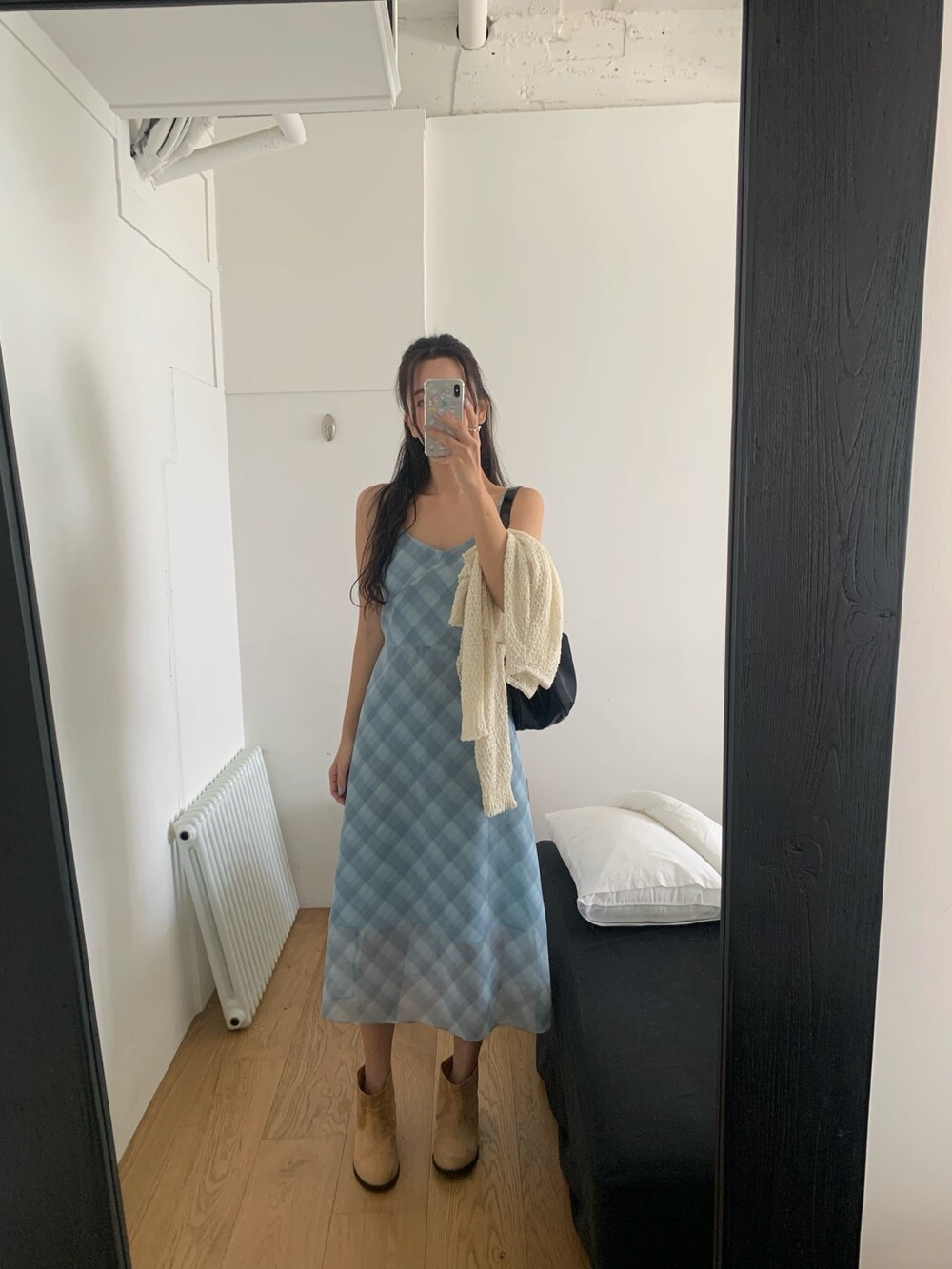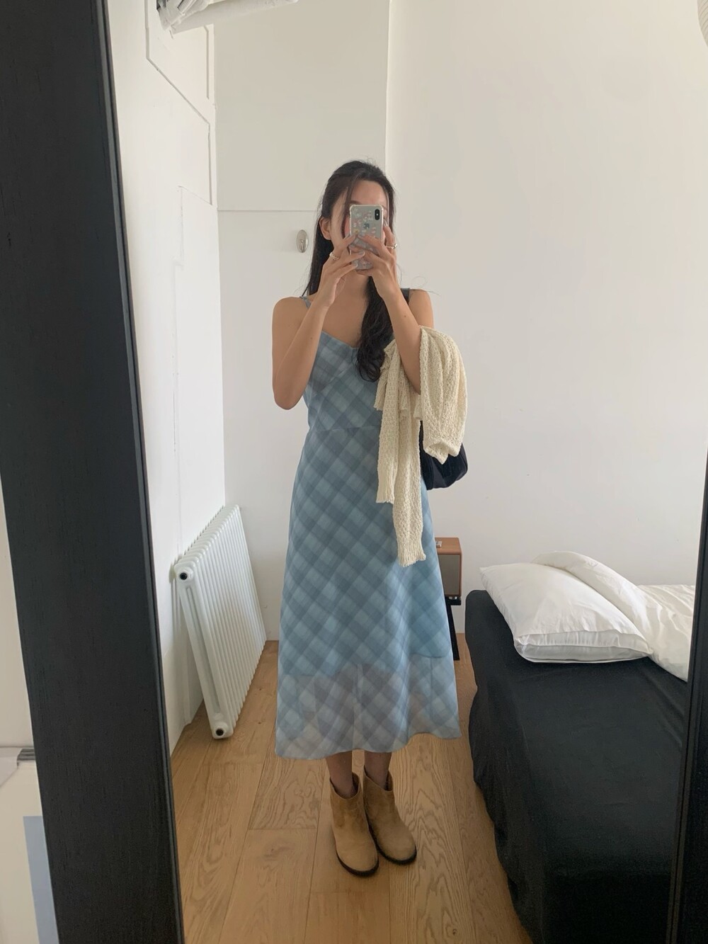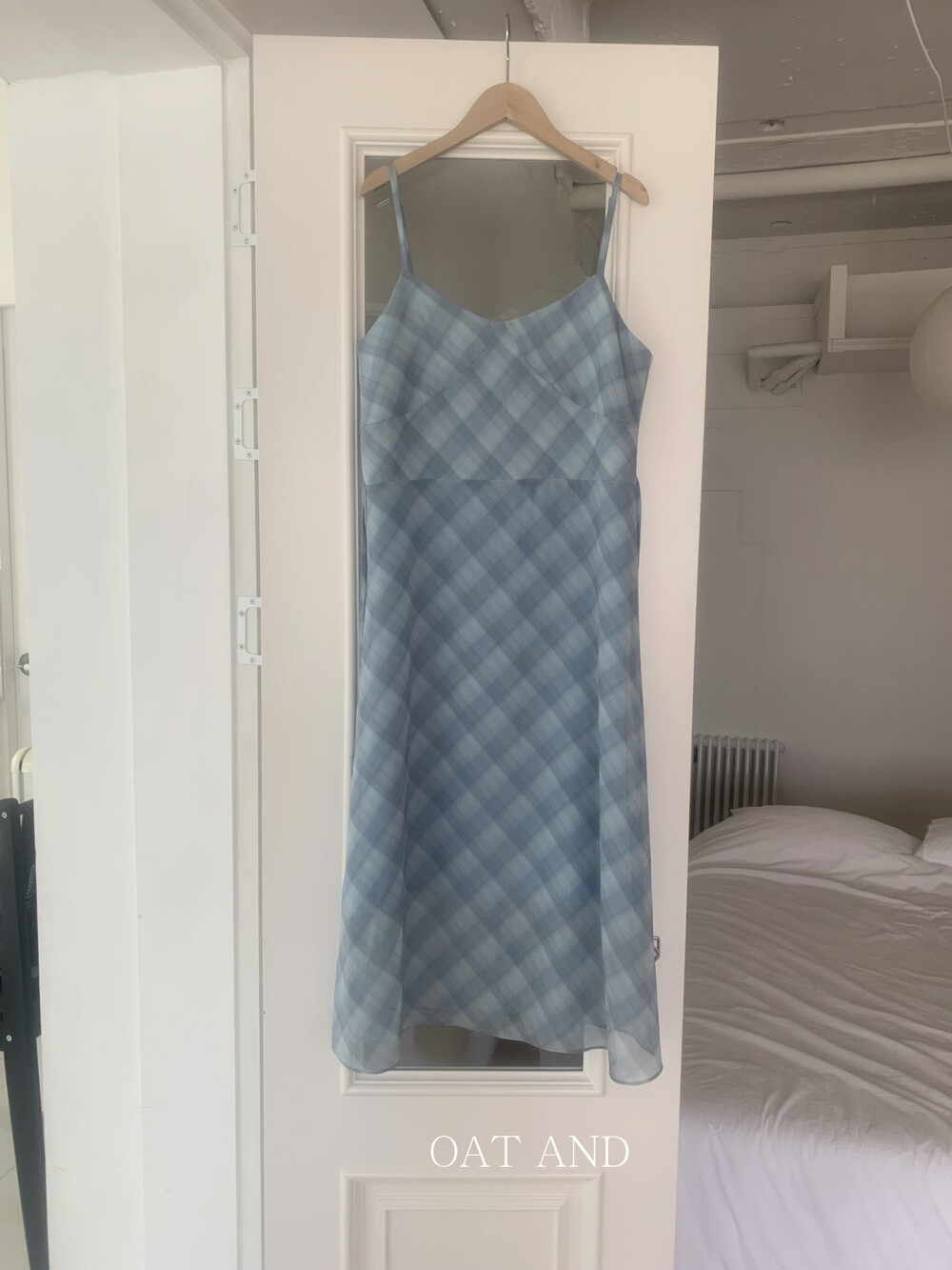 봄-여름을 담은 맑은 블루 톤의 체크 슬립 원피스 오트앤드메이드 원피스 소개해드려요!