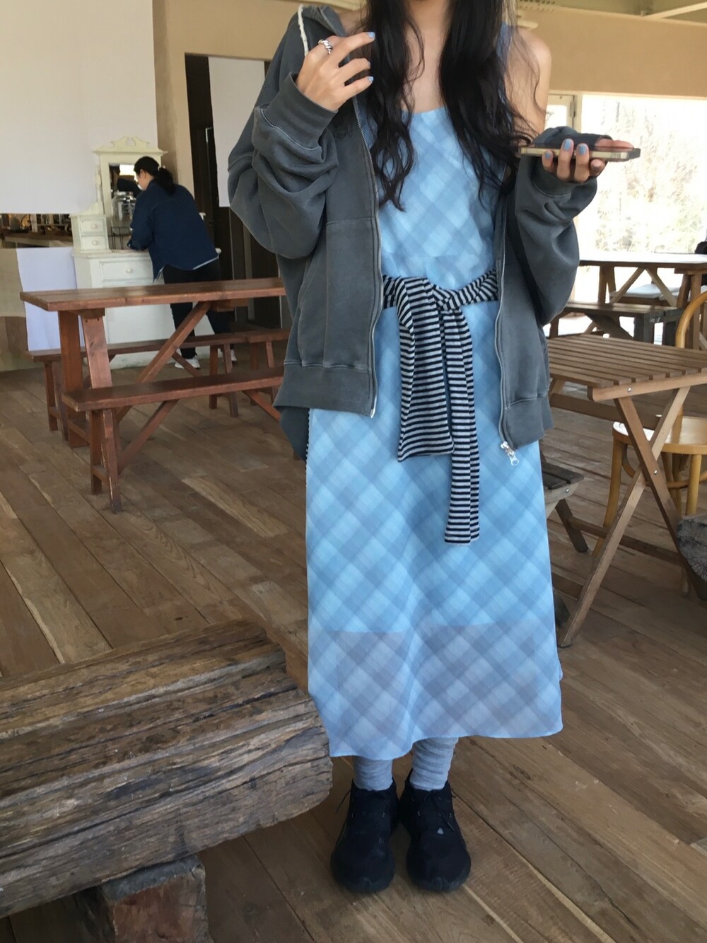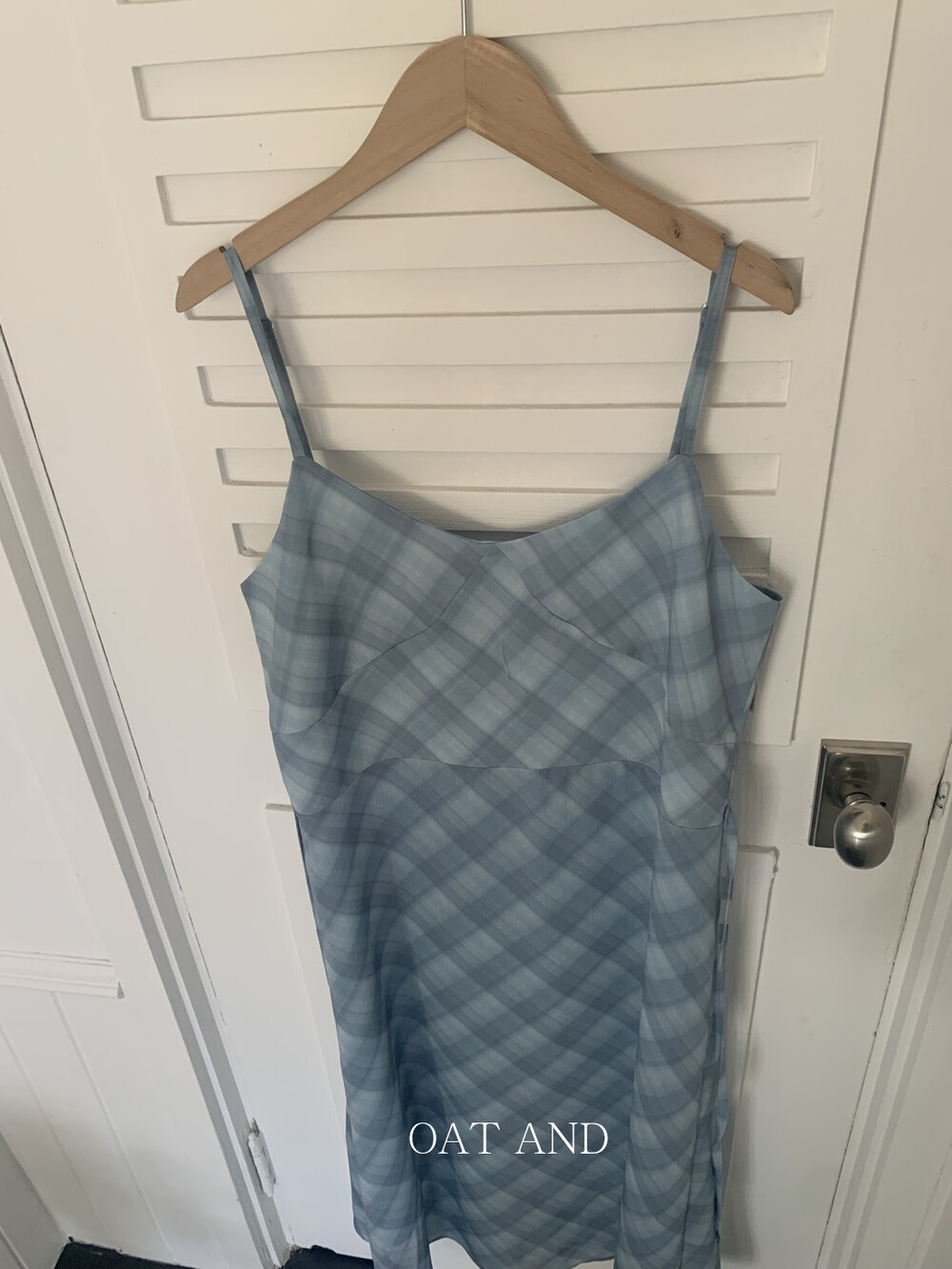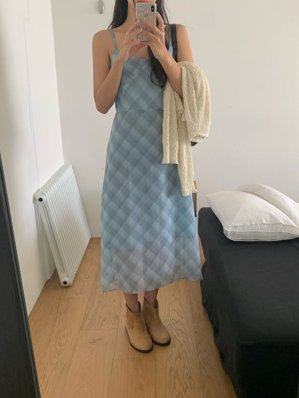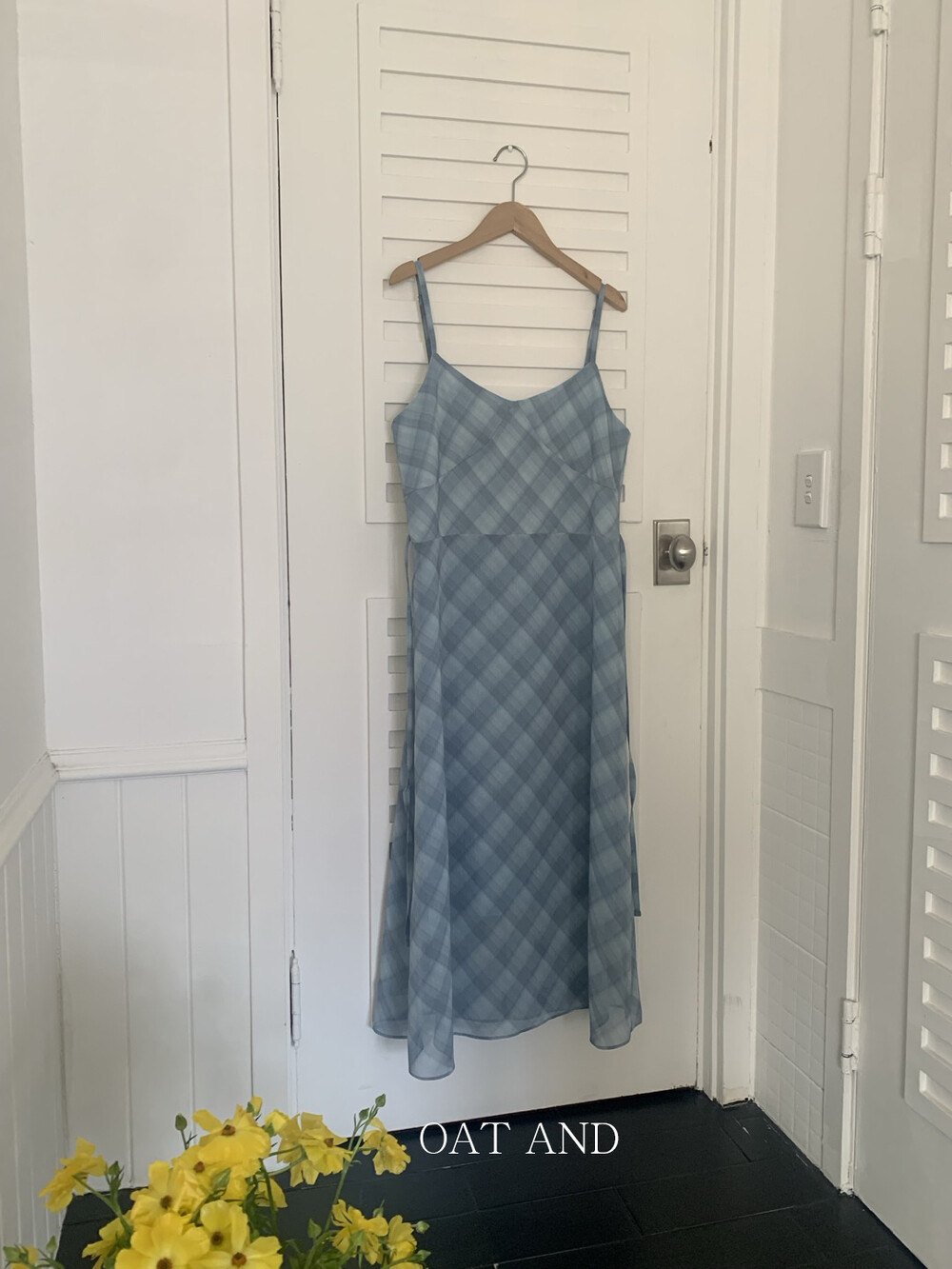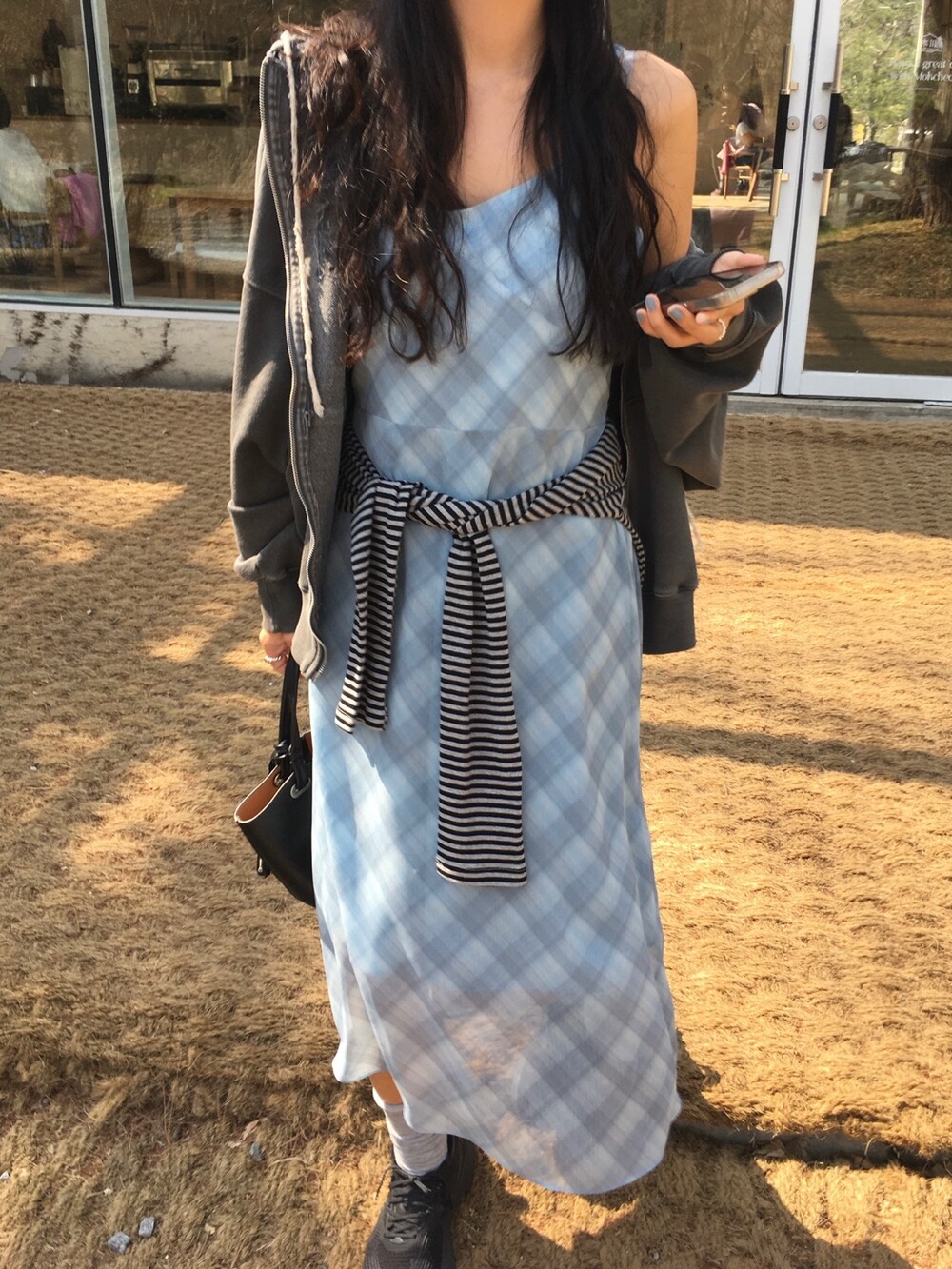 봄-여름을 담은 맑은 블루 톤의 체크 슬립 원피스 오트앤드메이드 원피스 소개해드려요!