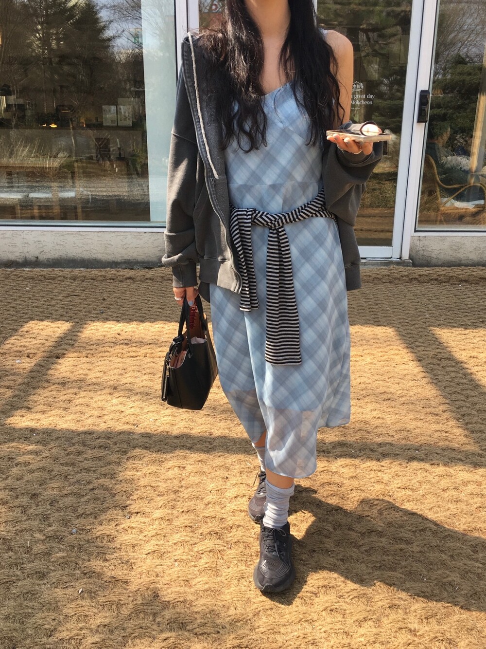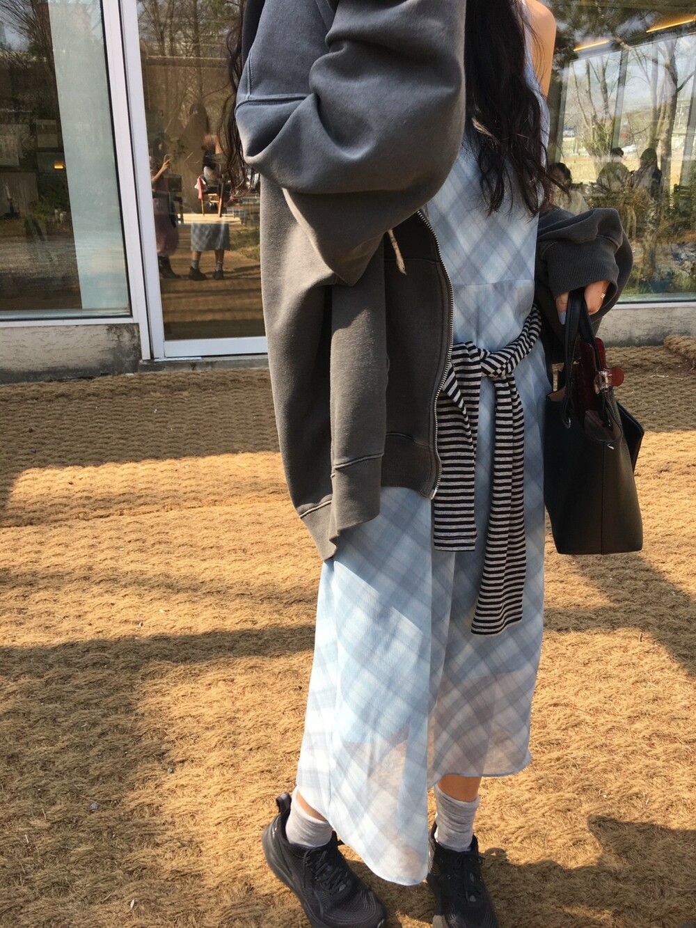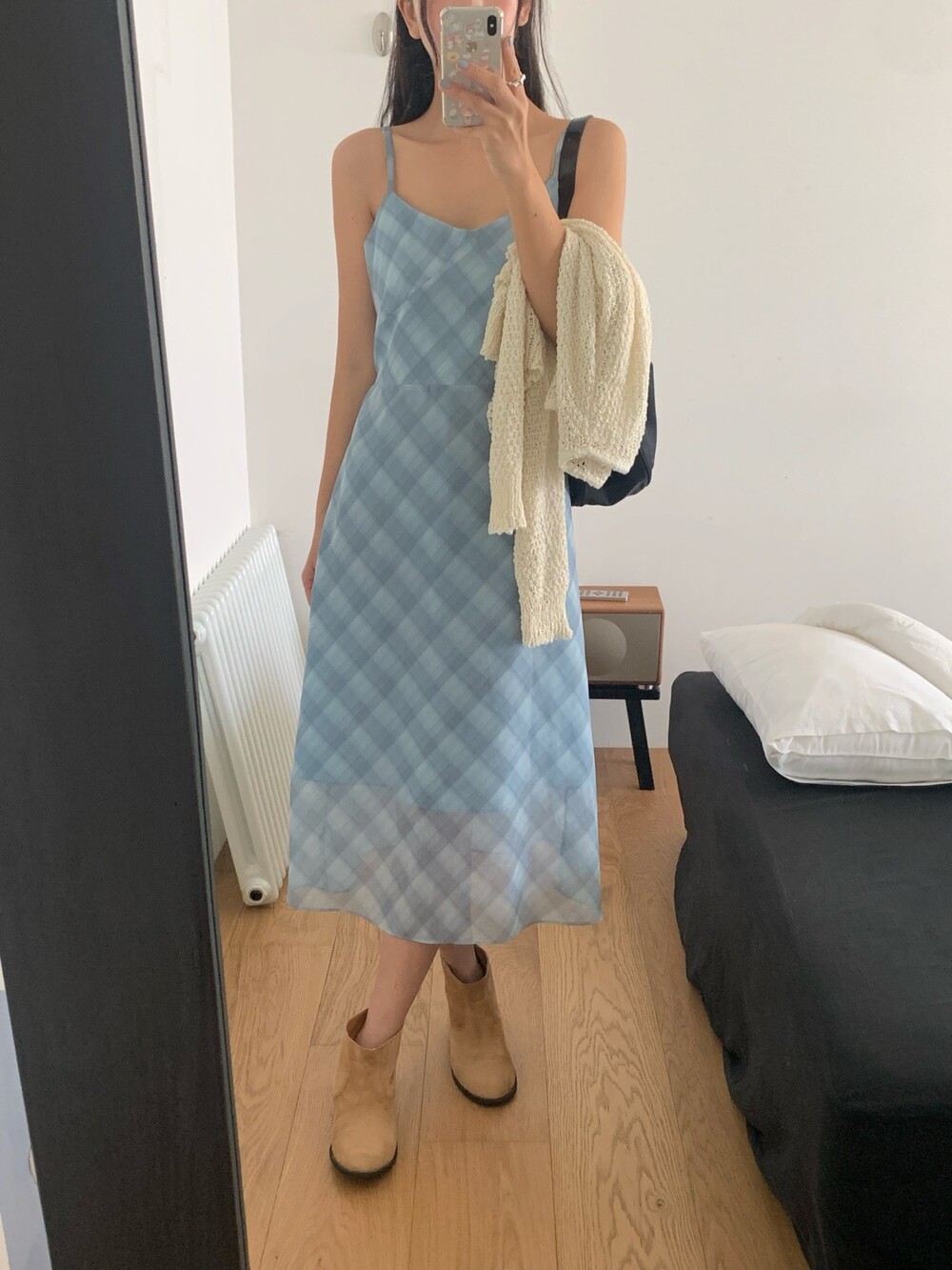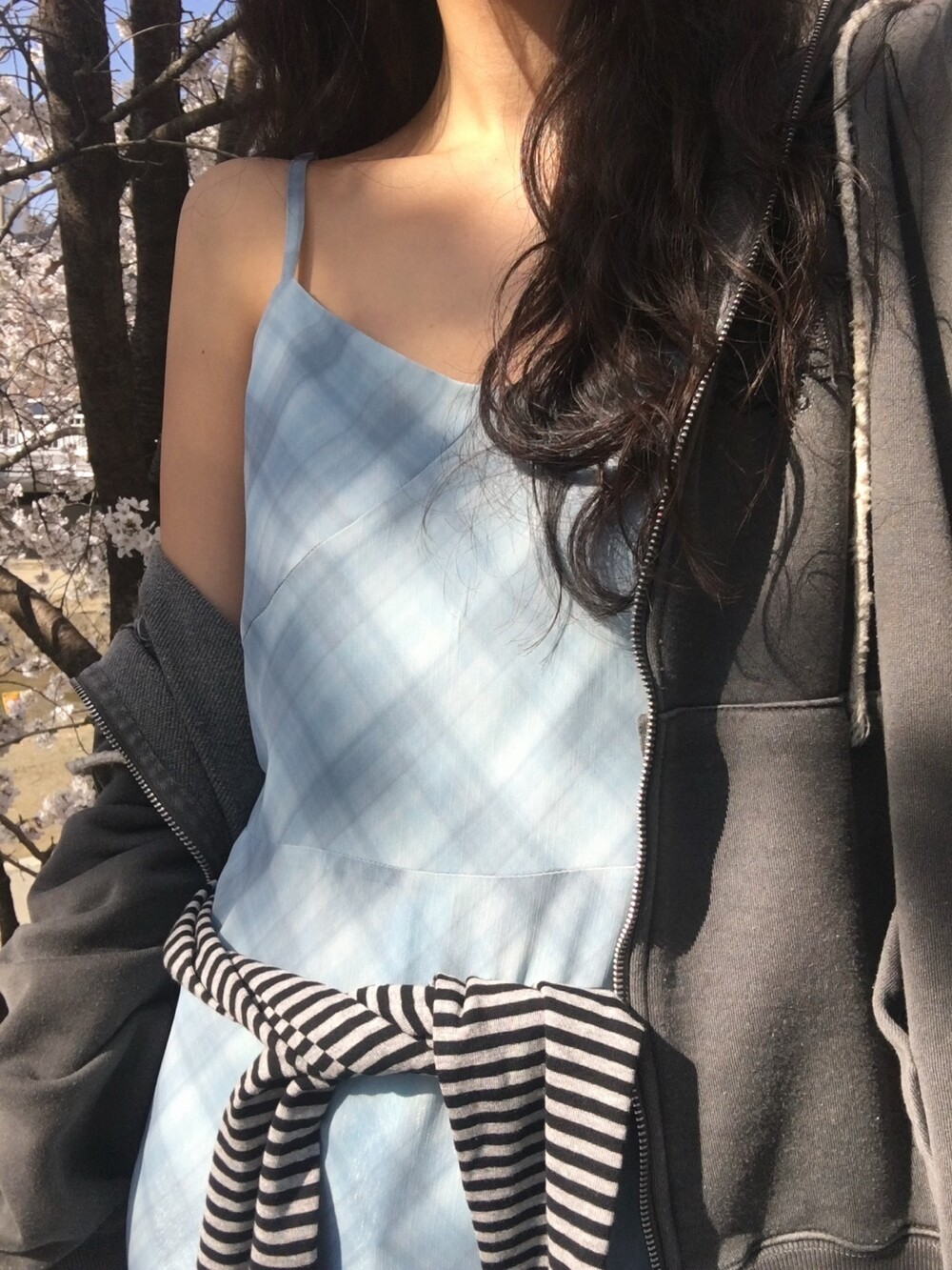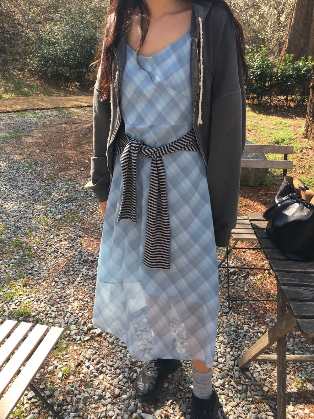 봄-여름을 담은 맑은 블루 톤의 체크 슬립 원피스 오트앤드메이드 원피스 소개해드려요!