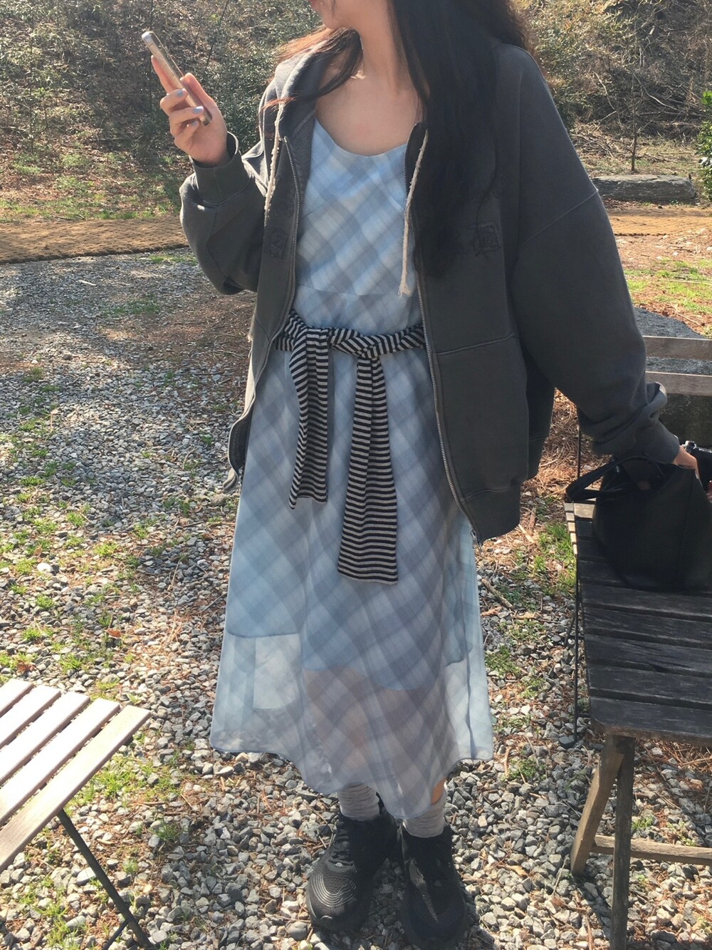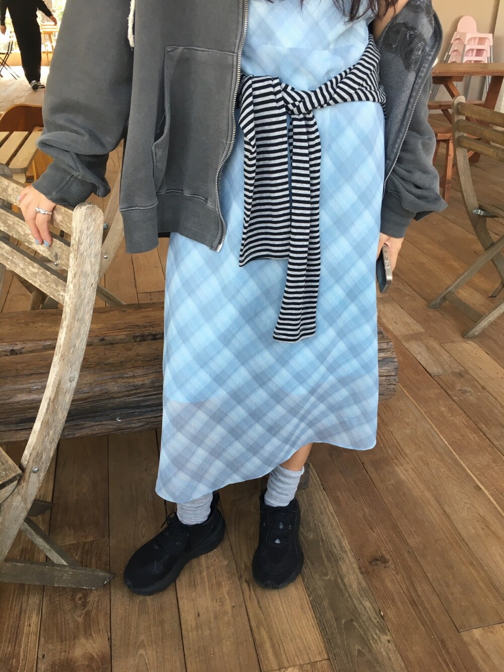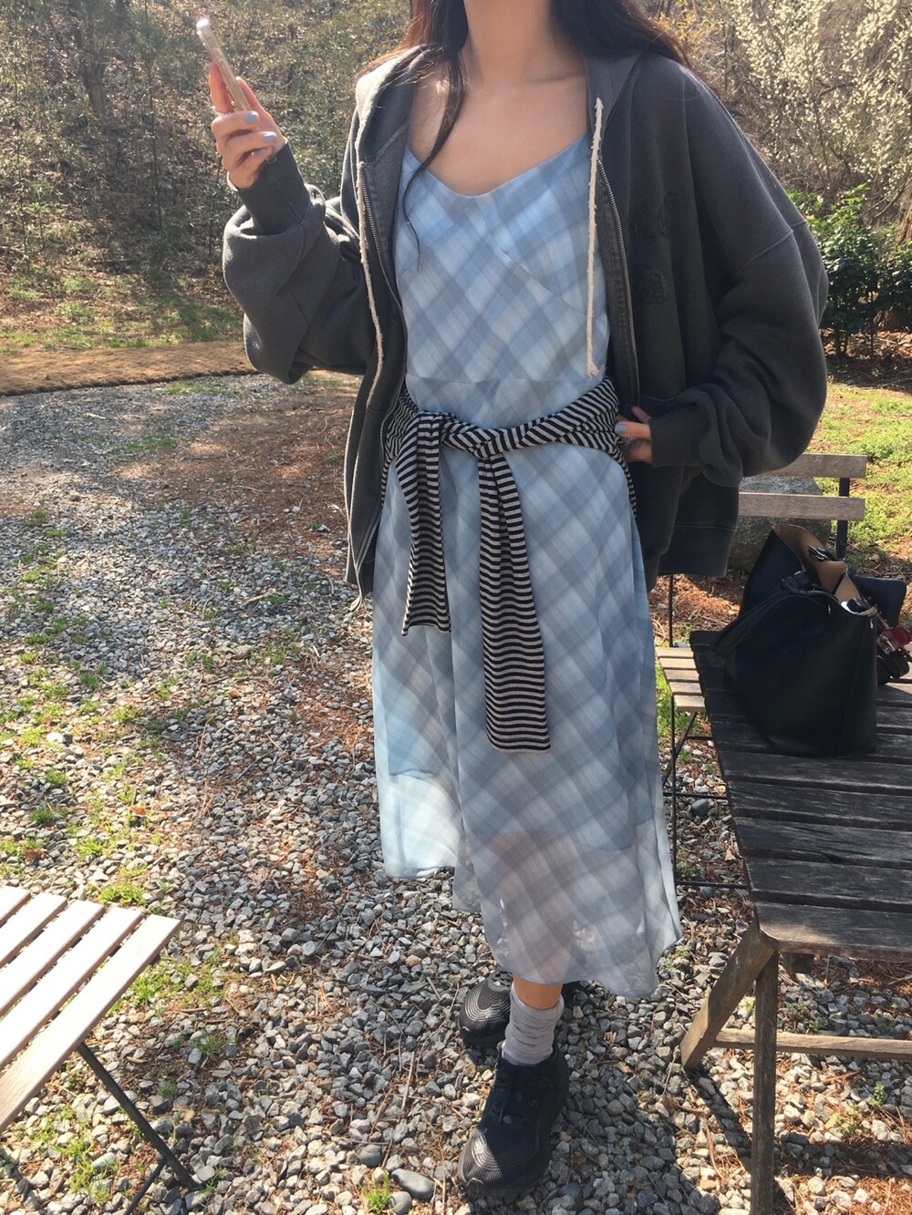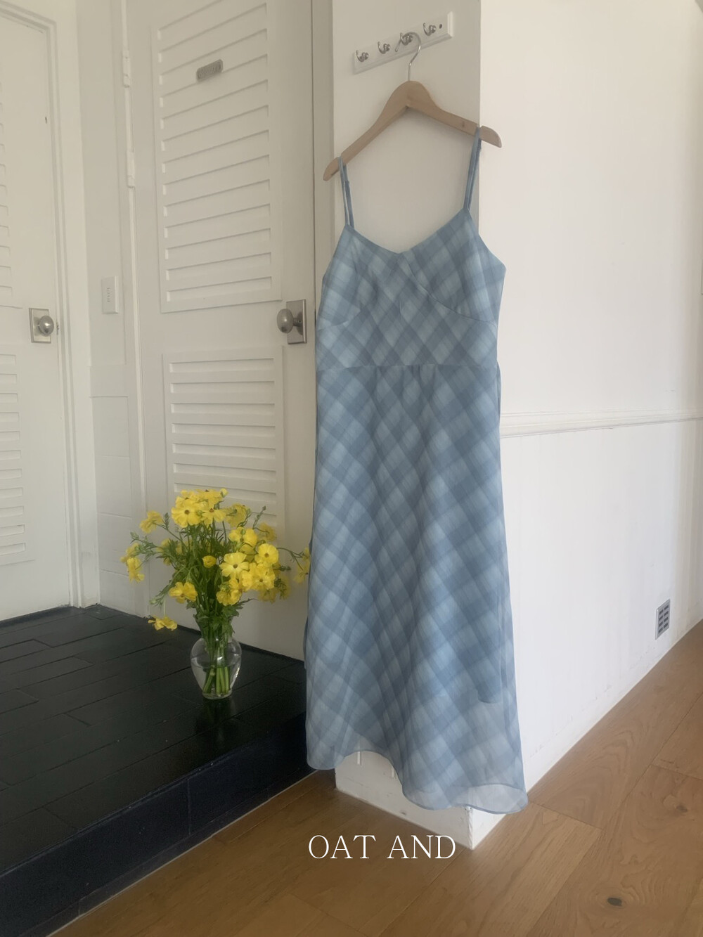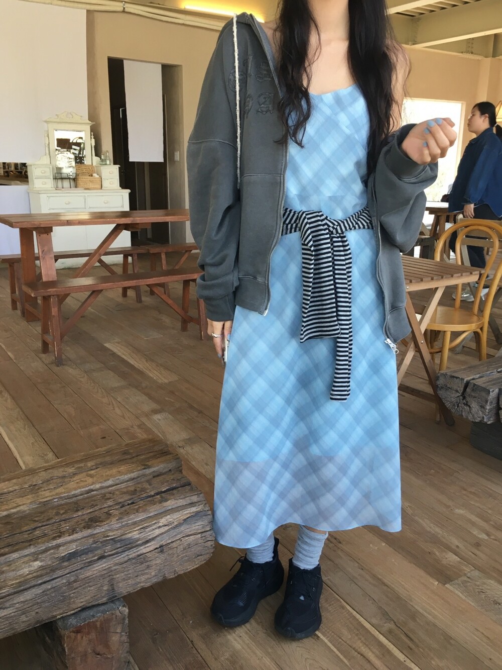 봄-여름을 담은 맑은 블루 톤의 체크 슬립 원피스 오트앤드메이드 원피스 소개해드려요!