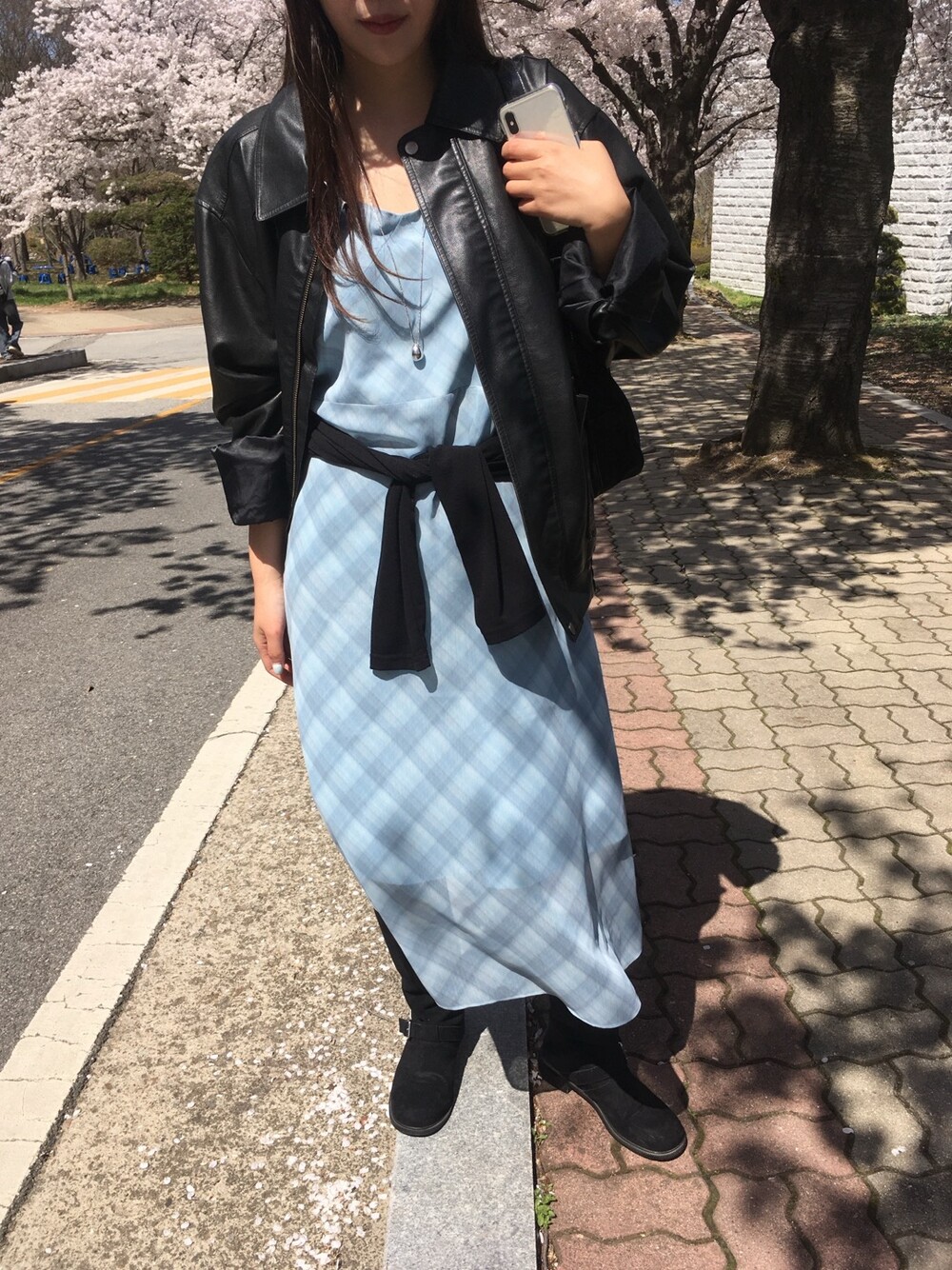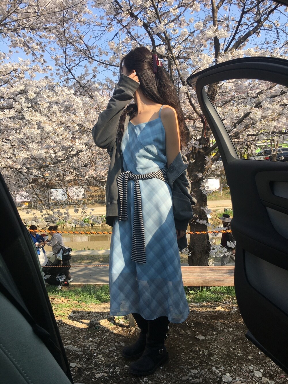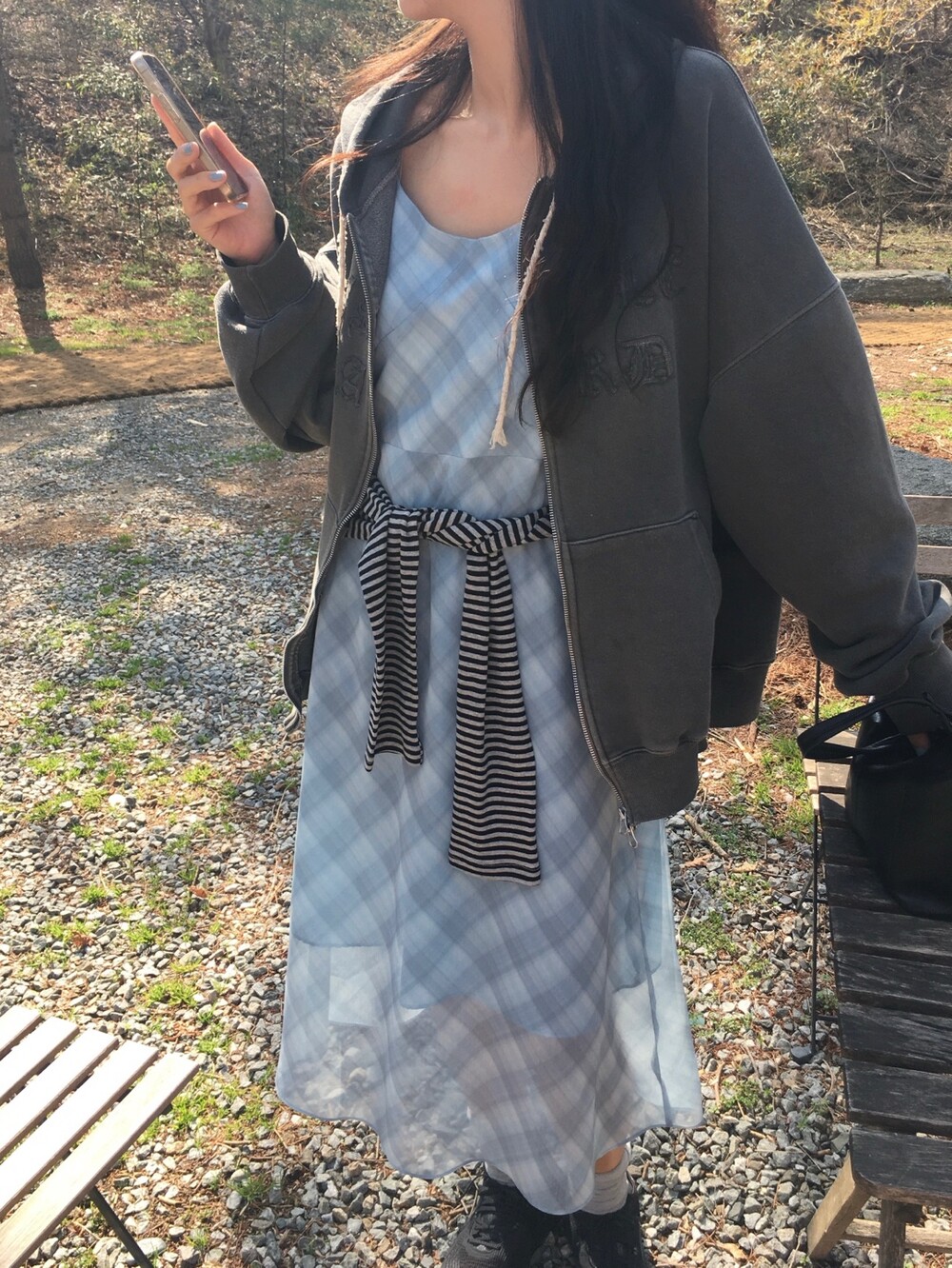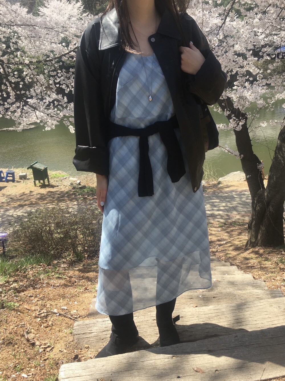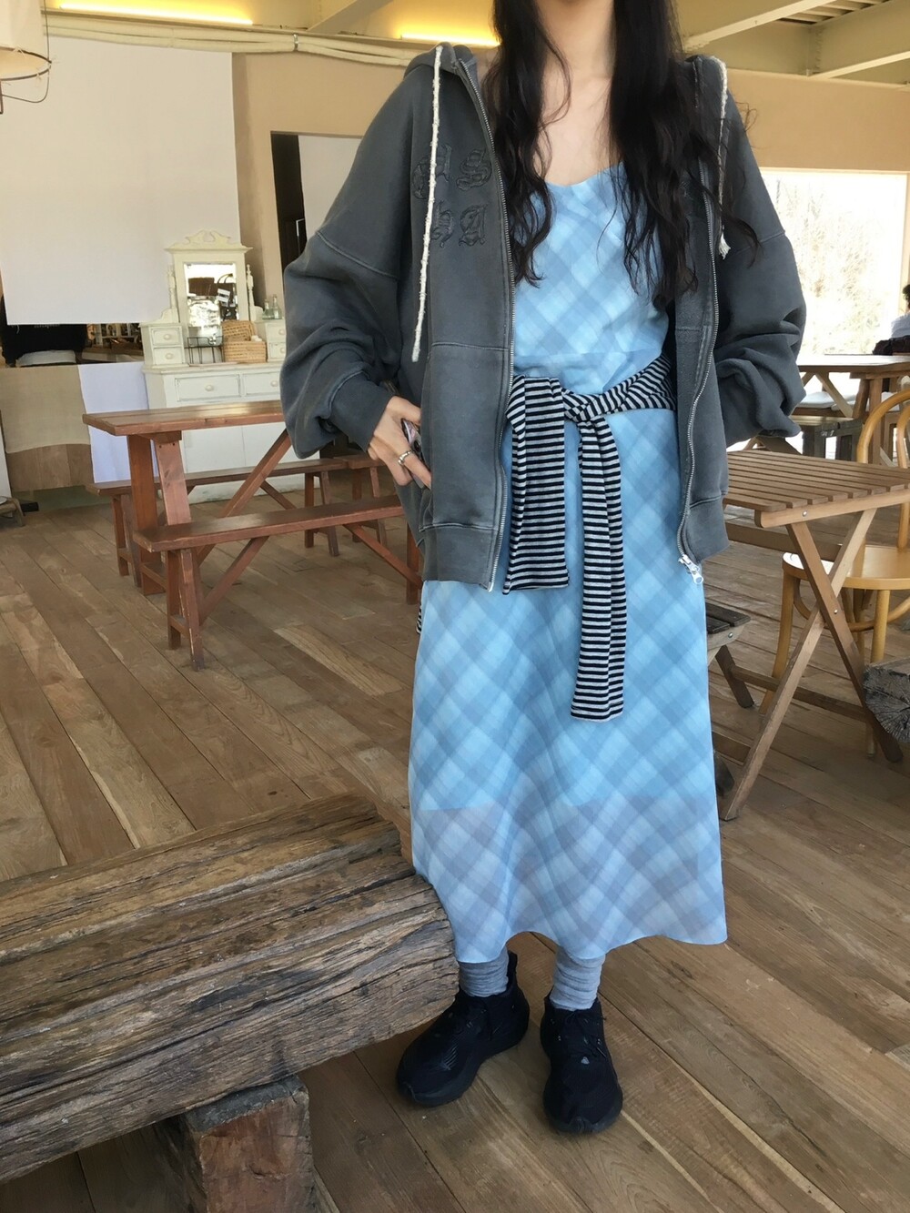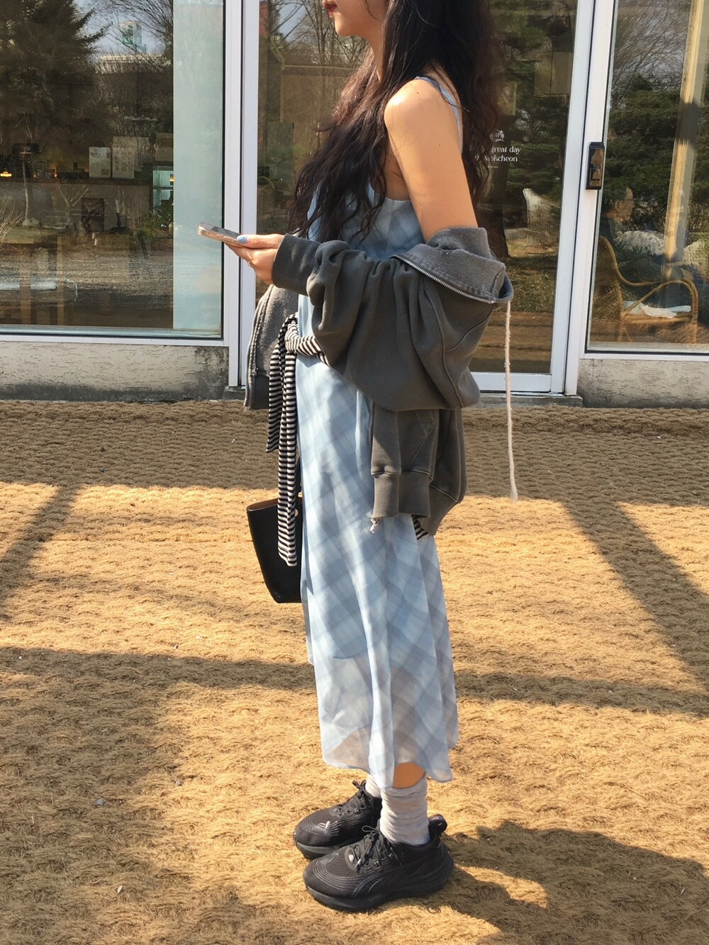 봄-여름을 담은 맑은 블루 톤의 체크 슬립 원피스 오트앤드메이드 원피스 소개해드려요!