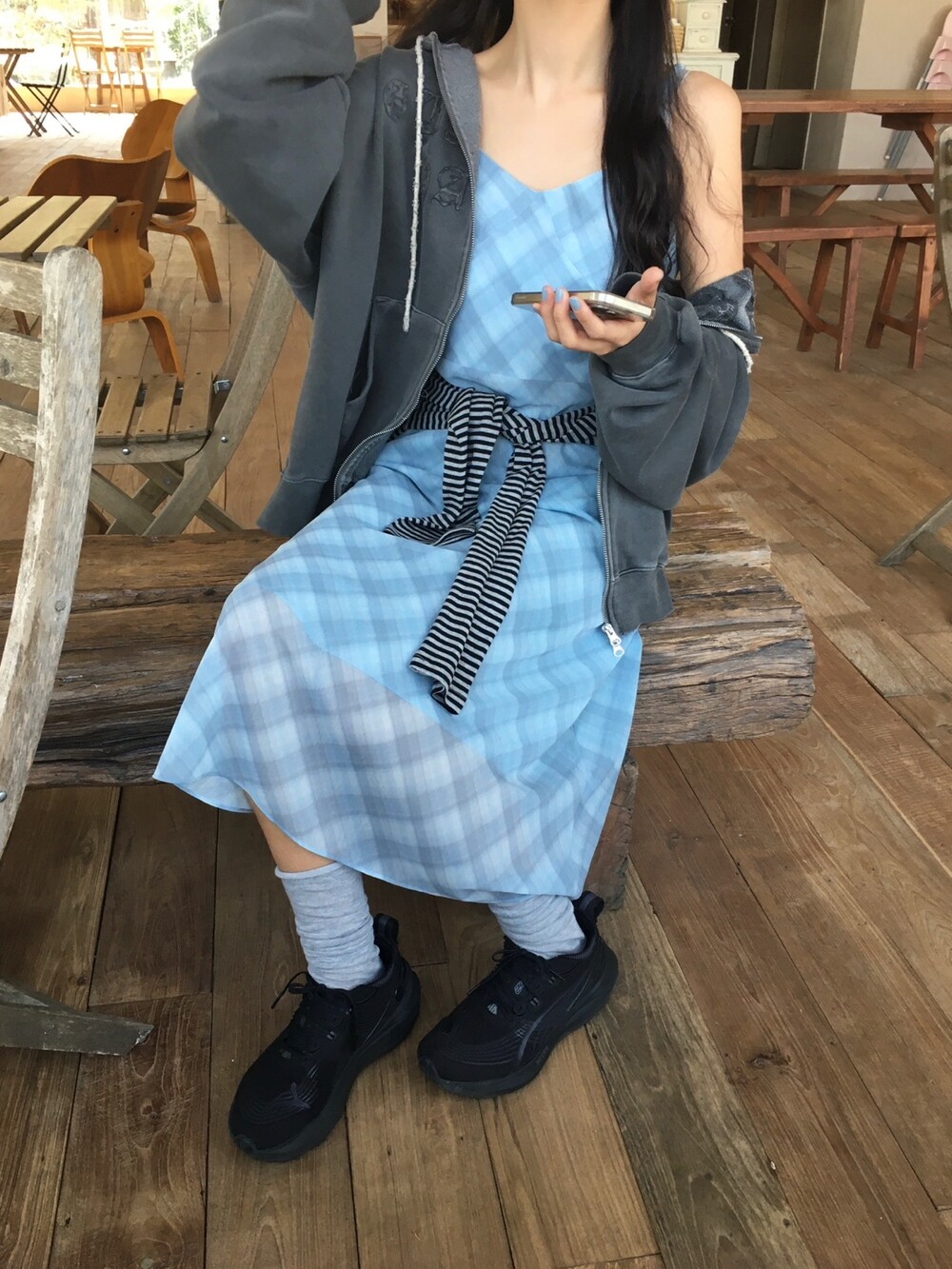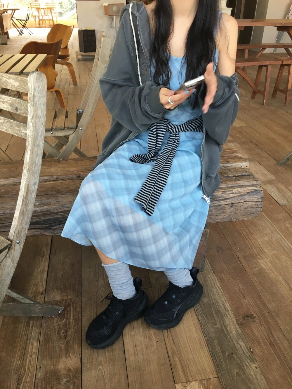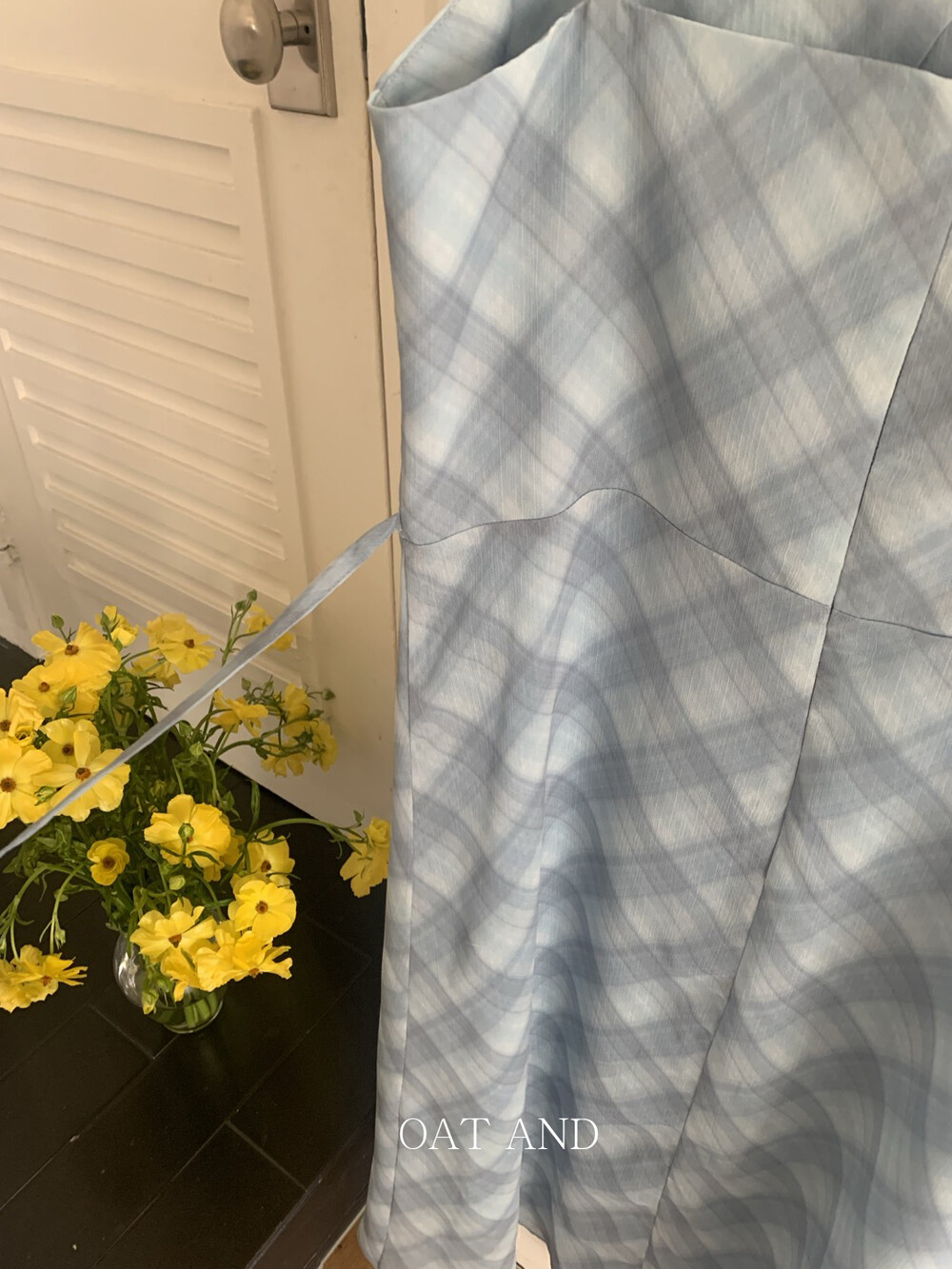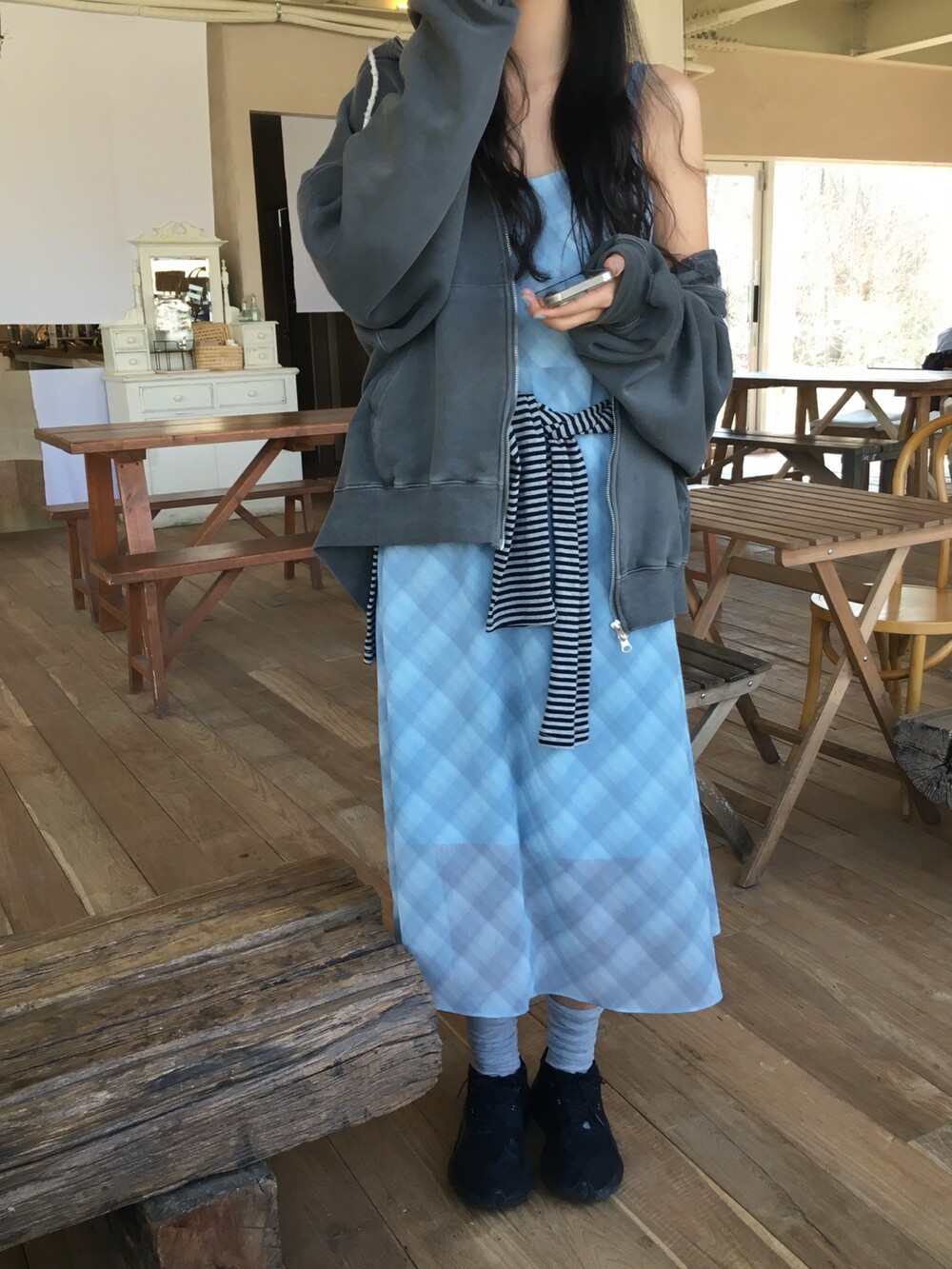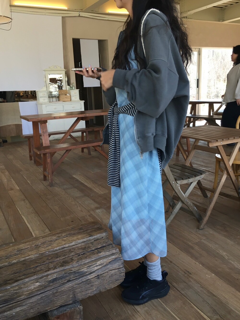 봄-여름을 담은 맑은 블루 톤의 체크 슬립 원피스 오트앤드메이드 원피스 소개해드려요!