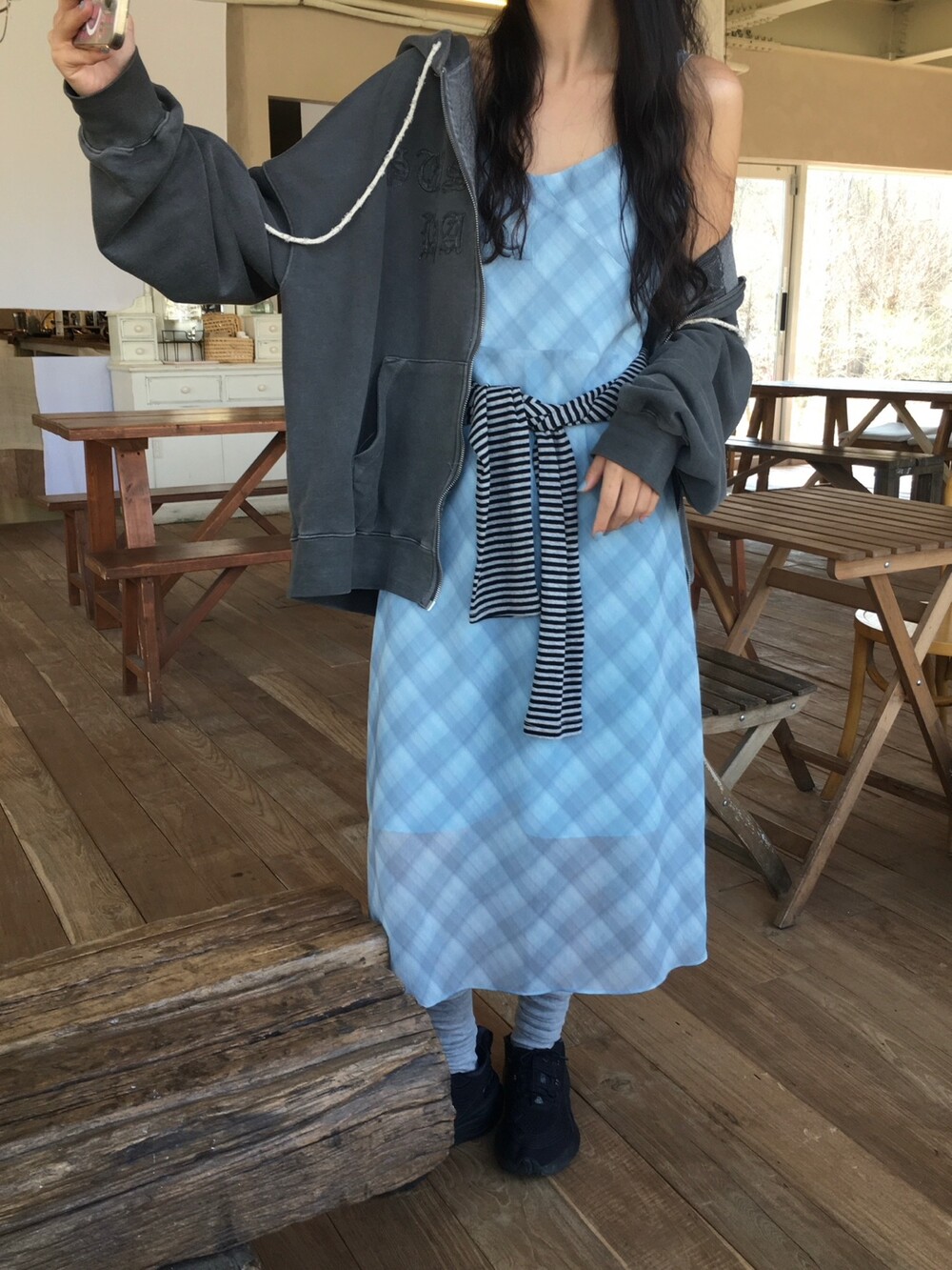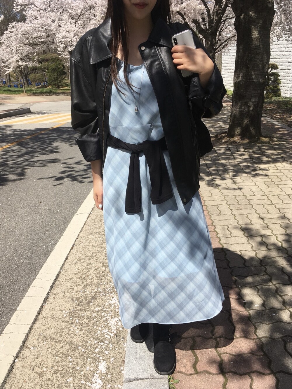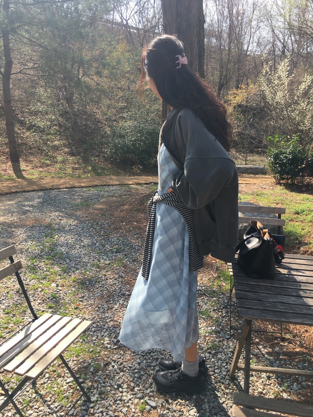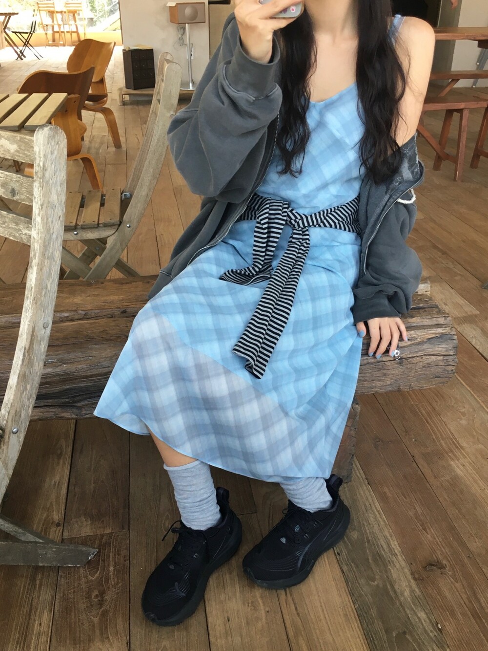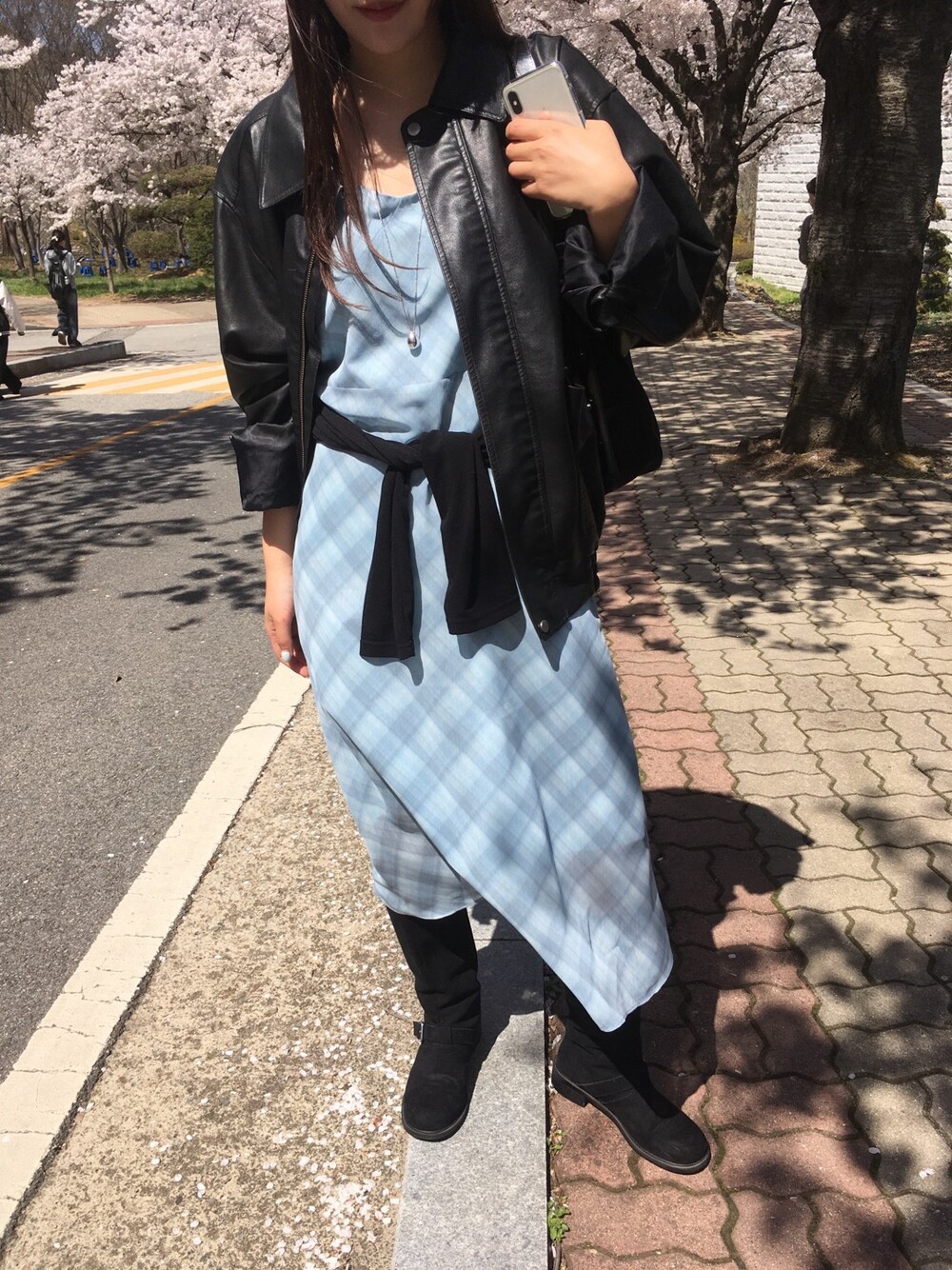봄-여름을 담은 맑은 블루 톤의 체크 슬립 원피스 오트앤드메이드 원피스 소개해드려요!