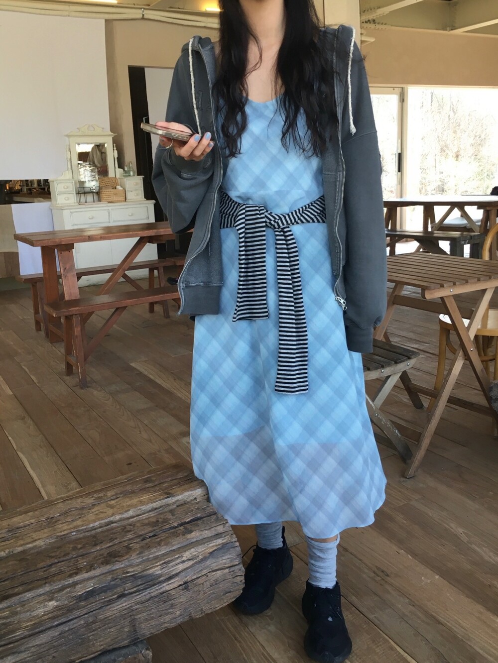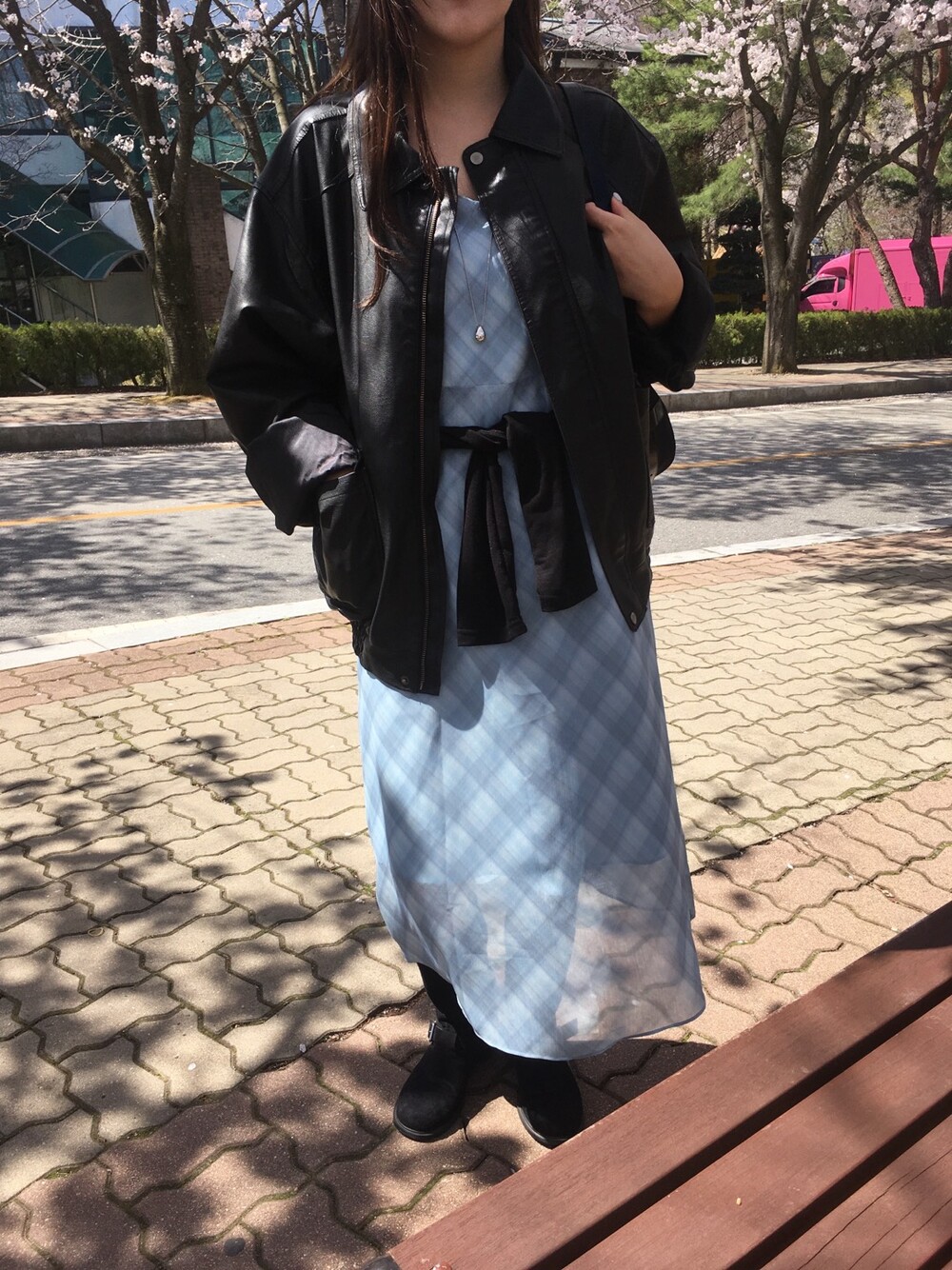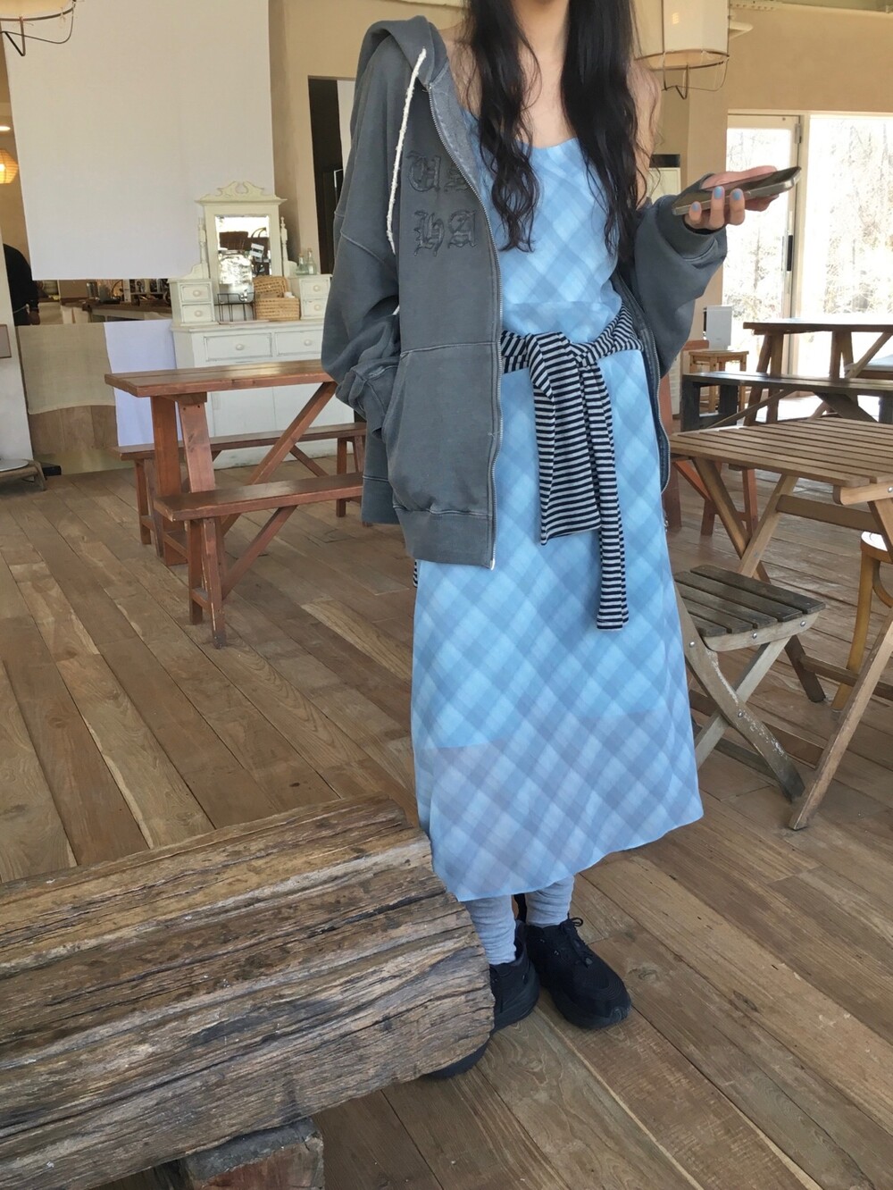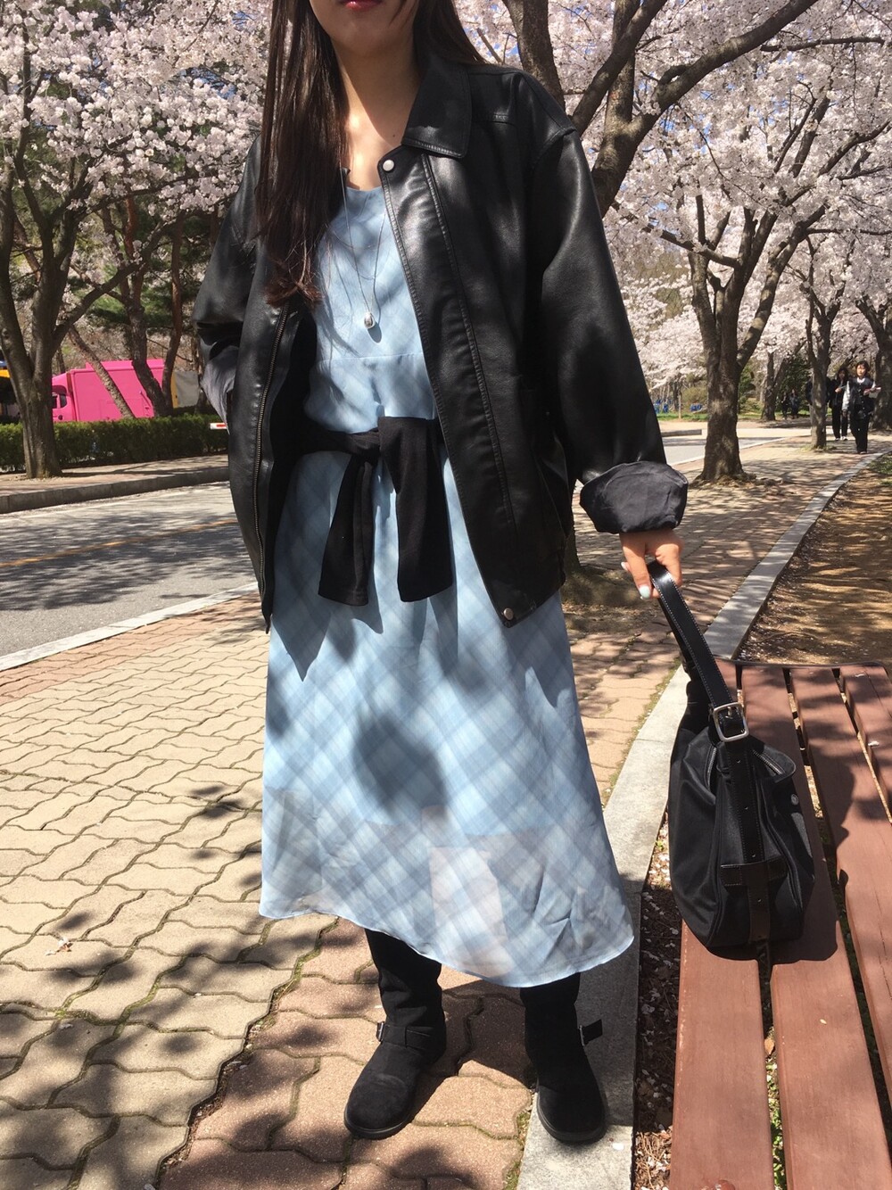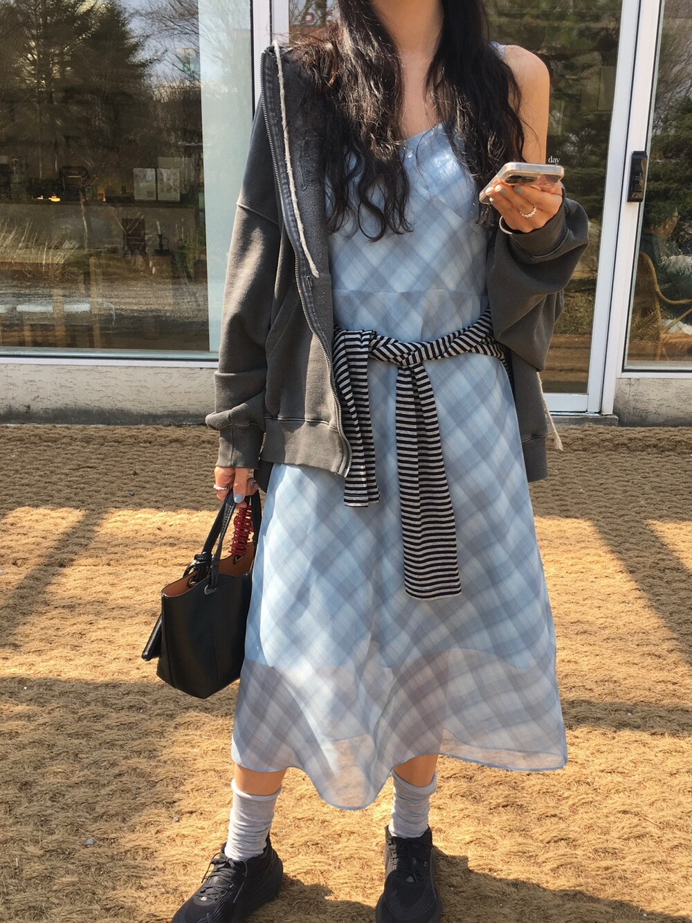 봄-여름을 담은 맑은 블루 톤의 체크 슬립 원피스 오트앤드메이드 원피스 소개해드려요!