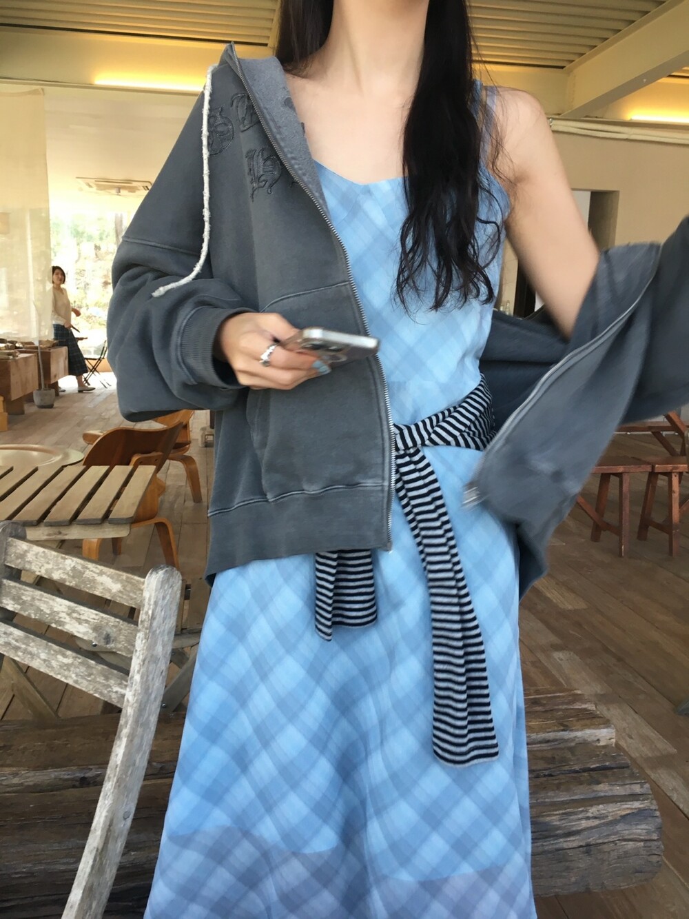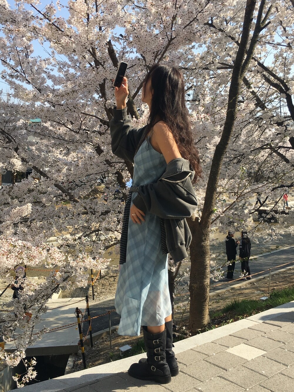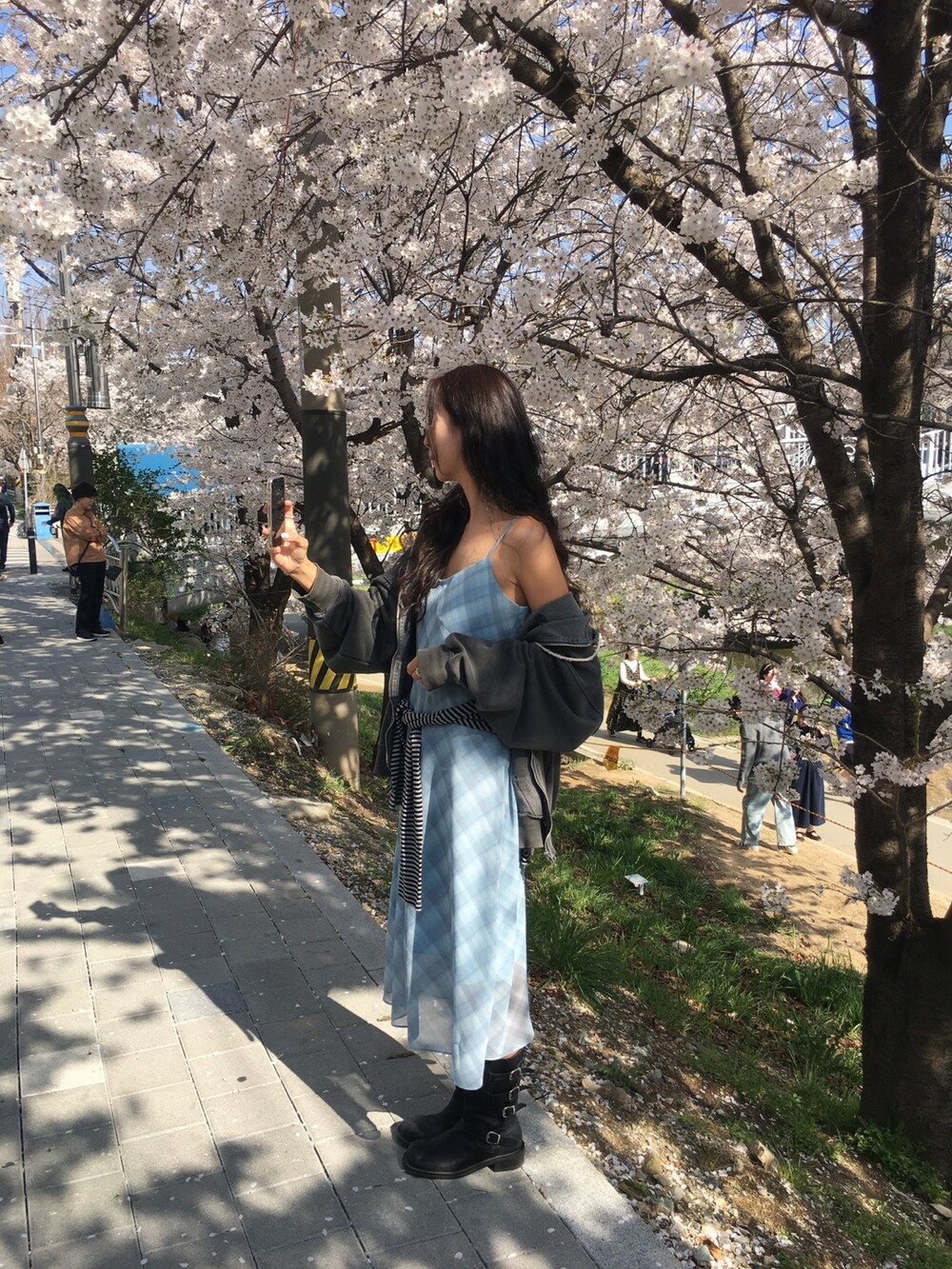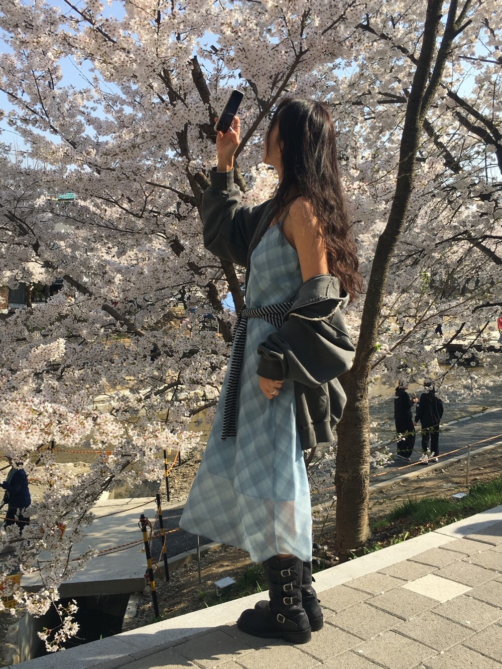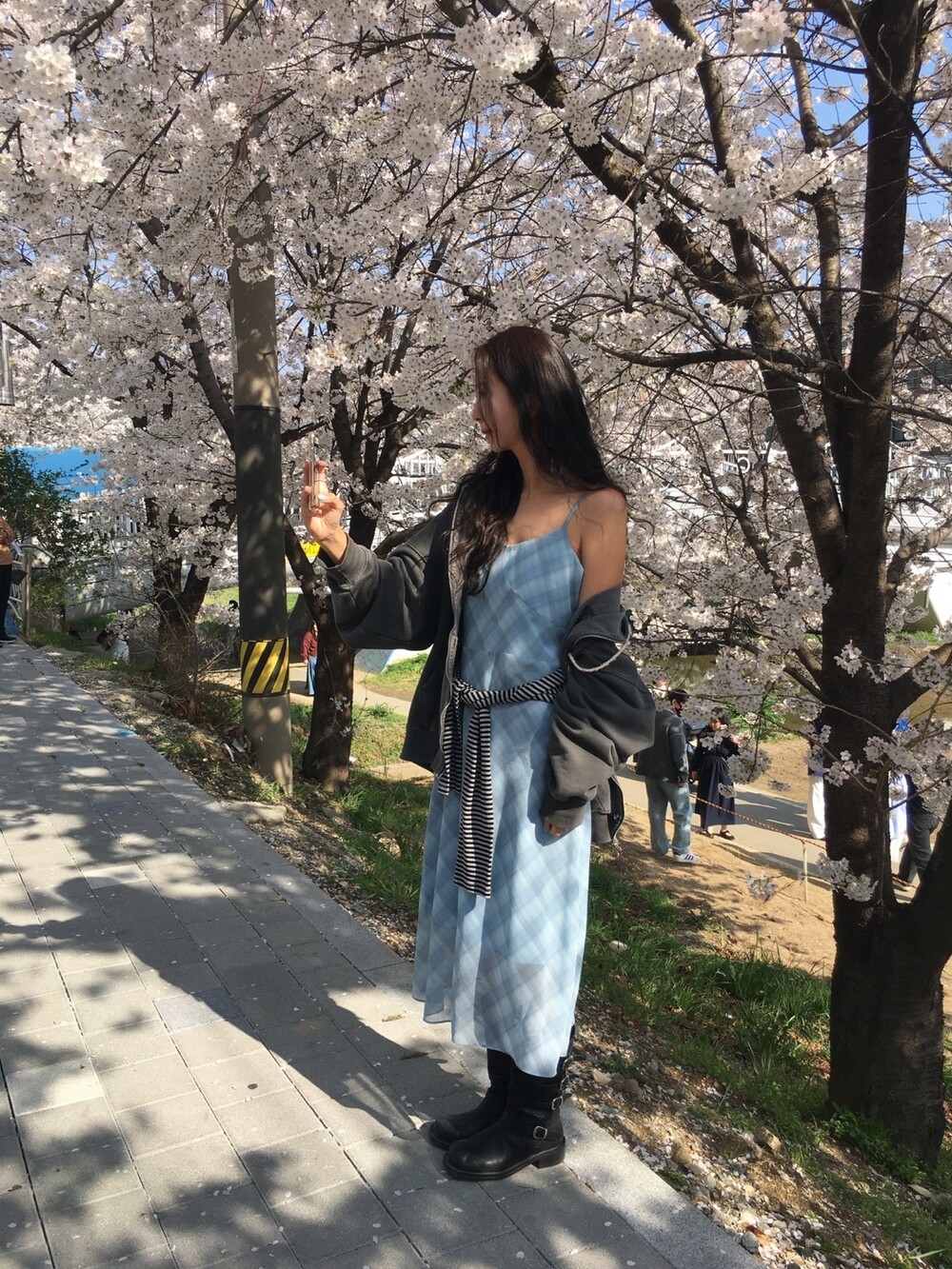 봄-여름을 담은 맑은 블루 톤의 체크 슬립 원피스 오트앤드메이드 원피스 소개해드려요!