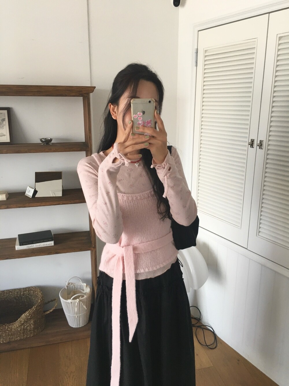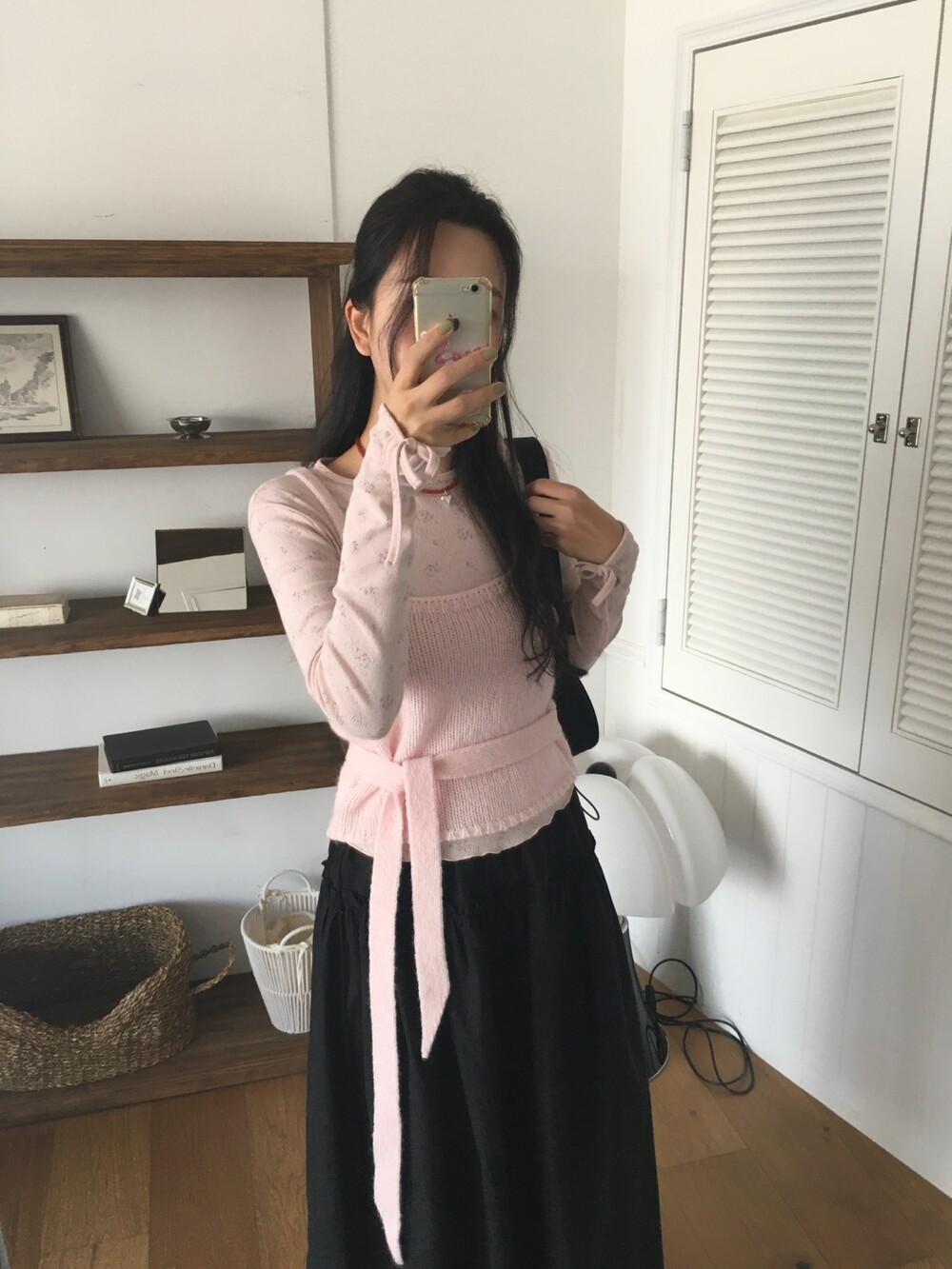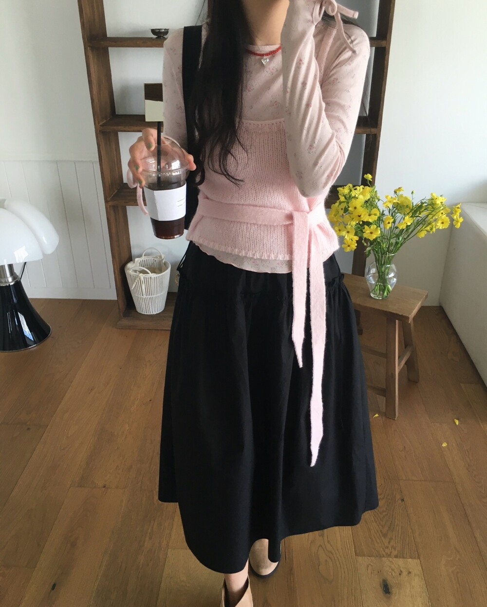 어깨는 얇은 두께감으로 여리함을 살리고, 허리의 타이 끈도 얇고 끝단을 날렵하게 했답니다 ㅎㅎ