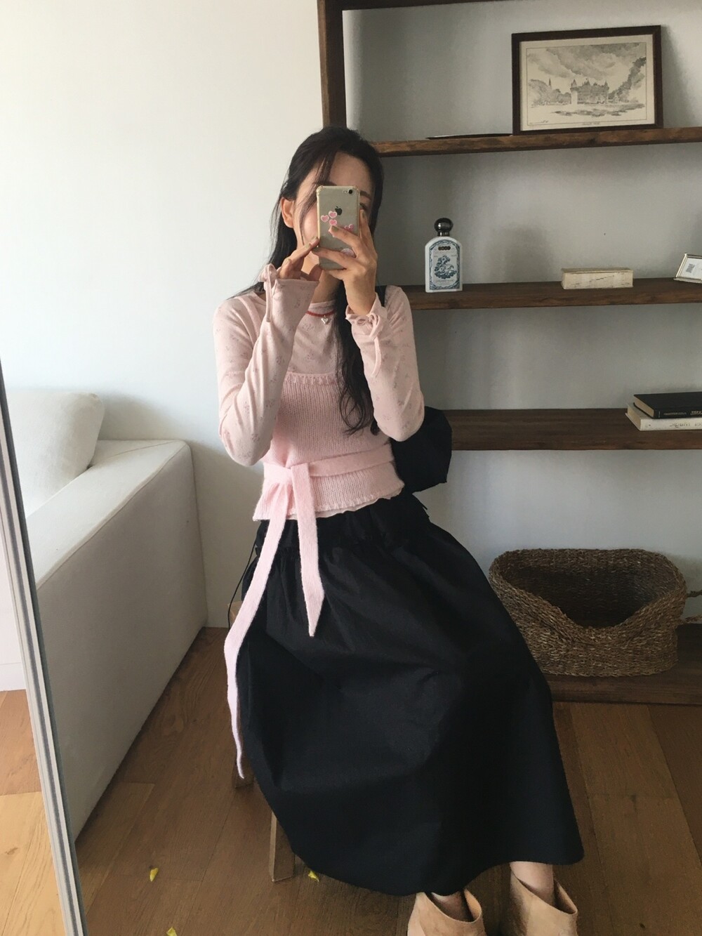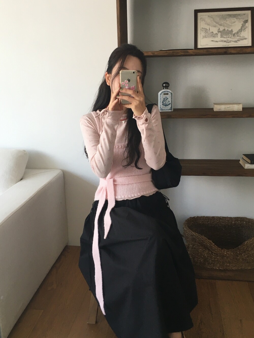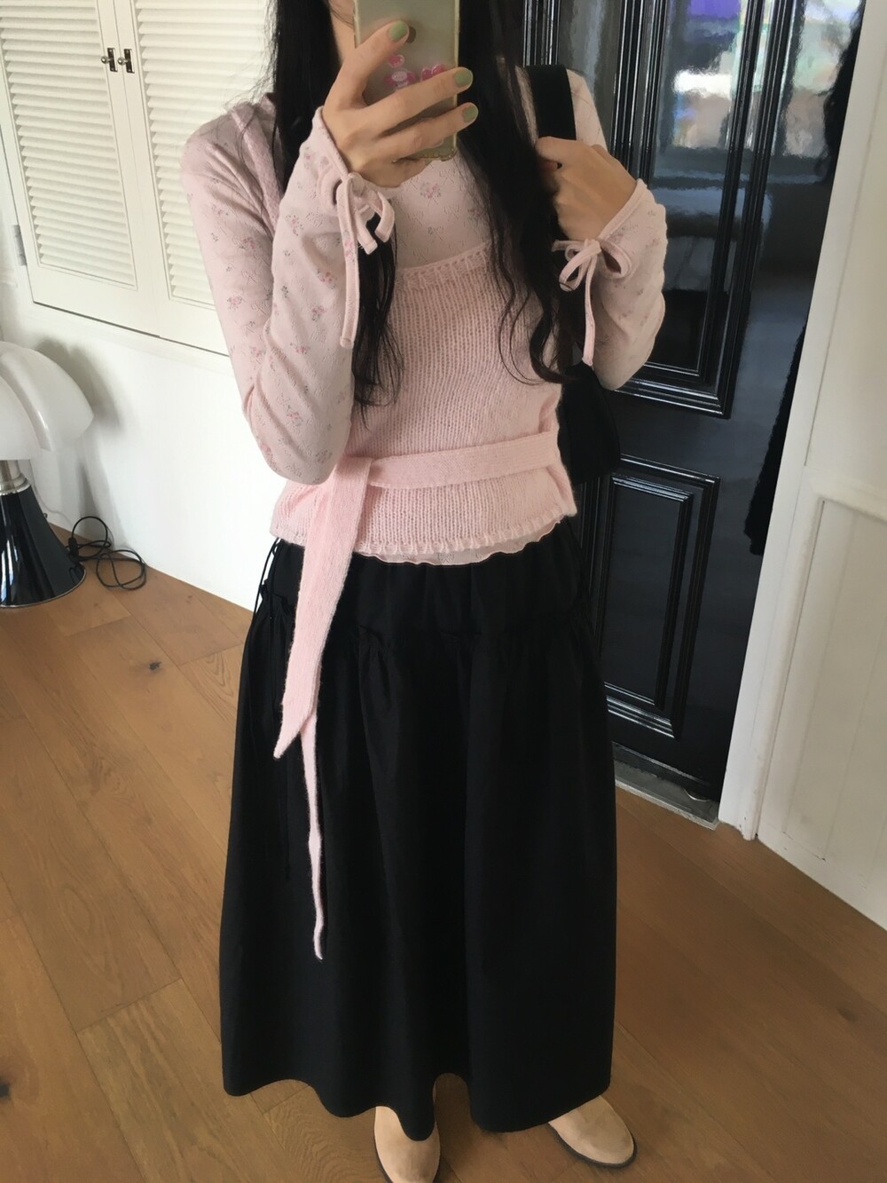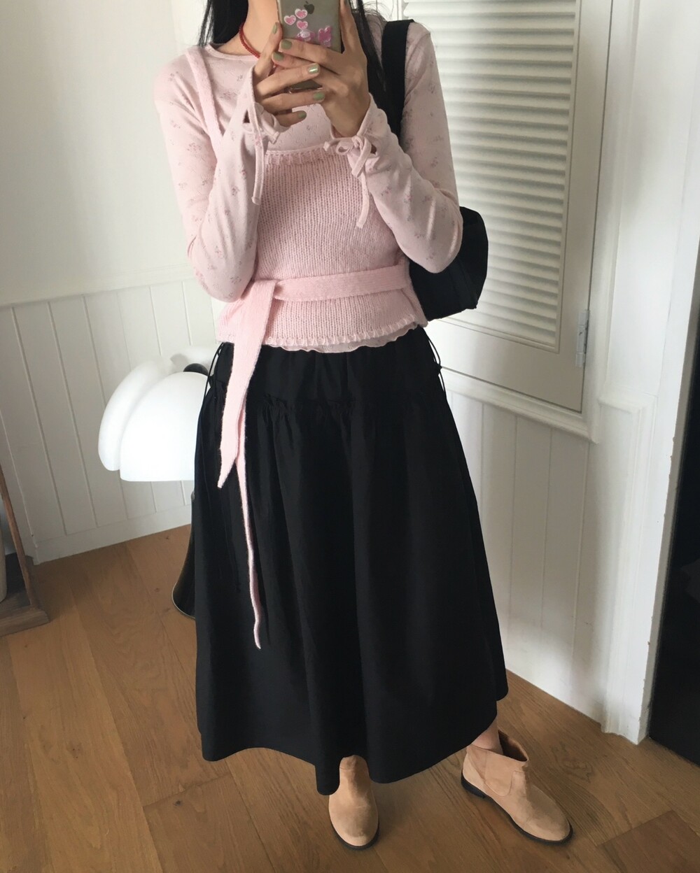 어깨는 얇은 두께감으로 여리함을 살리고, 허리의 타이 끈도 얇고 끝단을 날렵하게 했답니다 ㅎㅎ