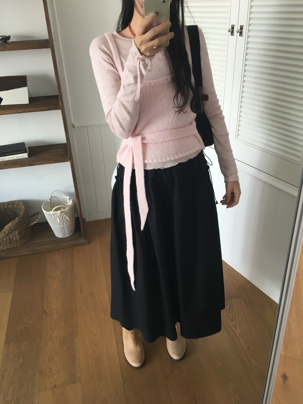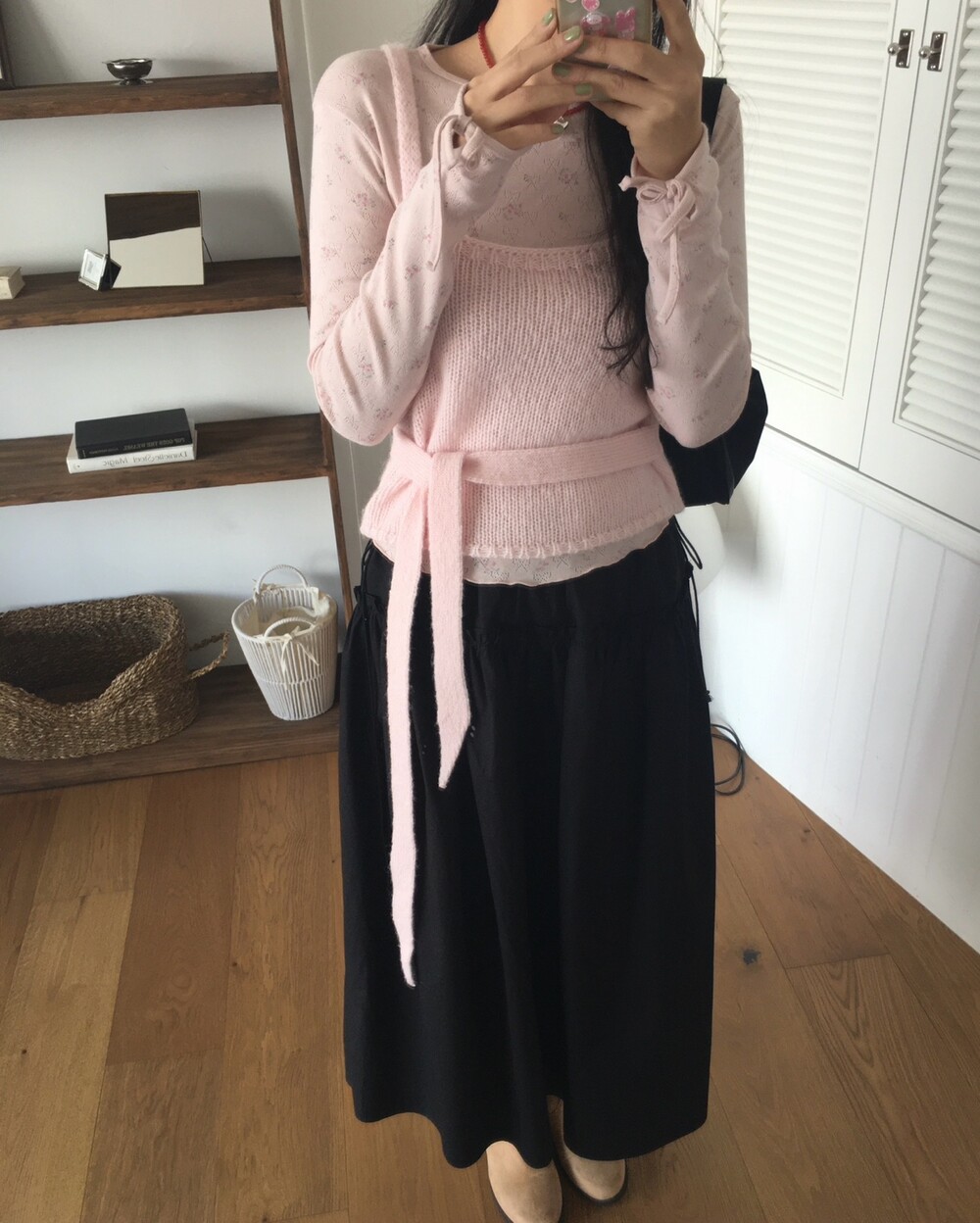 핏을 원하는 만큼 잡아 연출할 수 있고, 니트 소재로 안정감 있게 착용되면서도 부담 없이 다양한 아이템과 매치하기 좋아 활용도 높은 아이템이에요.
