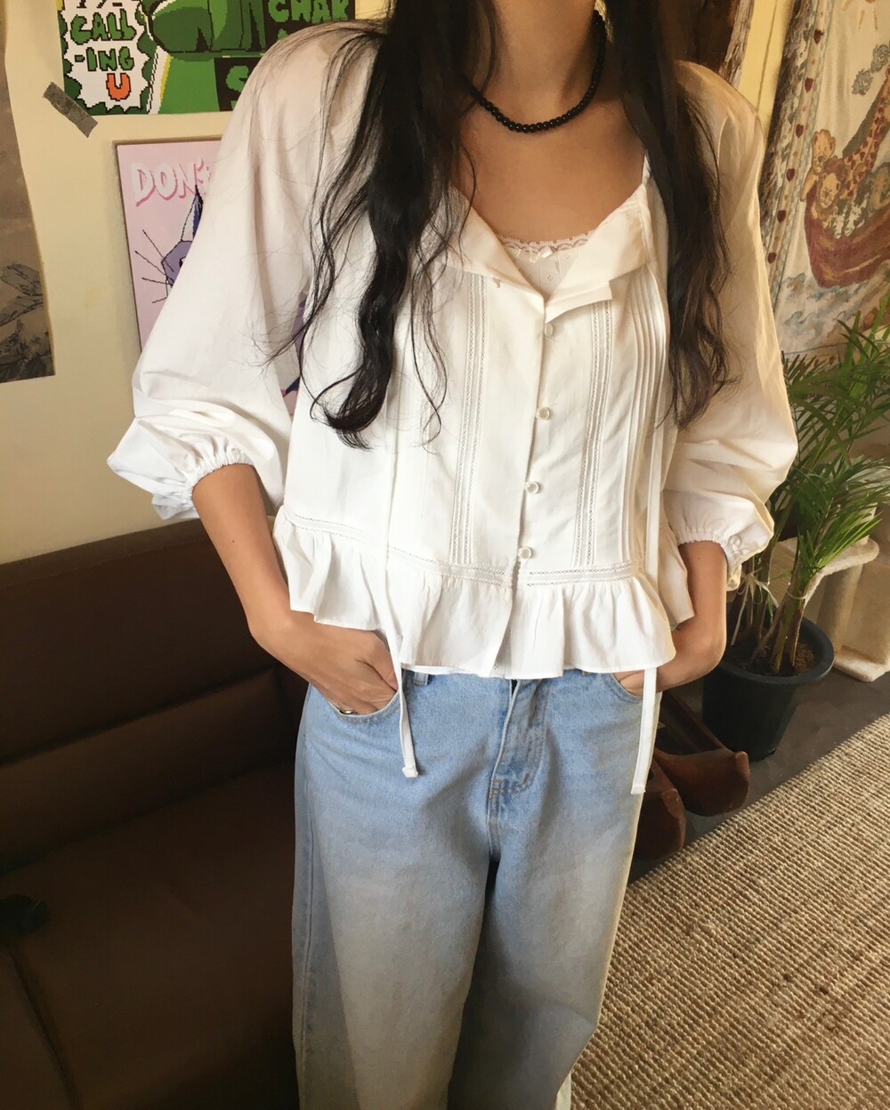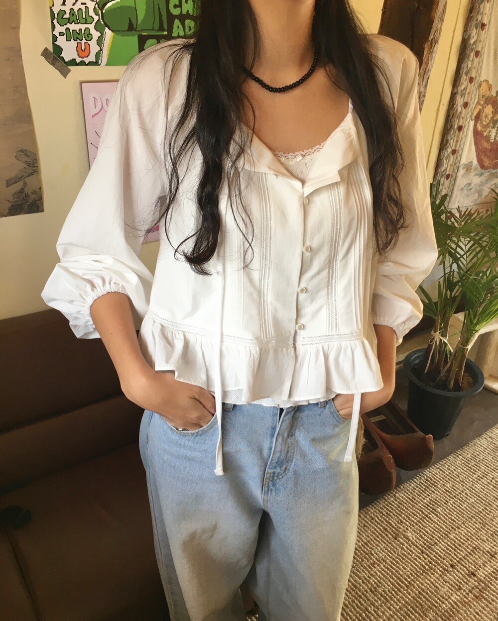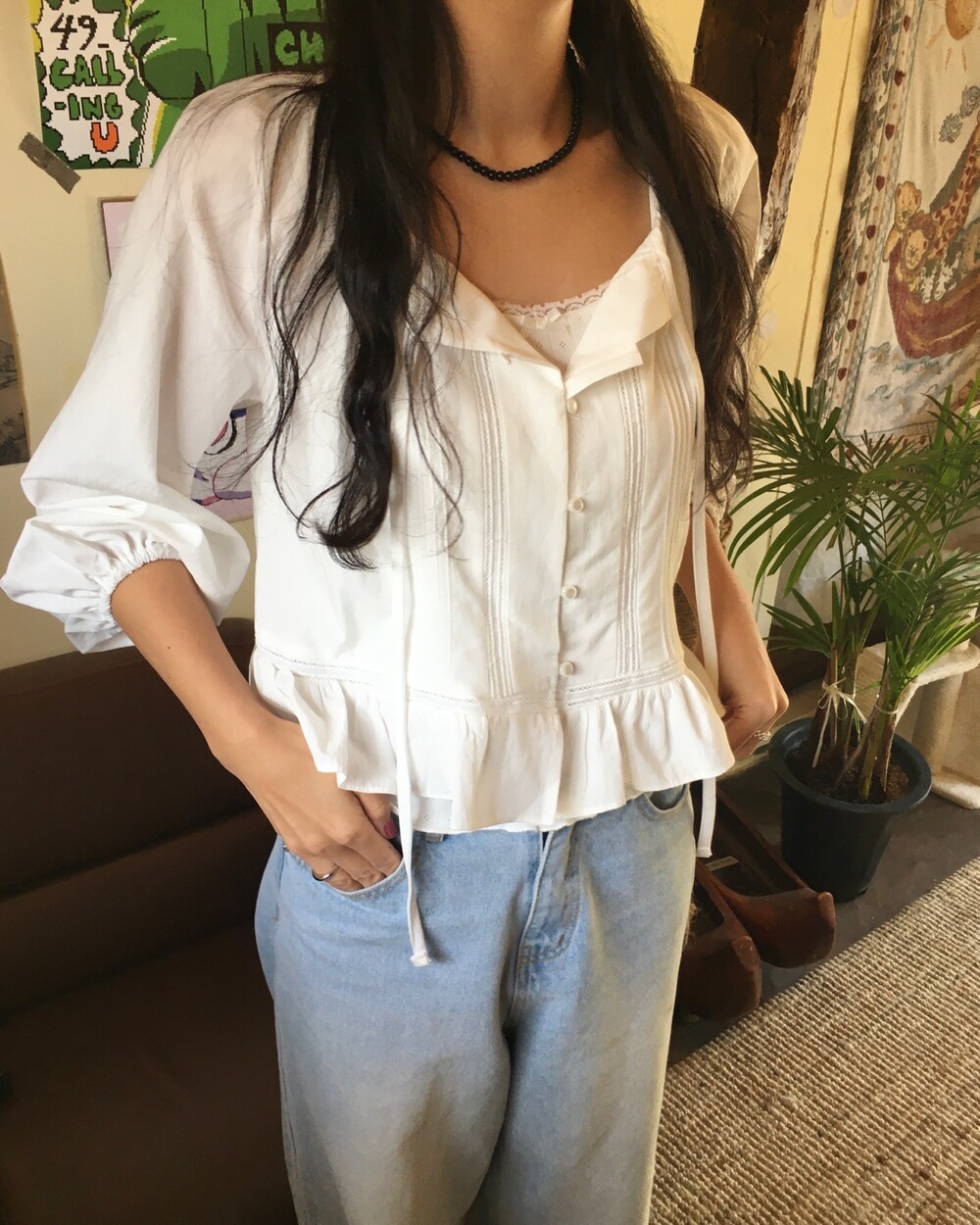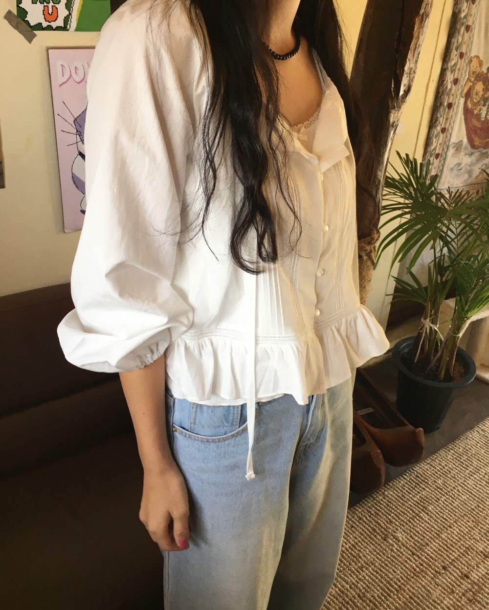 여리여리한 분위기를 연출해주는 프릴 블라우스 소개해드릴게요.