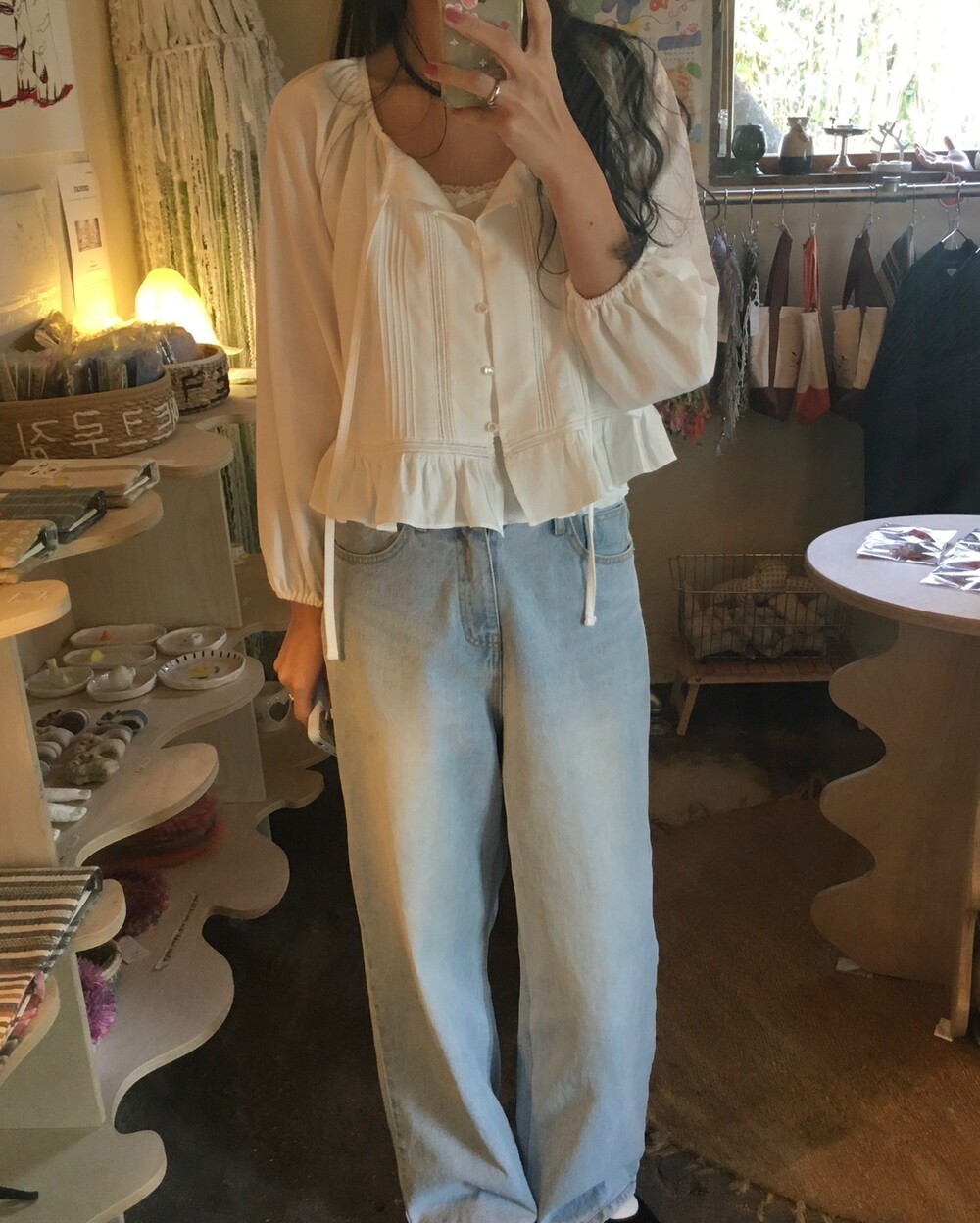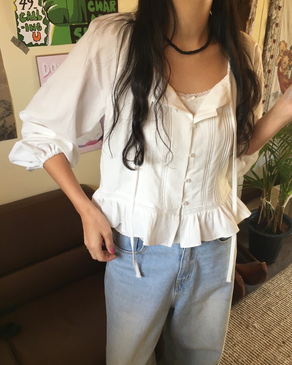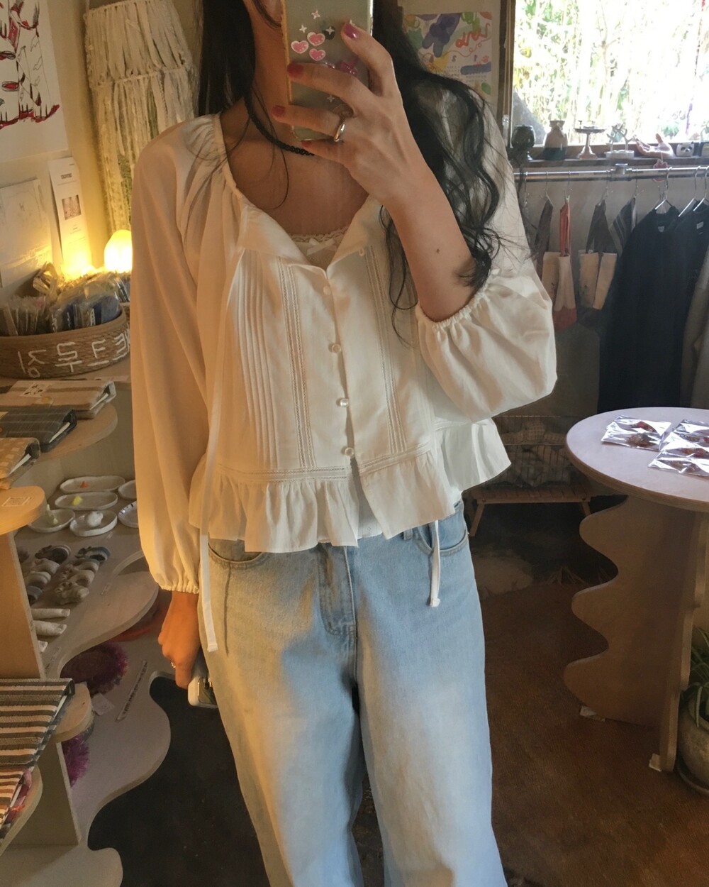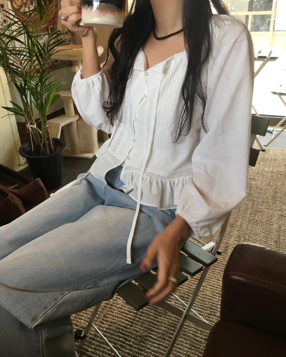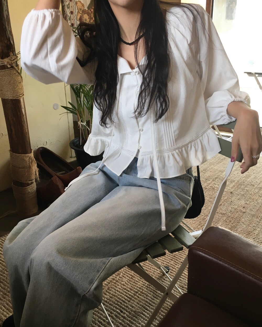 여리여리한 분위기를 연출해주는 프릴 블라우스 소개해드릴게요.