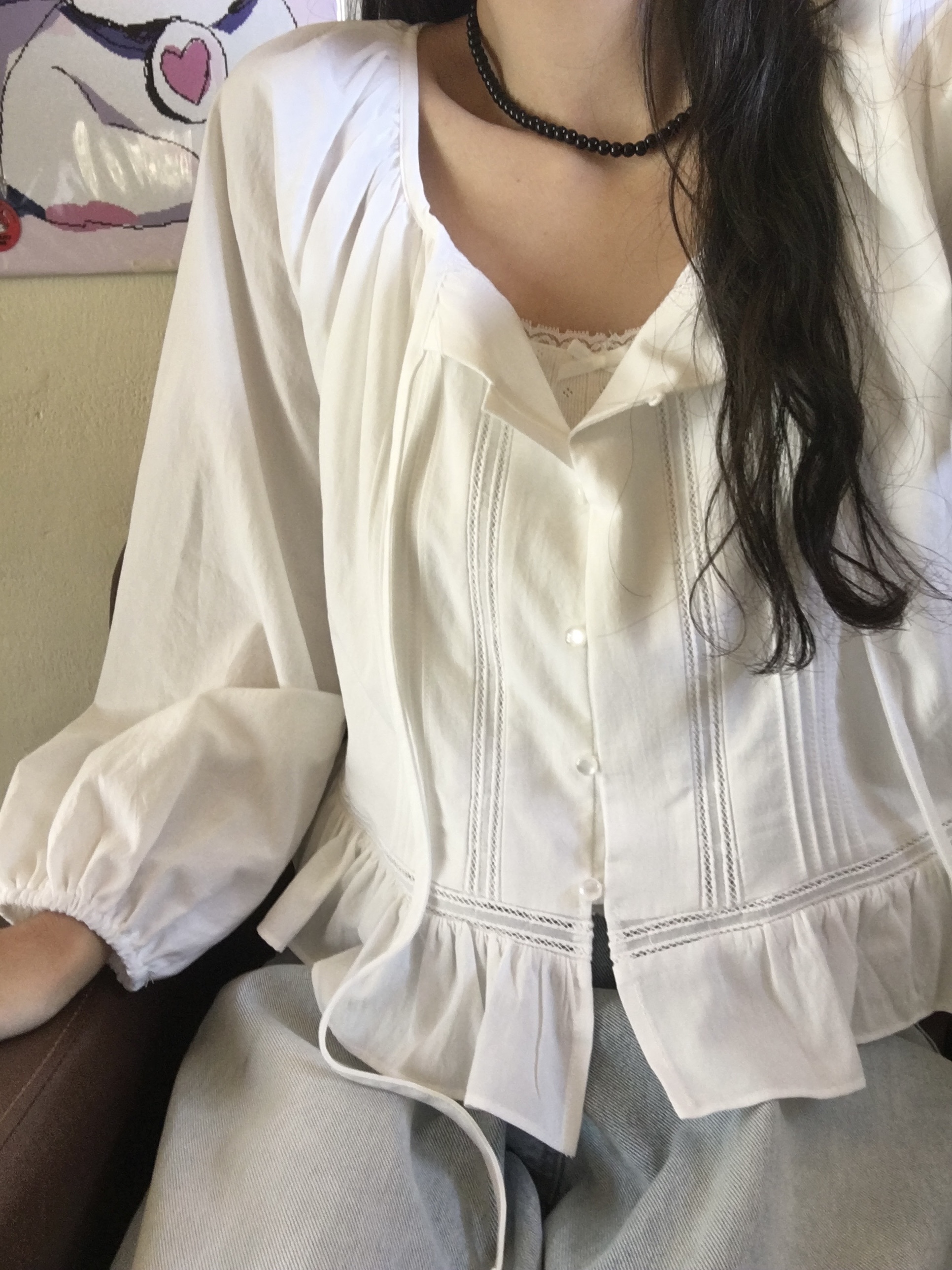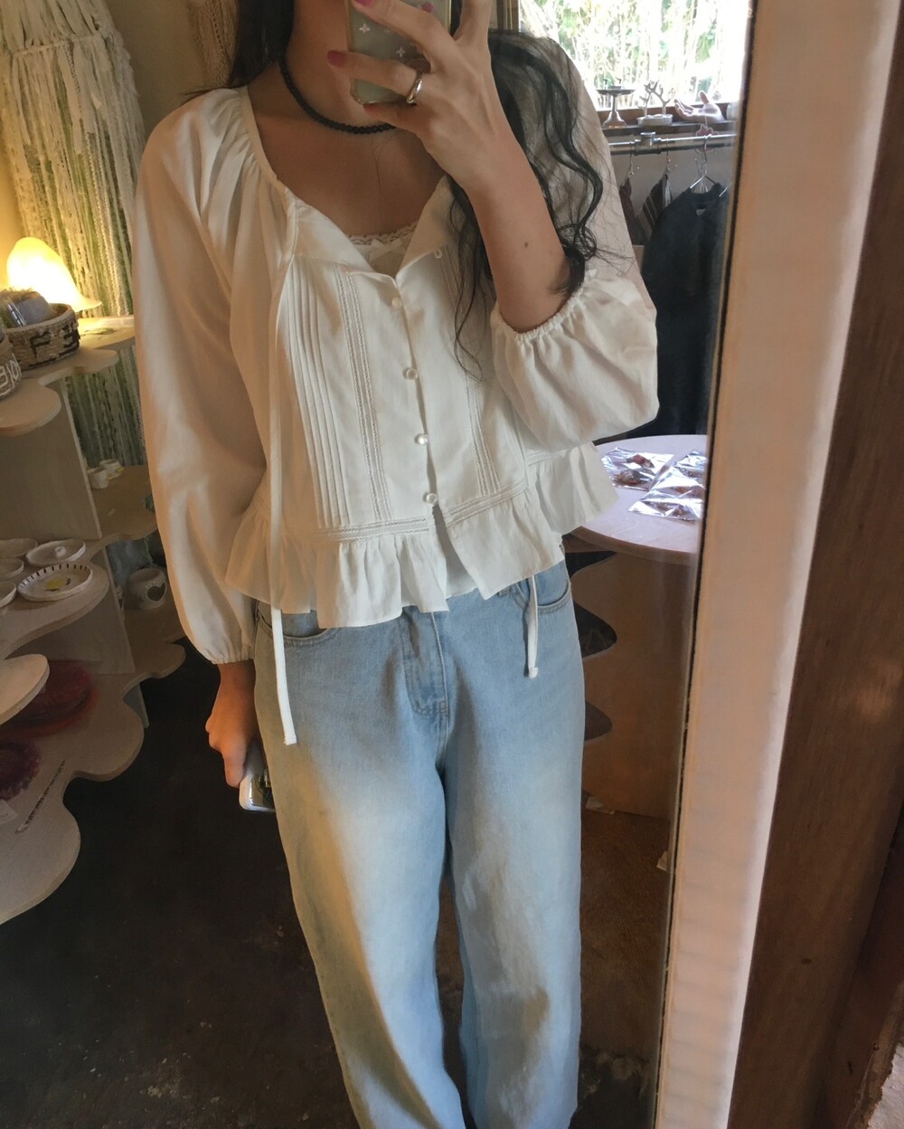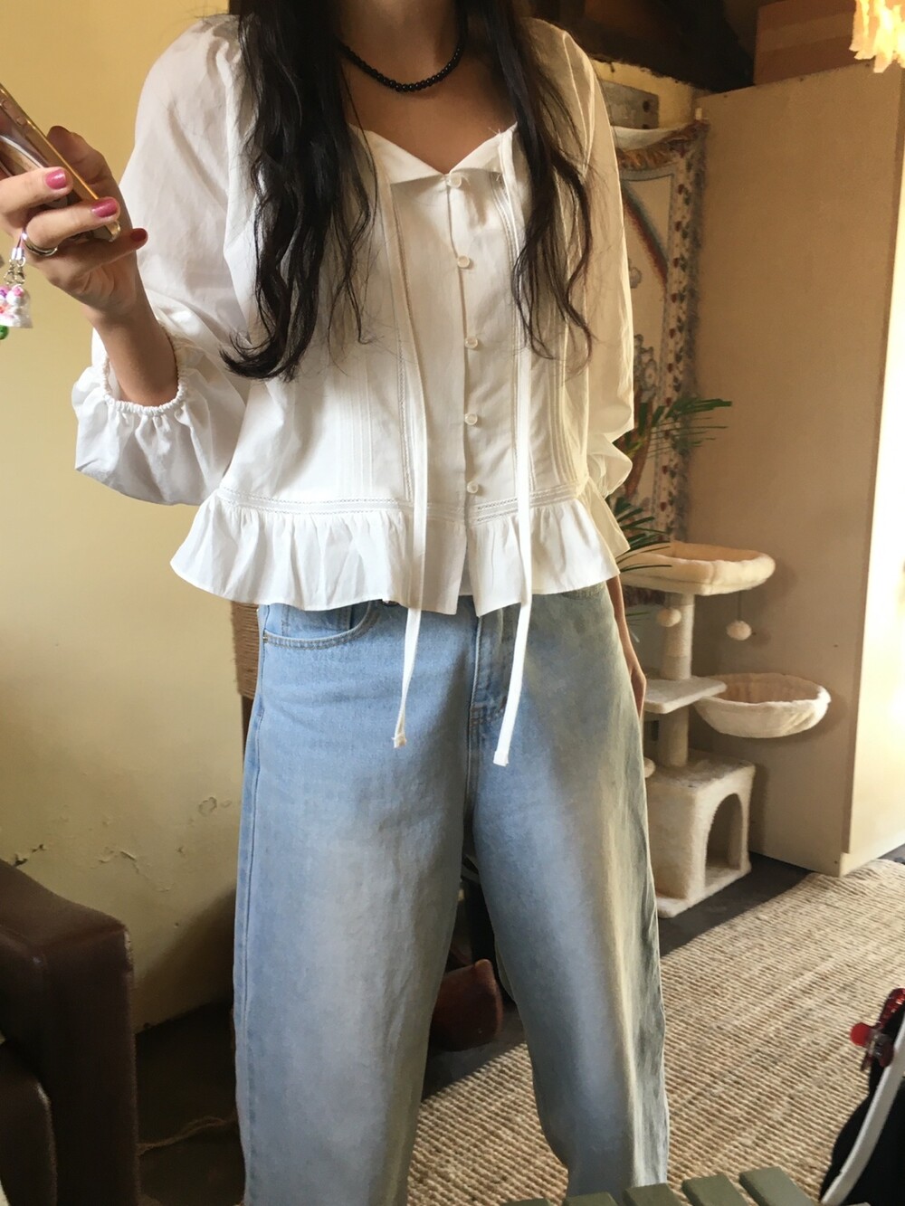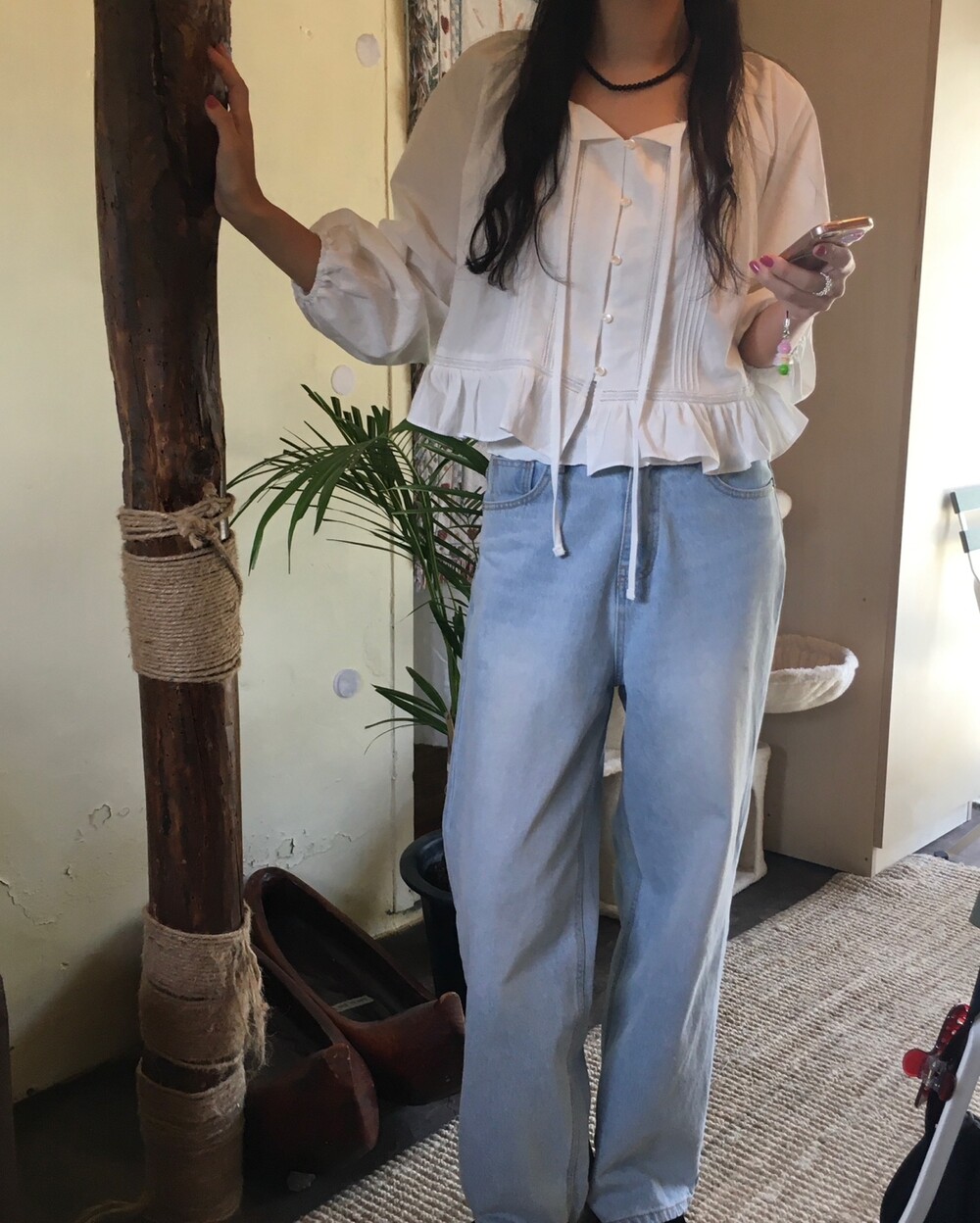 여리여리한 분위기를 연출해주는 프릴 블라우스 소개해드릴게요.