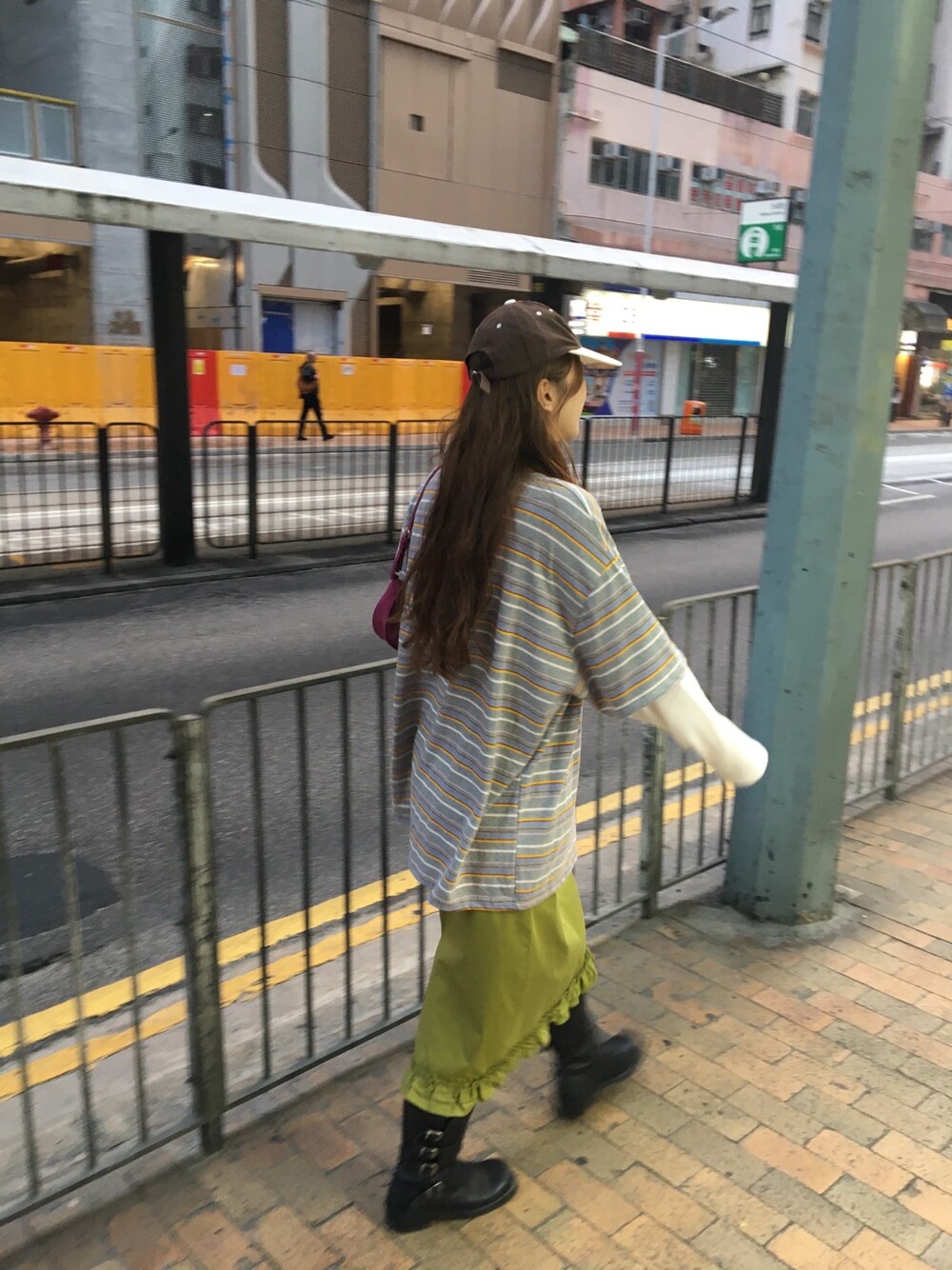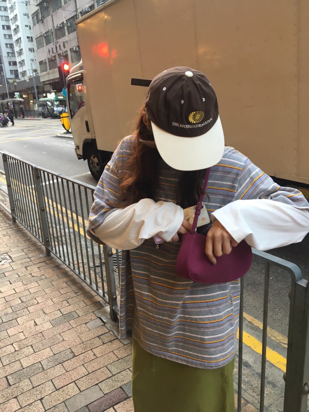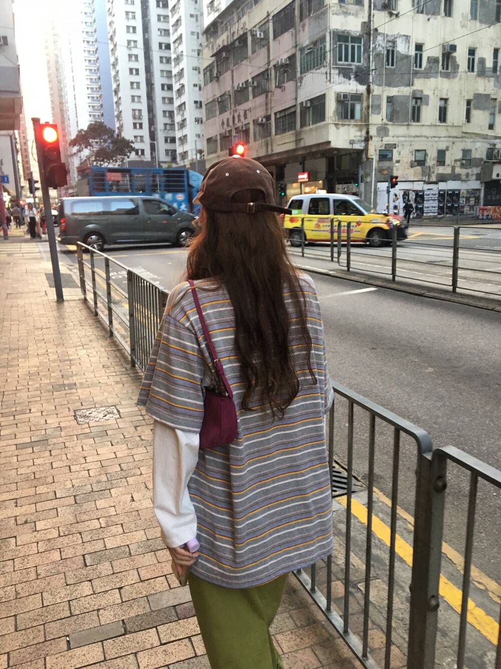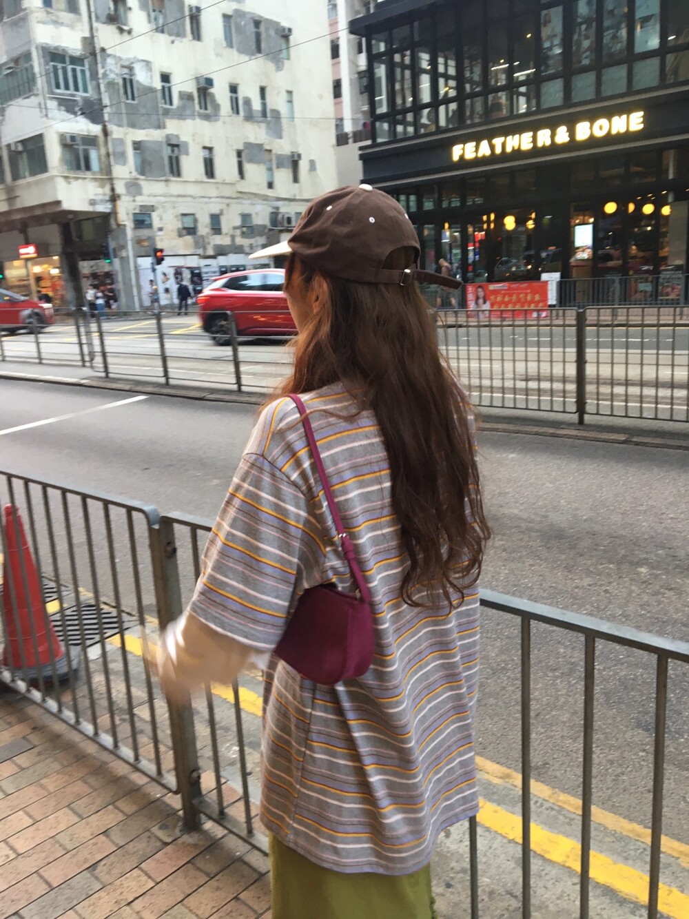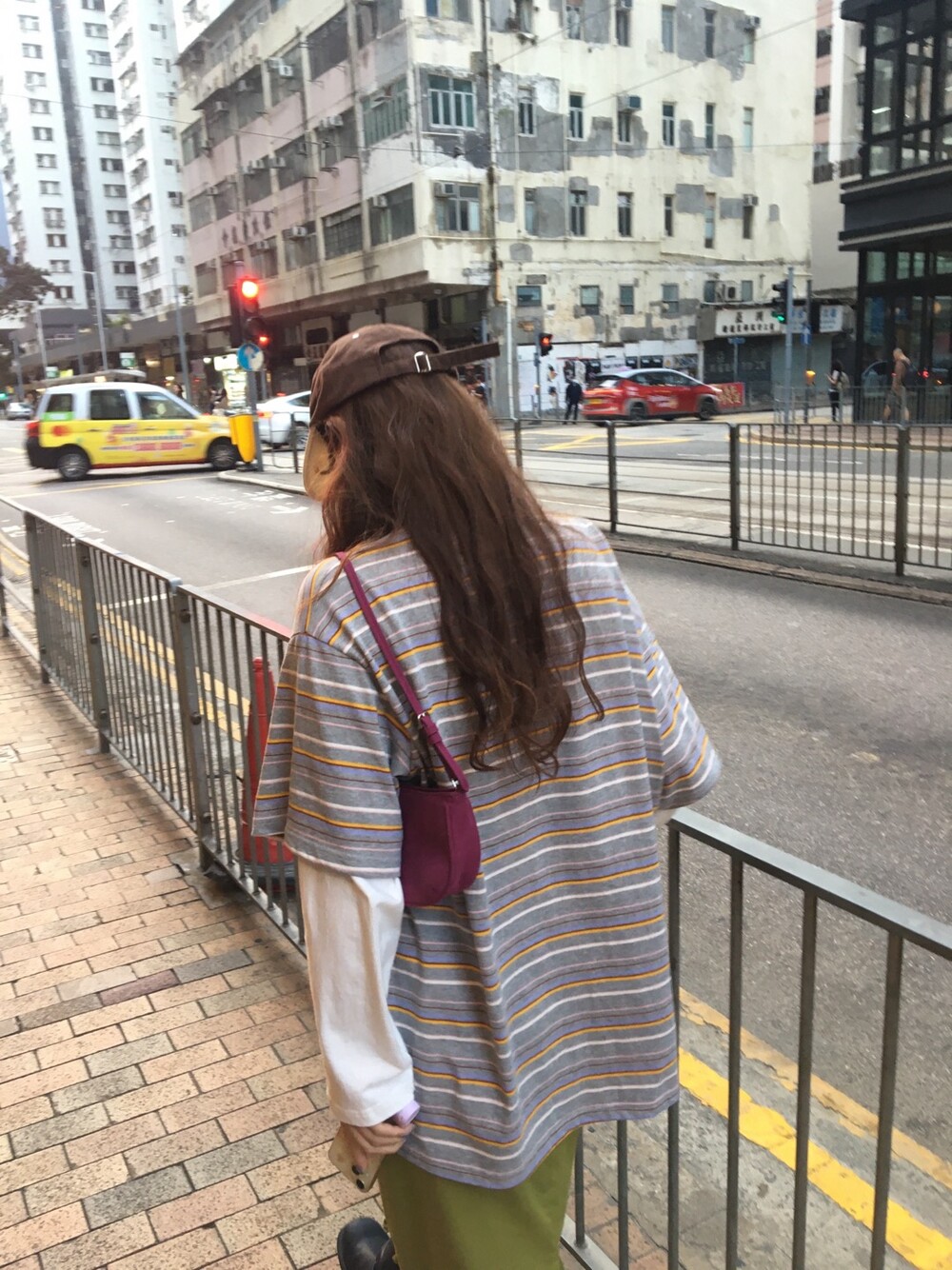 그레이 베이스에 옐로우와 퍼플 컬러 배색이 믹스된 스트라이프 패턴으로, 흔하지 않은 빈티지하면서도 캐주얼한 무드를 선사하는 아이템이에요.