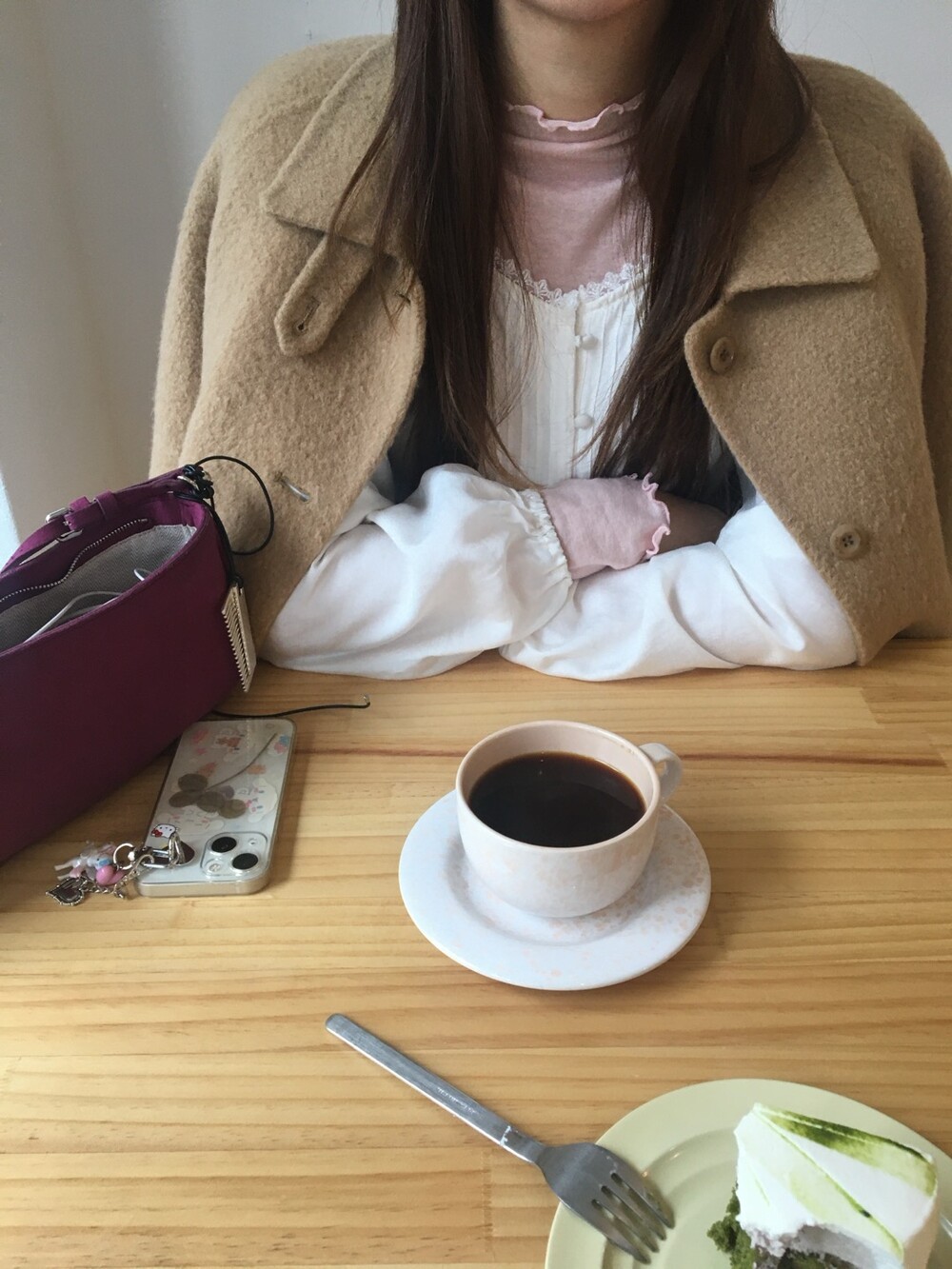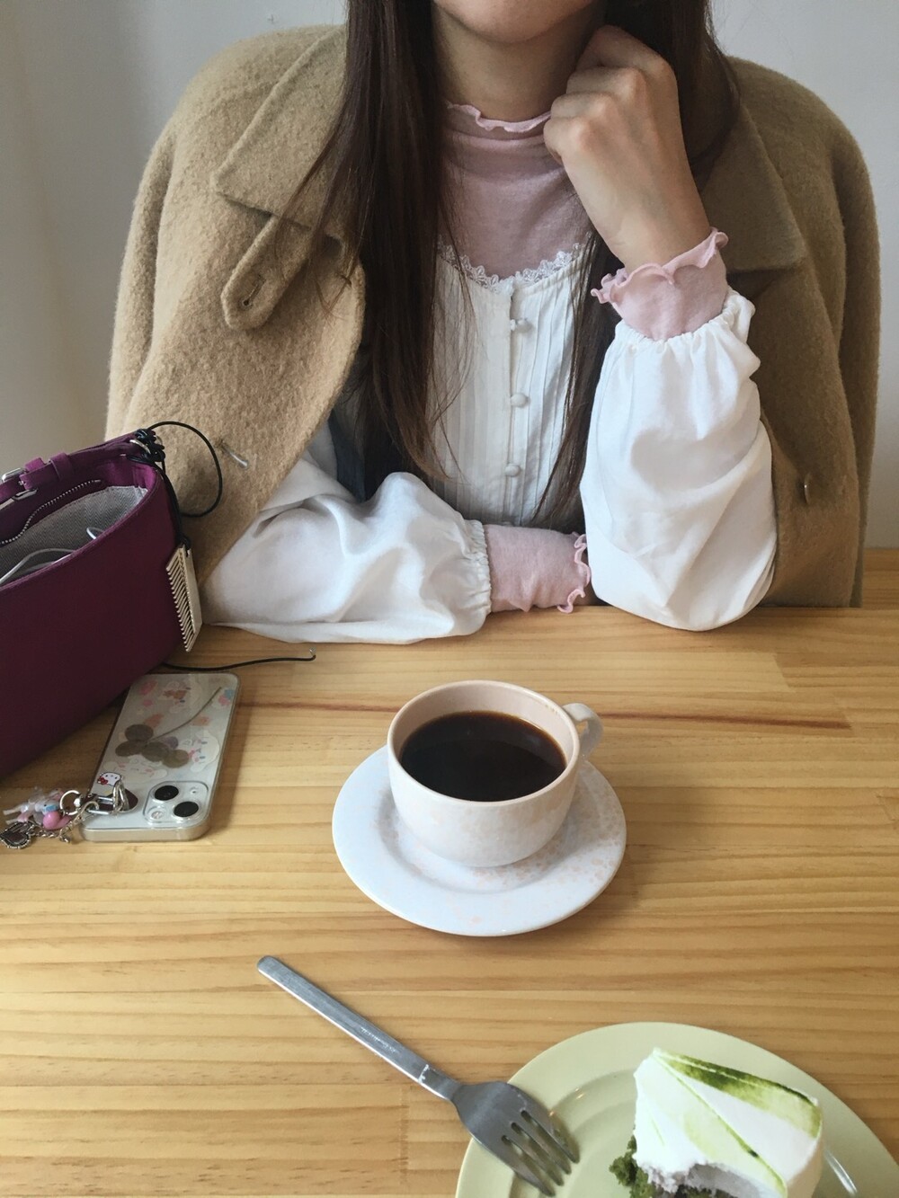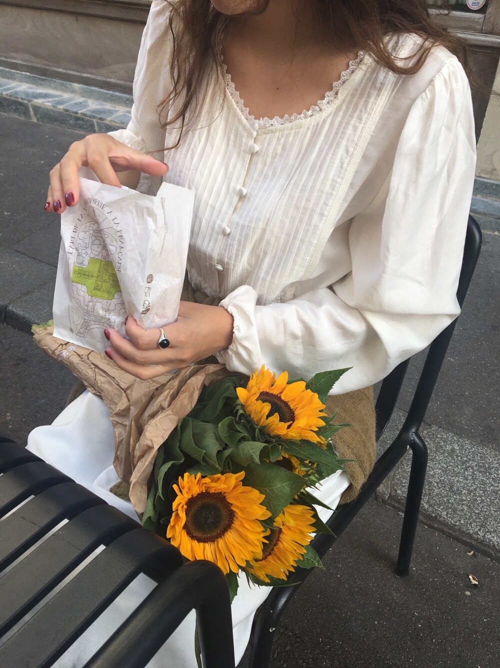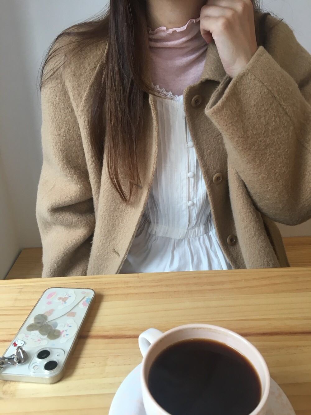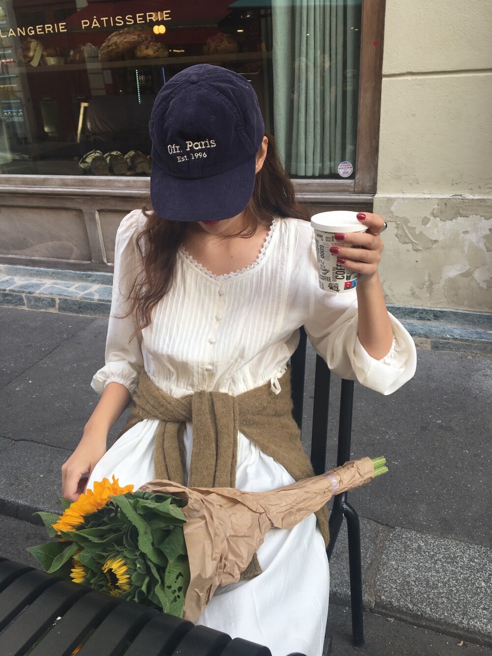 크리미한 아이보리 컬러로 따뜻해보이고, 하트넥라인으로 단독으로도 예쁘고 울폴라탑과 함께 하기에도 넥라인이 너무 예쁘답니다. 프론트 부분에 잘게 잡힌 핀턱 주름과, 싸개 단추 버튼으로 깔끔하게 처리했어요.