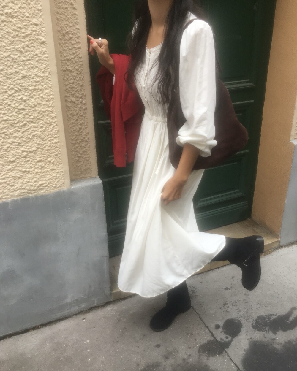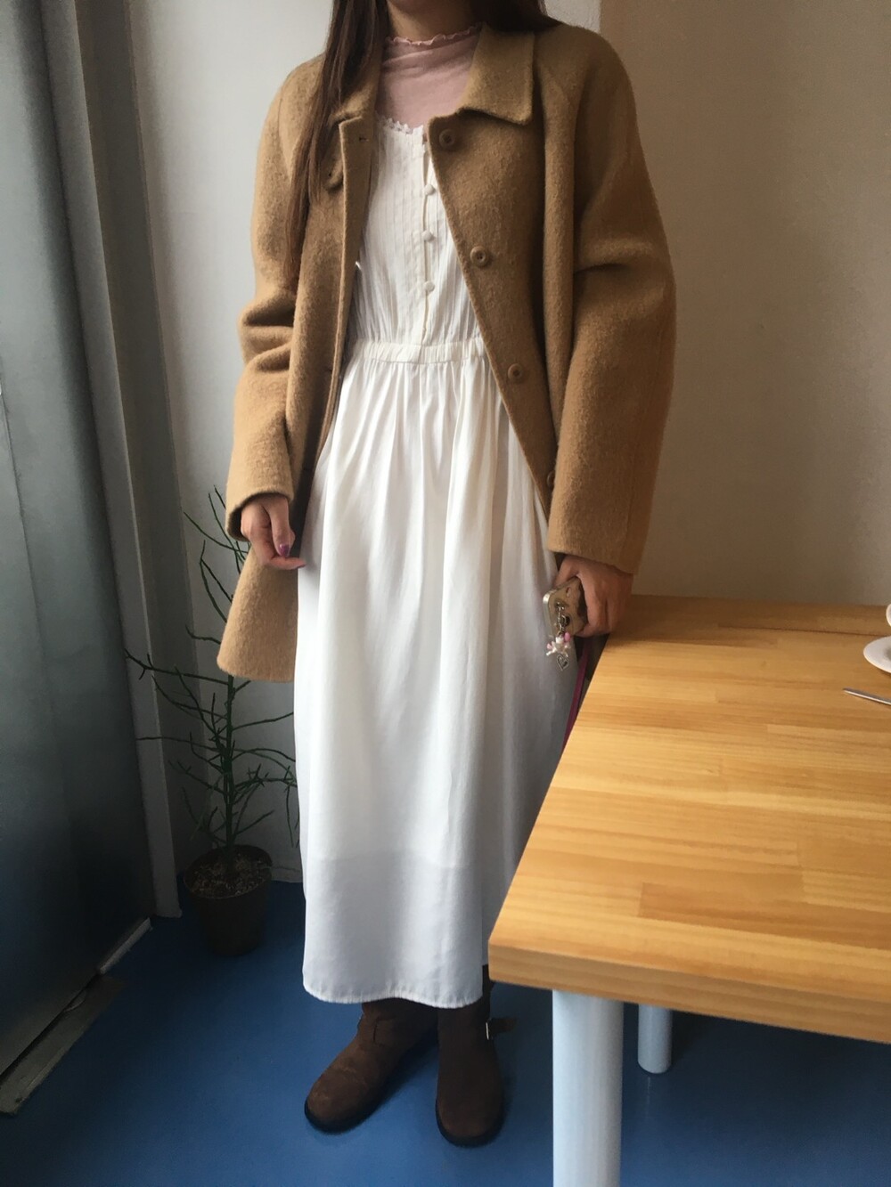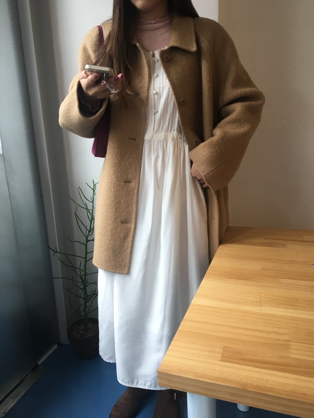 자연스럽게 떨어지는 핏감으로 여리여리 해보이고, 사이즈에 구애없이 44~66반까지 활용하기 좋구요, 임산부분들도 많이 여쭤보시는데! 봄에 판매했던 오트벨 원피스와 핏감이 동일해서 7~8개월 임산부 분들도 잘 착용했다는 후기도 많이 보내주셨어요! 한겨울철에는 스타킹 혹은 데님 팬츠와도 레이어드 하기 좋아서 적극 추천드려봅니다!