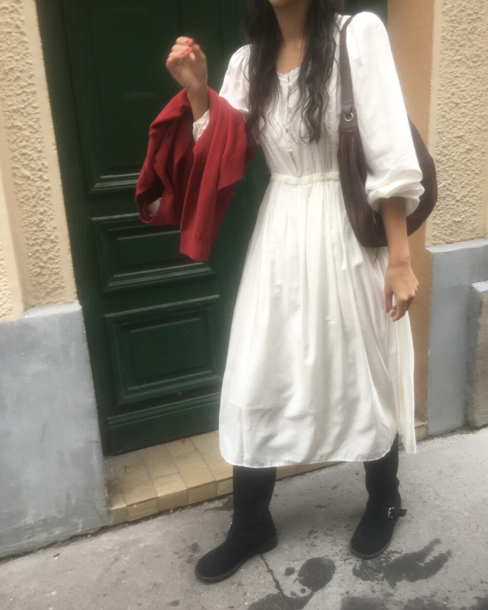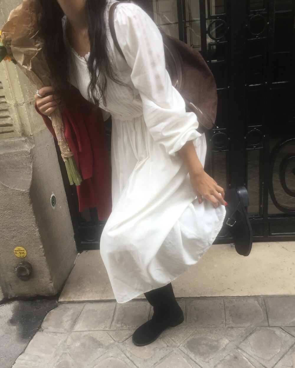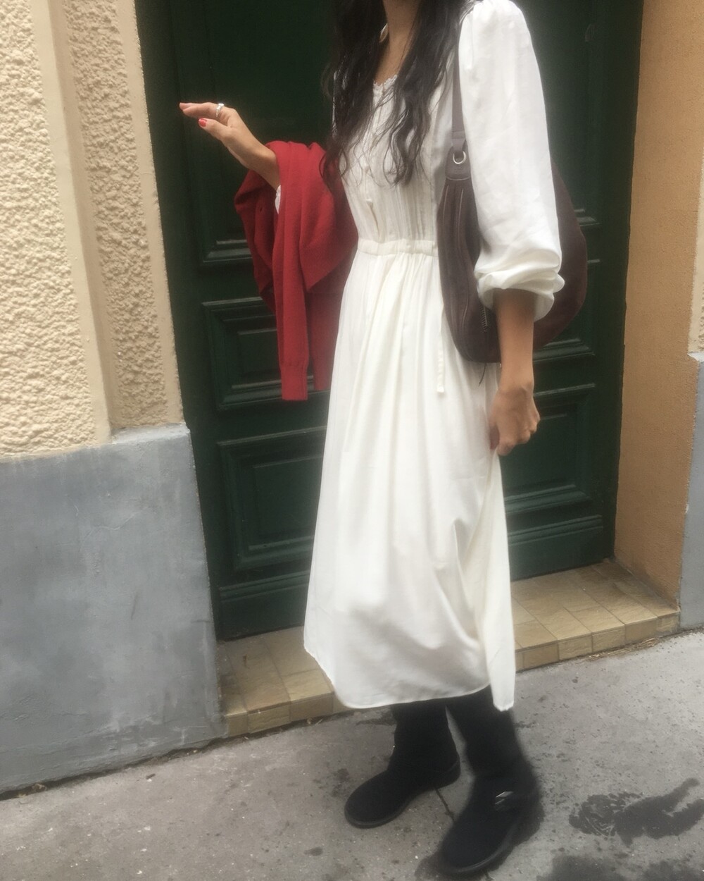 자연스럽게 떨어지는 핏감으로 여리여리 해보이고, 사이즈에 구애없이 44~66반까지 활용하기 좋구요, 임산부분들도 많이 여쭤보시는데! 봄에 판매했던 오트벨 원피스와 핏감이 동일해서 7~8개월 임산부 분들도 잘 착용했다는 후기도 많이 보내주셨어요! 한겨울철에는 스타킹 혹은 데님 팬츠와도 레이어드 하기 좋아서 적극 추천드려봅니다!