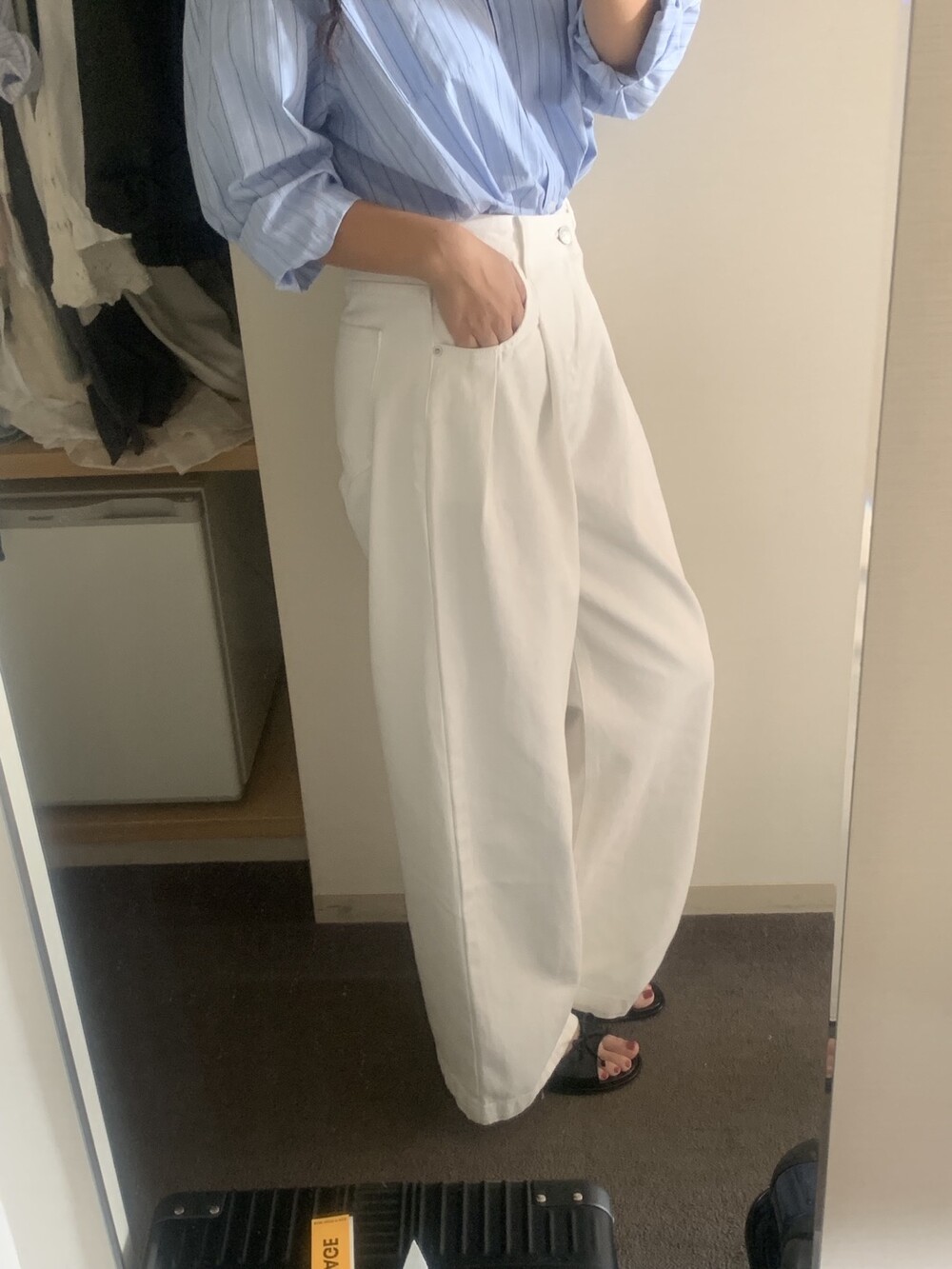 S 총 107 허리 34 엉덩이 55 밑위 33 허벅지 34 (26size 권장)
