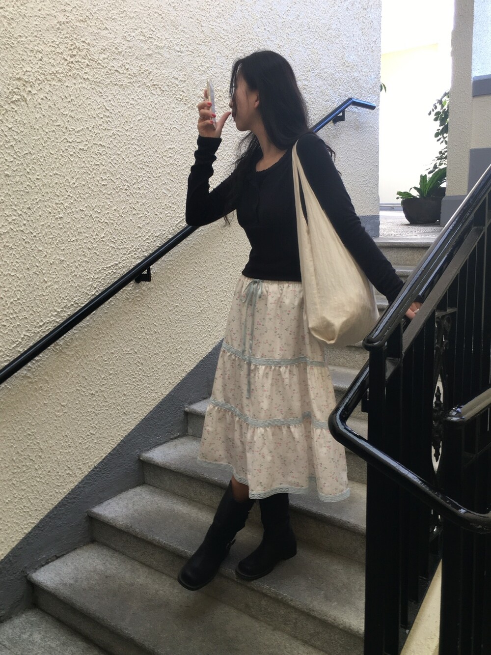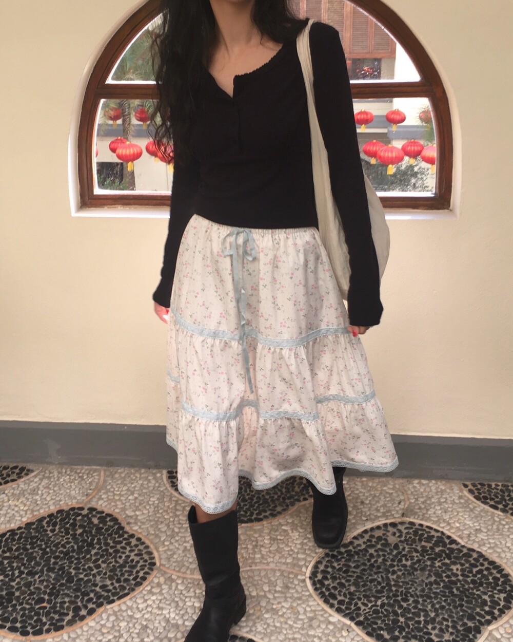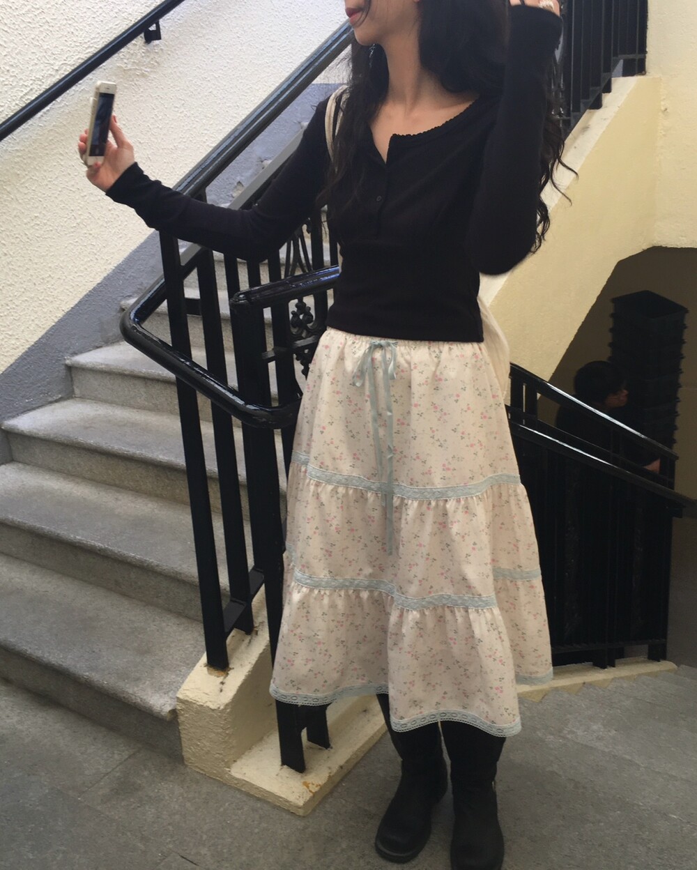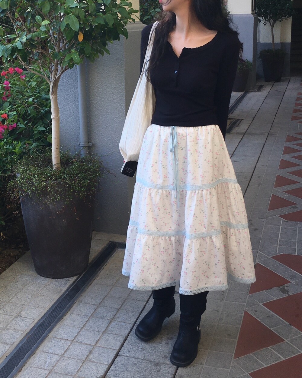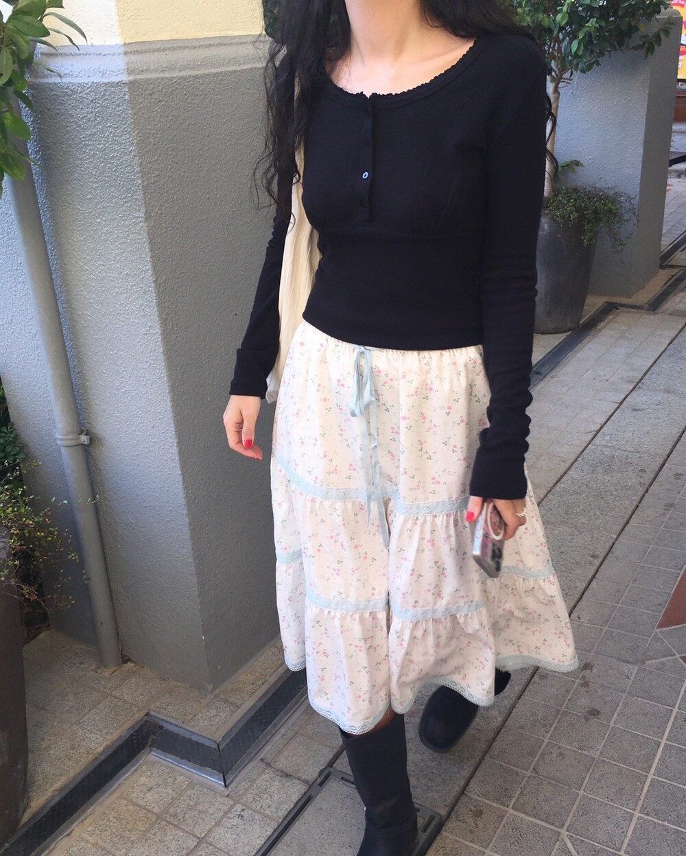 바스트 아래 셔링과 허리 절개 라인이 더해져 상체 라인을 정돈해주면서도 과하게 타이트하지 않아 부담 없이 착용 가능해요.
