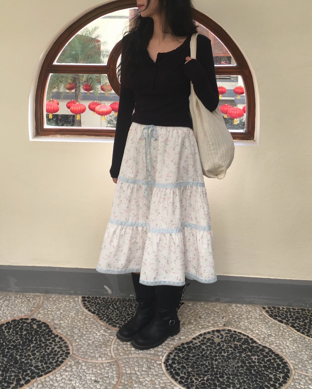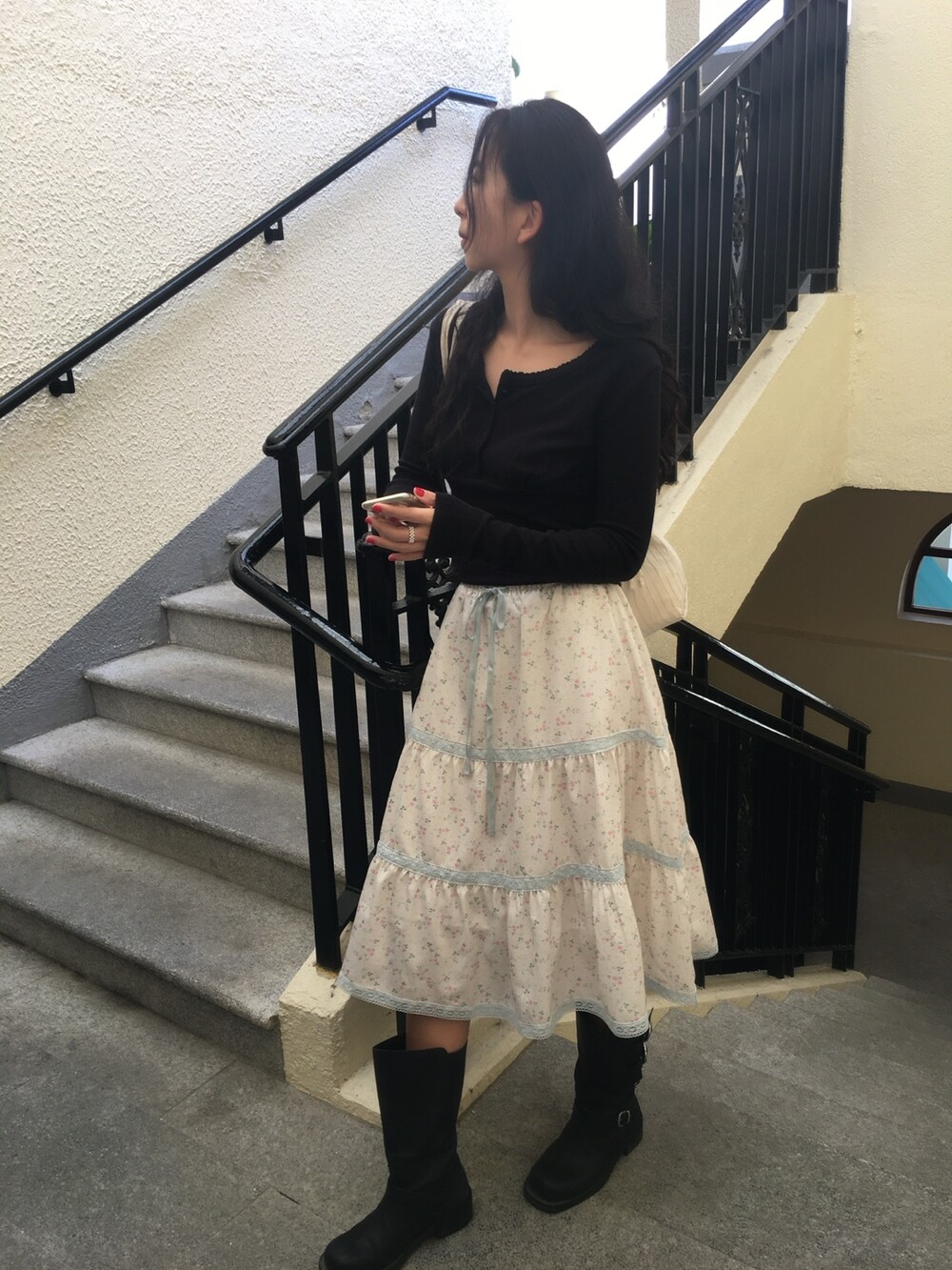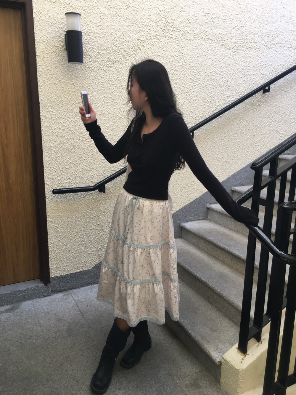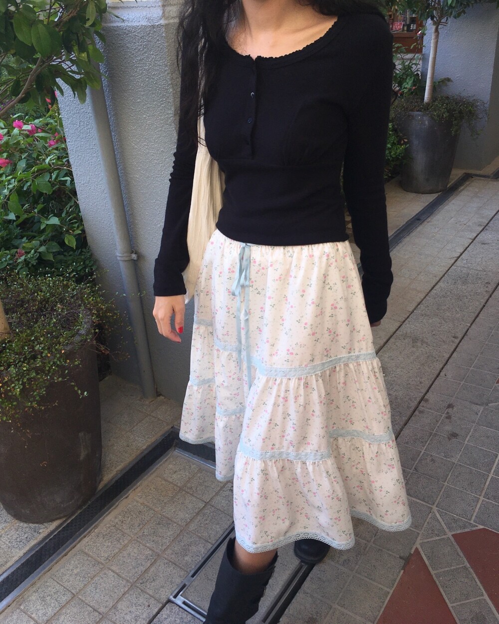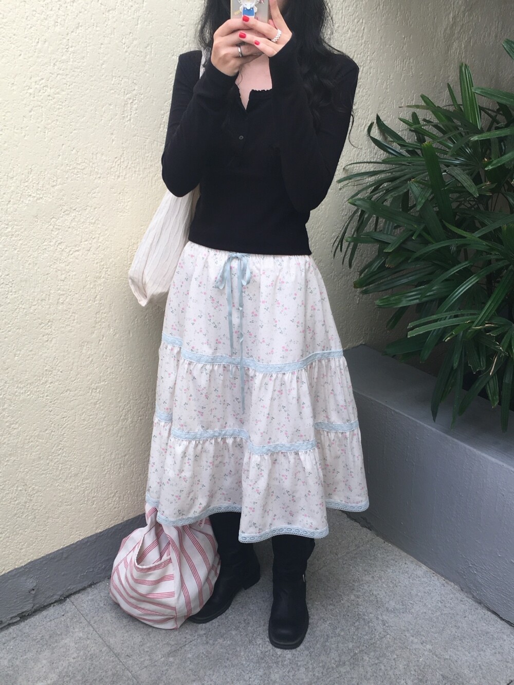 바스트 아래 셔링과 허리 절개 라인이 더해져 상체 라인을 정돈해주면서도 과하게 타이트하지 않아 부담 없이 착용 가능해요.