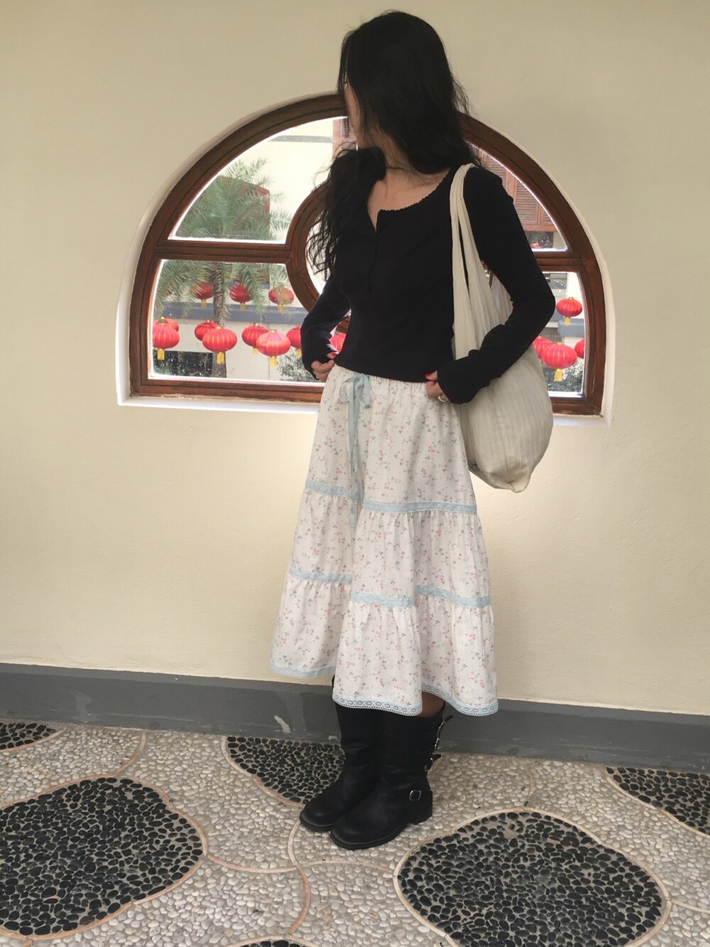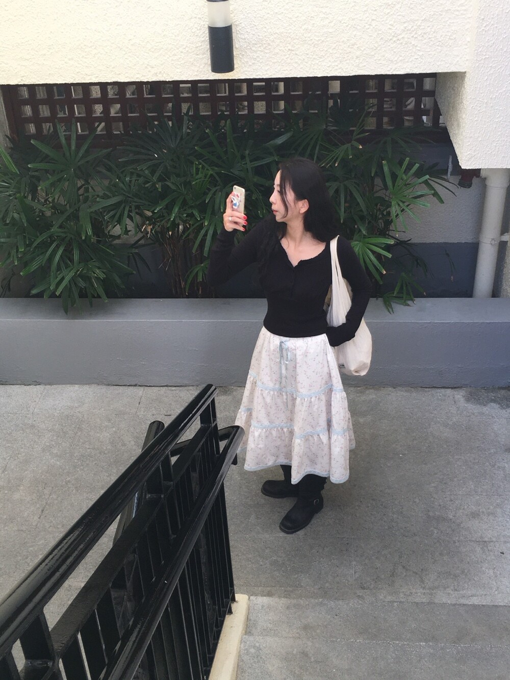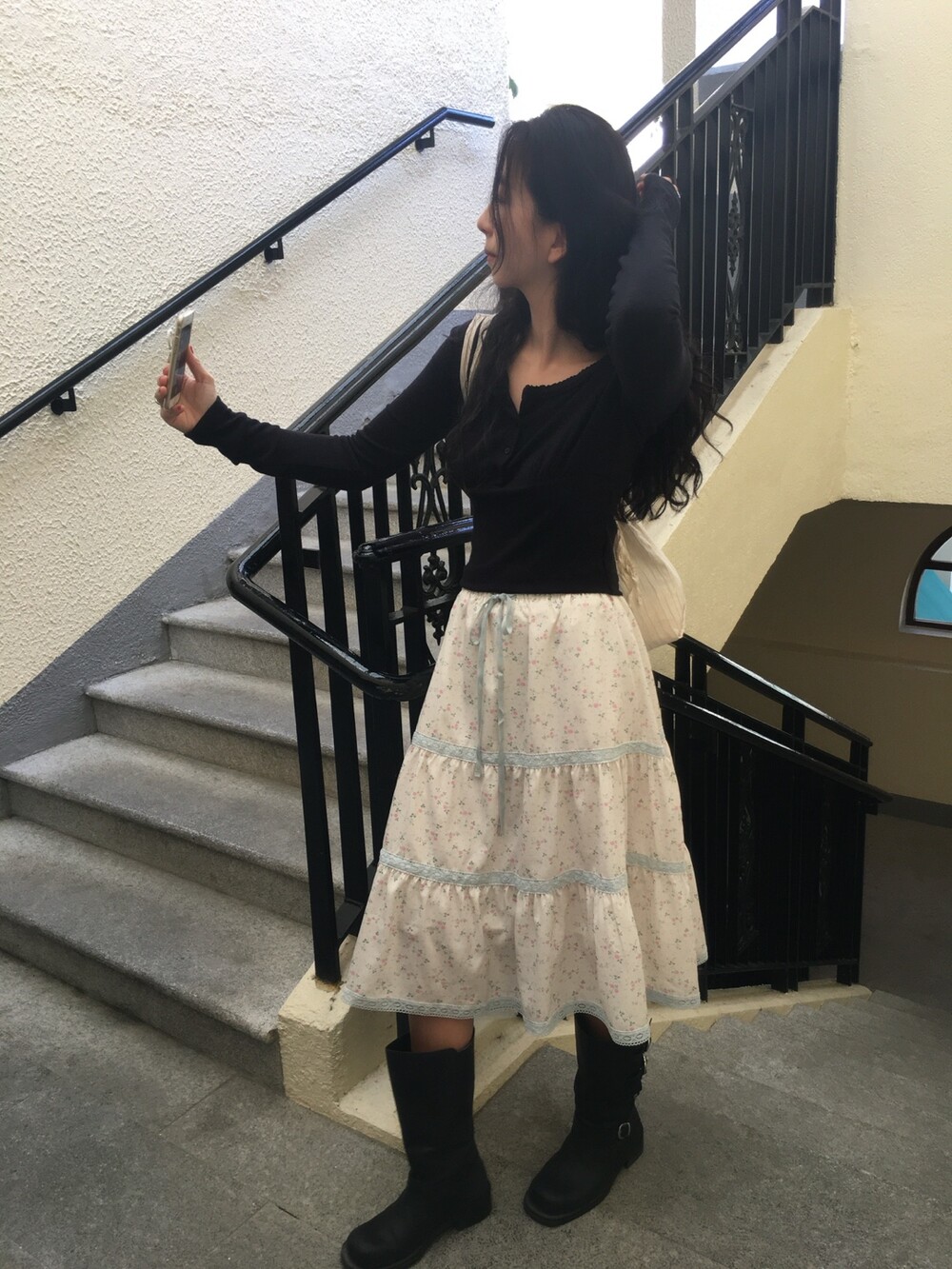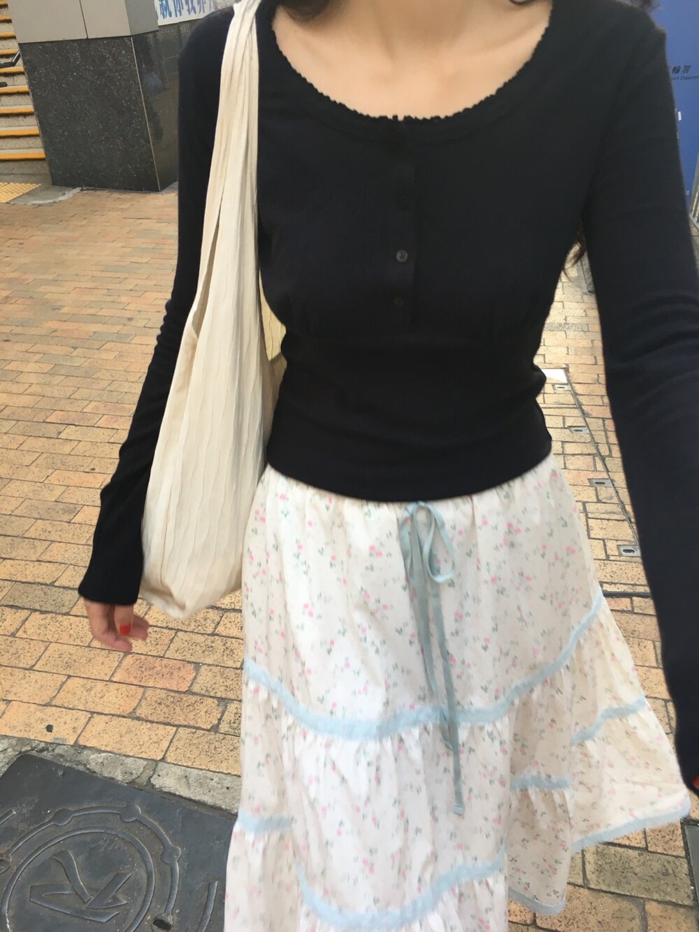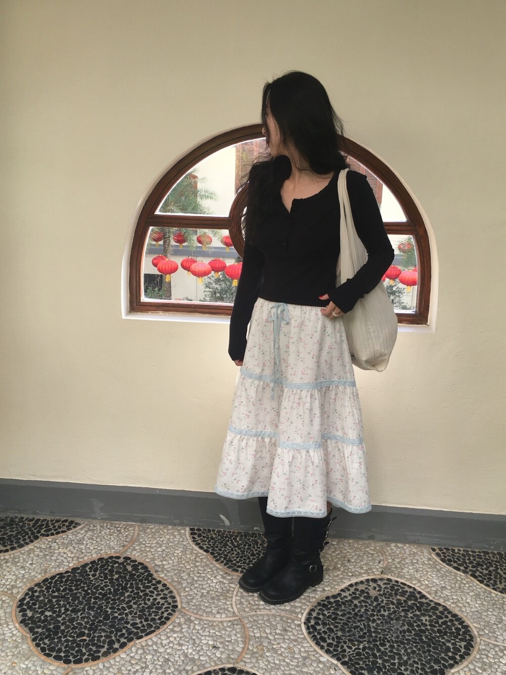 바스트 아래 셔링과 허리 절개 라인이 더해져 상체 라인을 정돈해주면서도 과하게 타이트하지 않아 부담 없이 착용 가능해요.