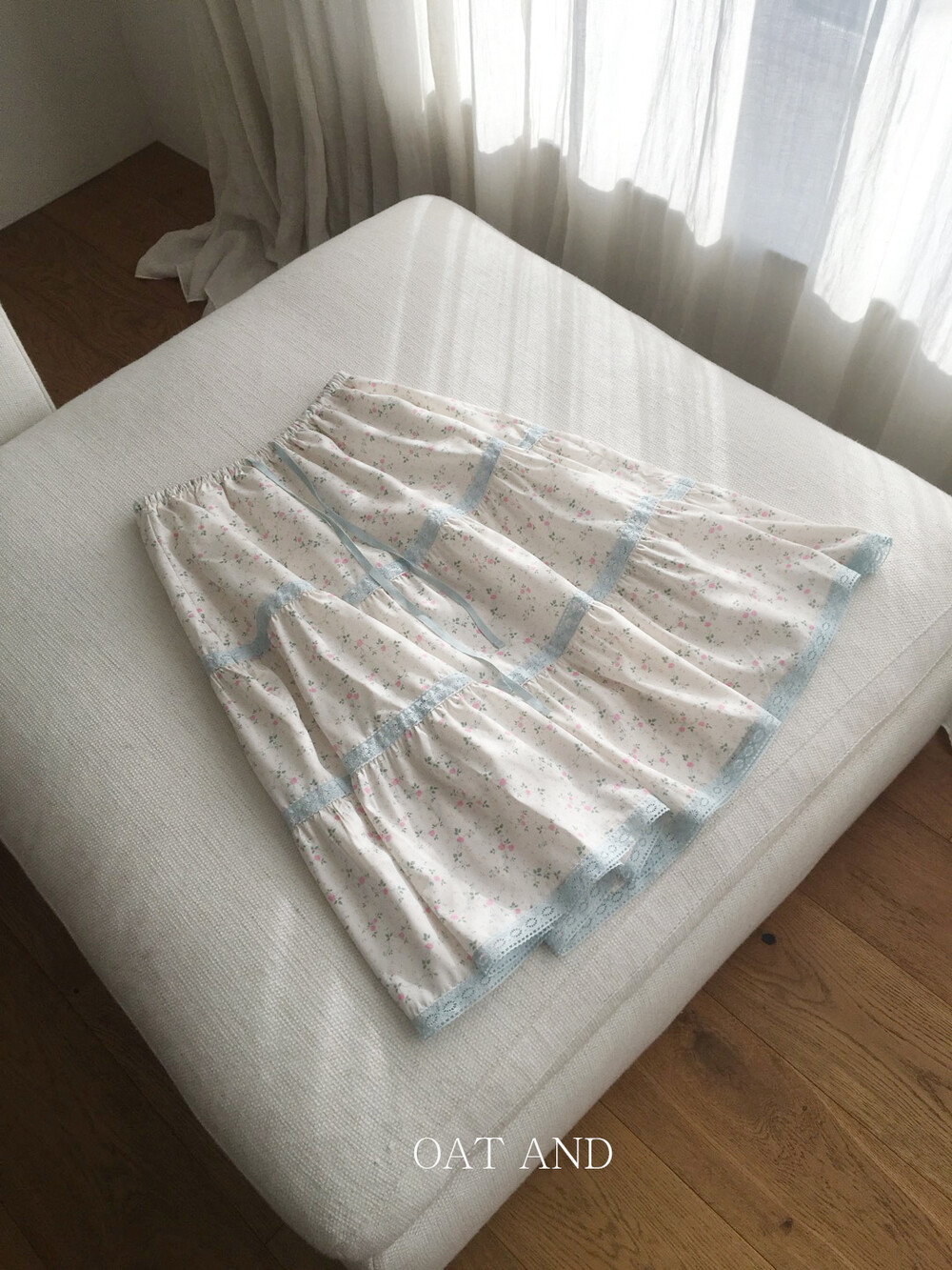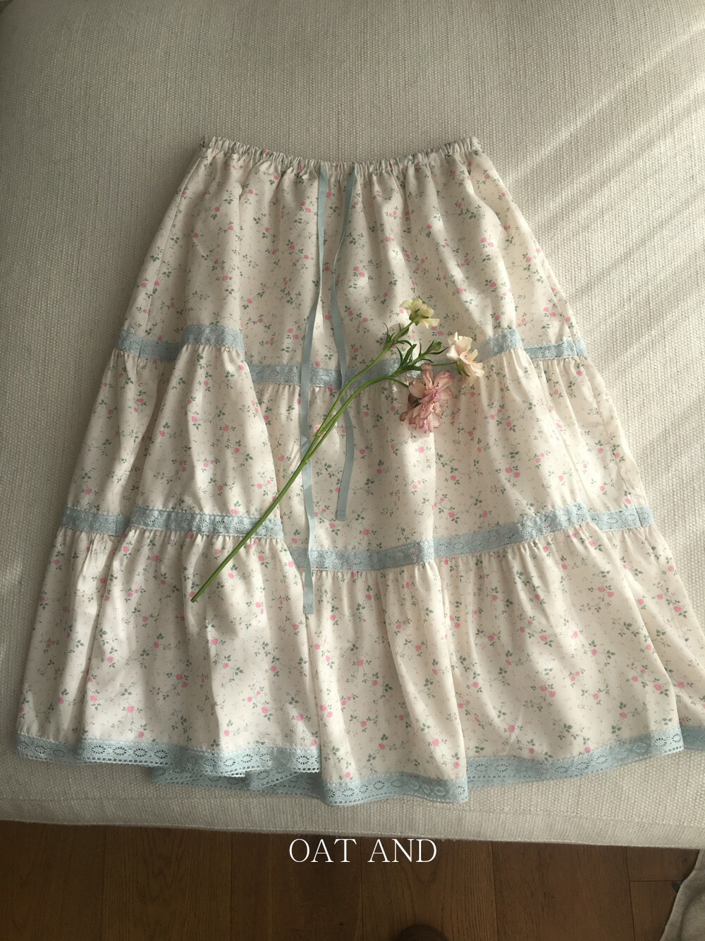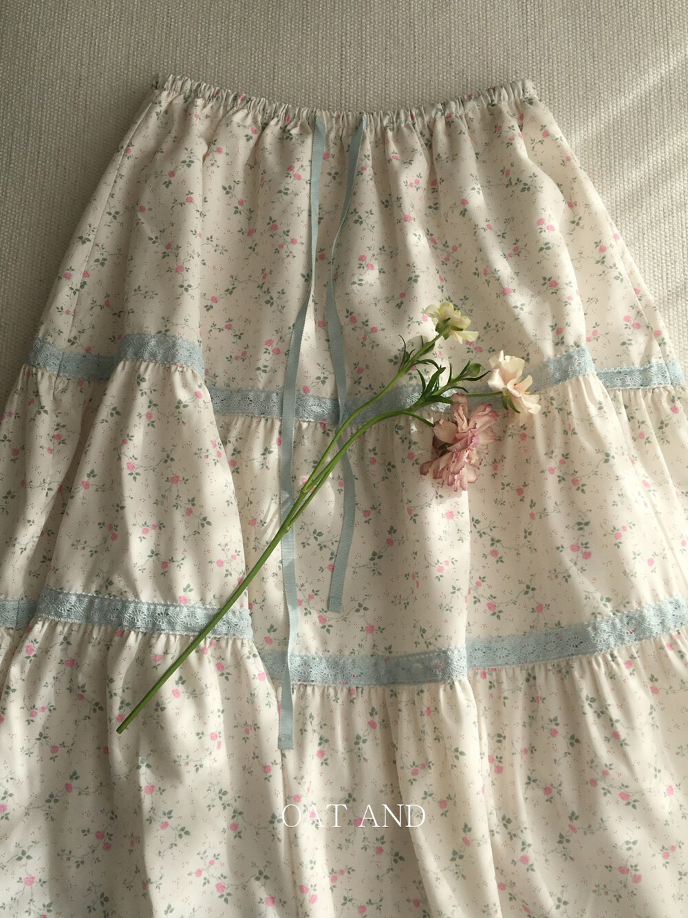 여리한 플라워 패턴과 레이스 디테일이 돋보이는 파우더 플라워 스커트 소개드려요 :)