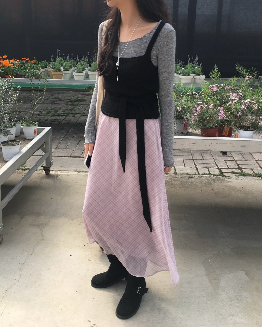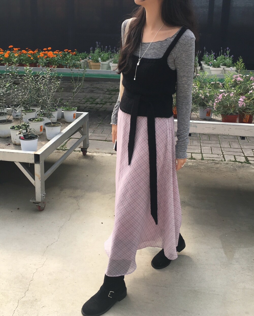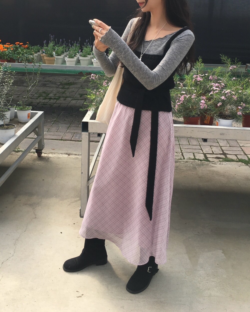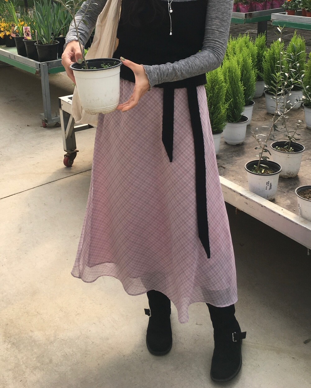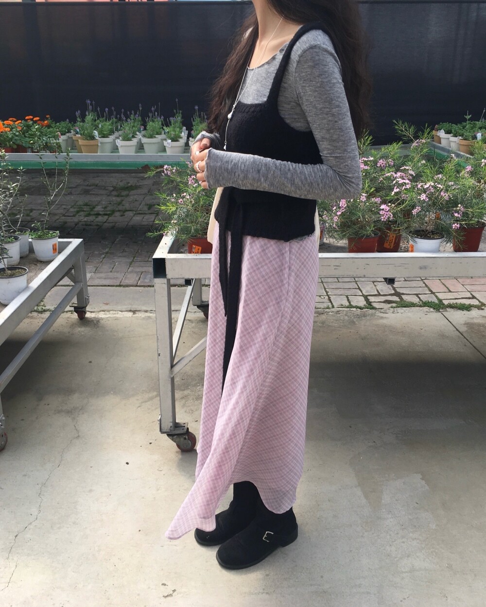 은은한 컬러감과 잔잔한 체크 패턴이 어우러진, 데일리로 부담 없이 즐기기 좋은 오트앤드 메이드 체크 롱 스커트입니다.