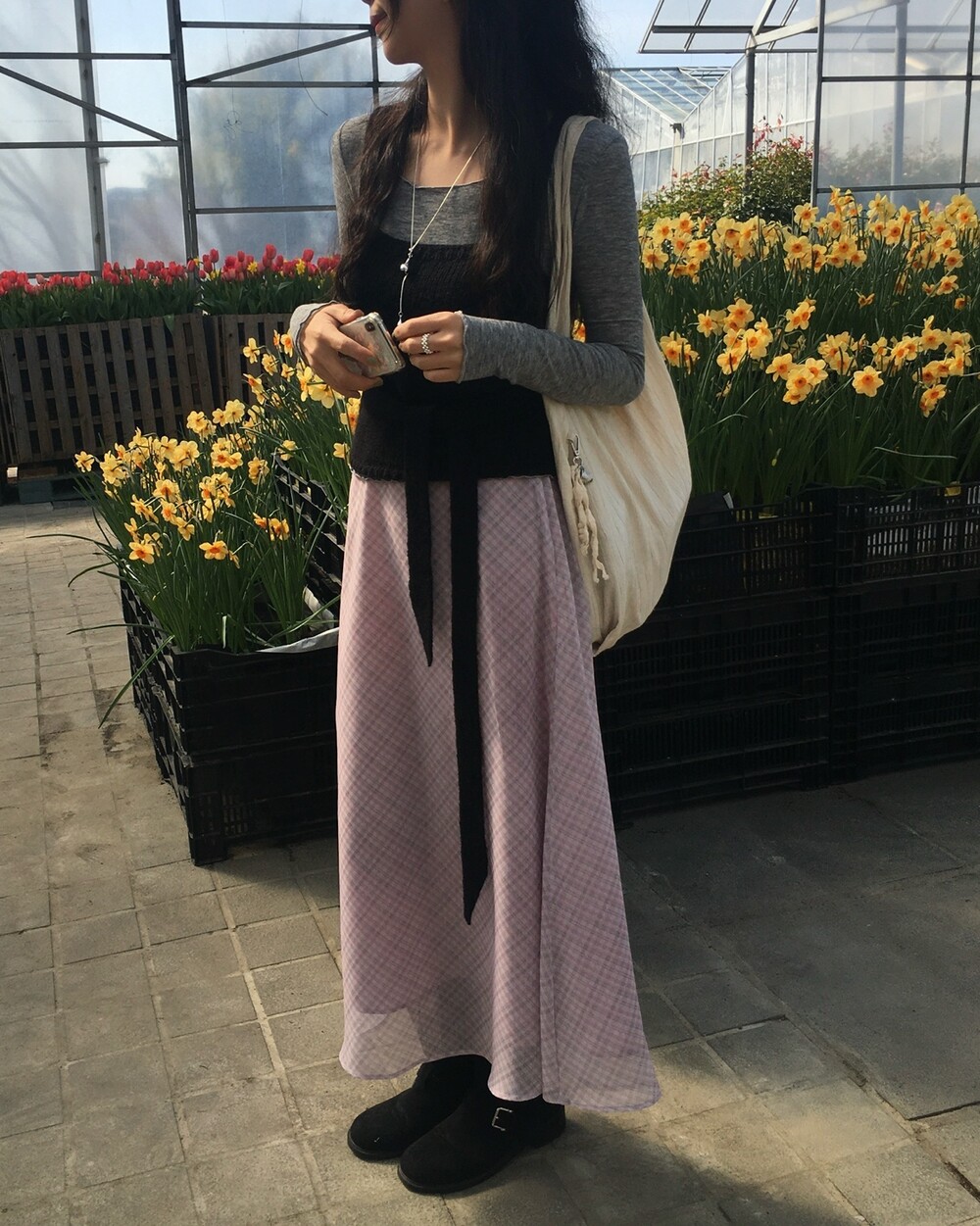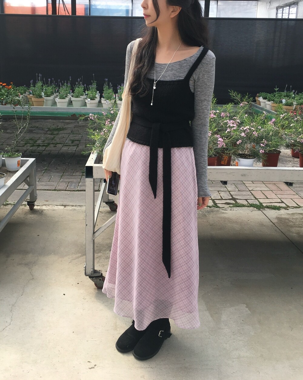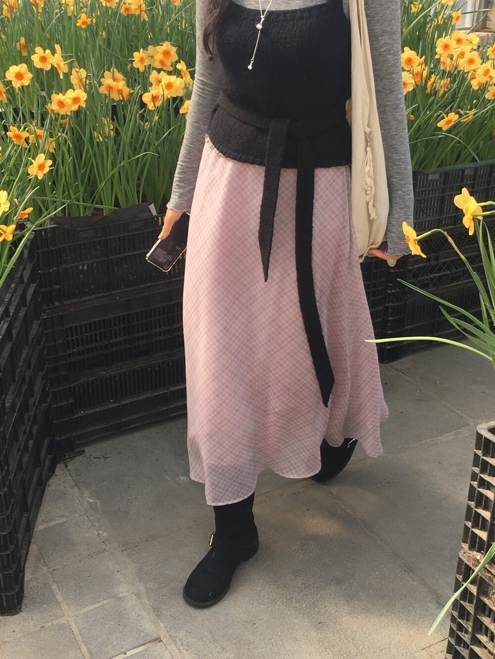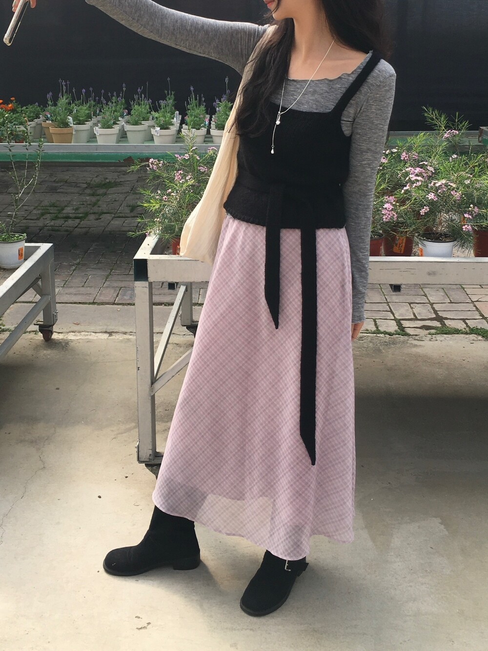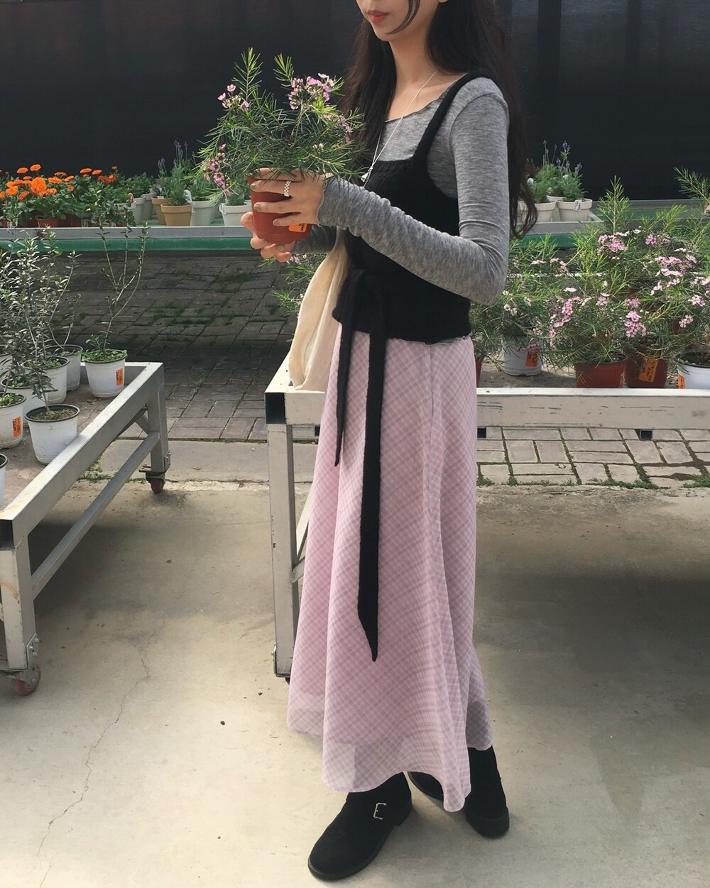 은은한 컬러감과 잔잔한 체크 패턴이 어우러진, 데일리로 부담 없이 즐기기 좋은 오트앤드 메이드 체크 롱 스커트입니다.