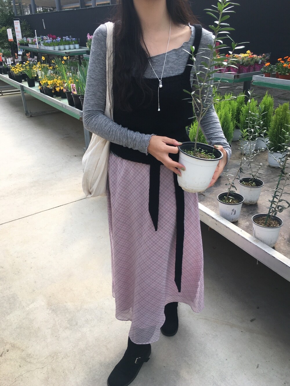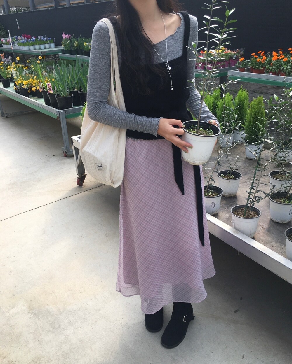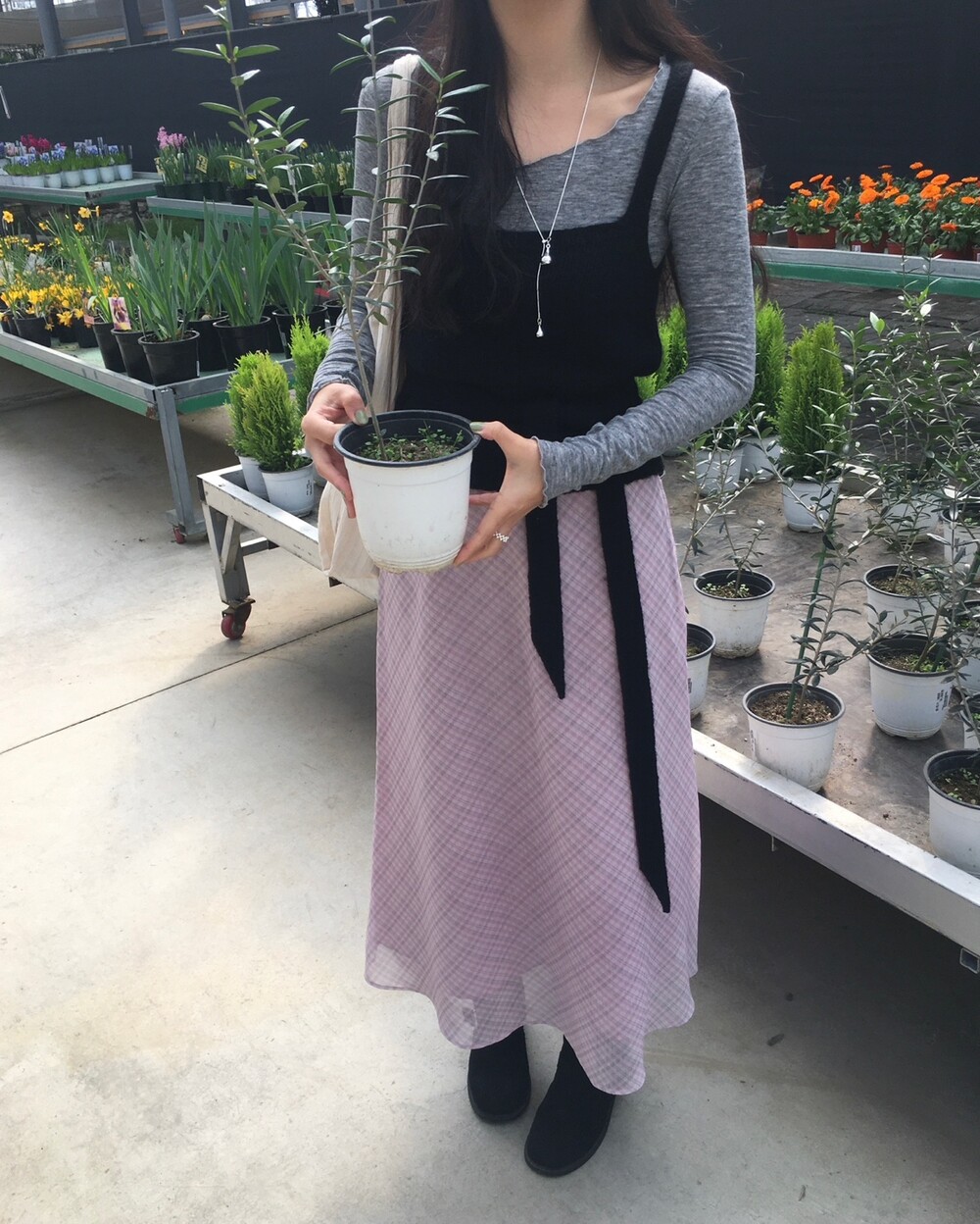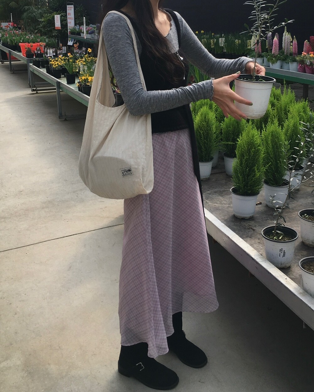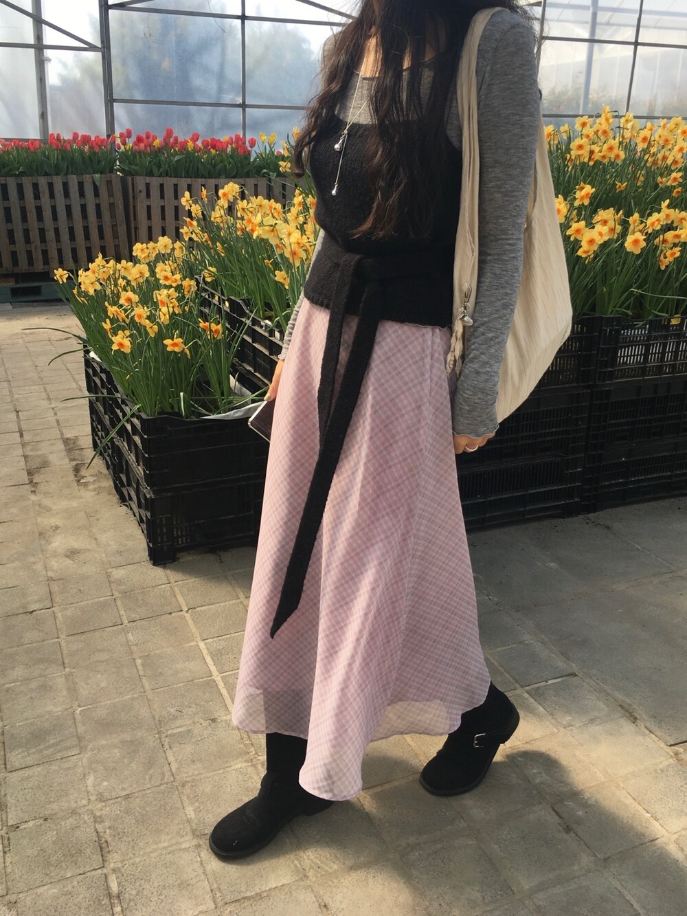 은은한 컬러감과 잔잔한 체크 패턴이 어우러진, 데일리로 부담 없이 즐기기 좋은 오트앤드 메이드 체크 롱 스커트입니다.