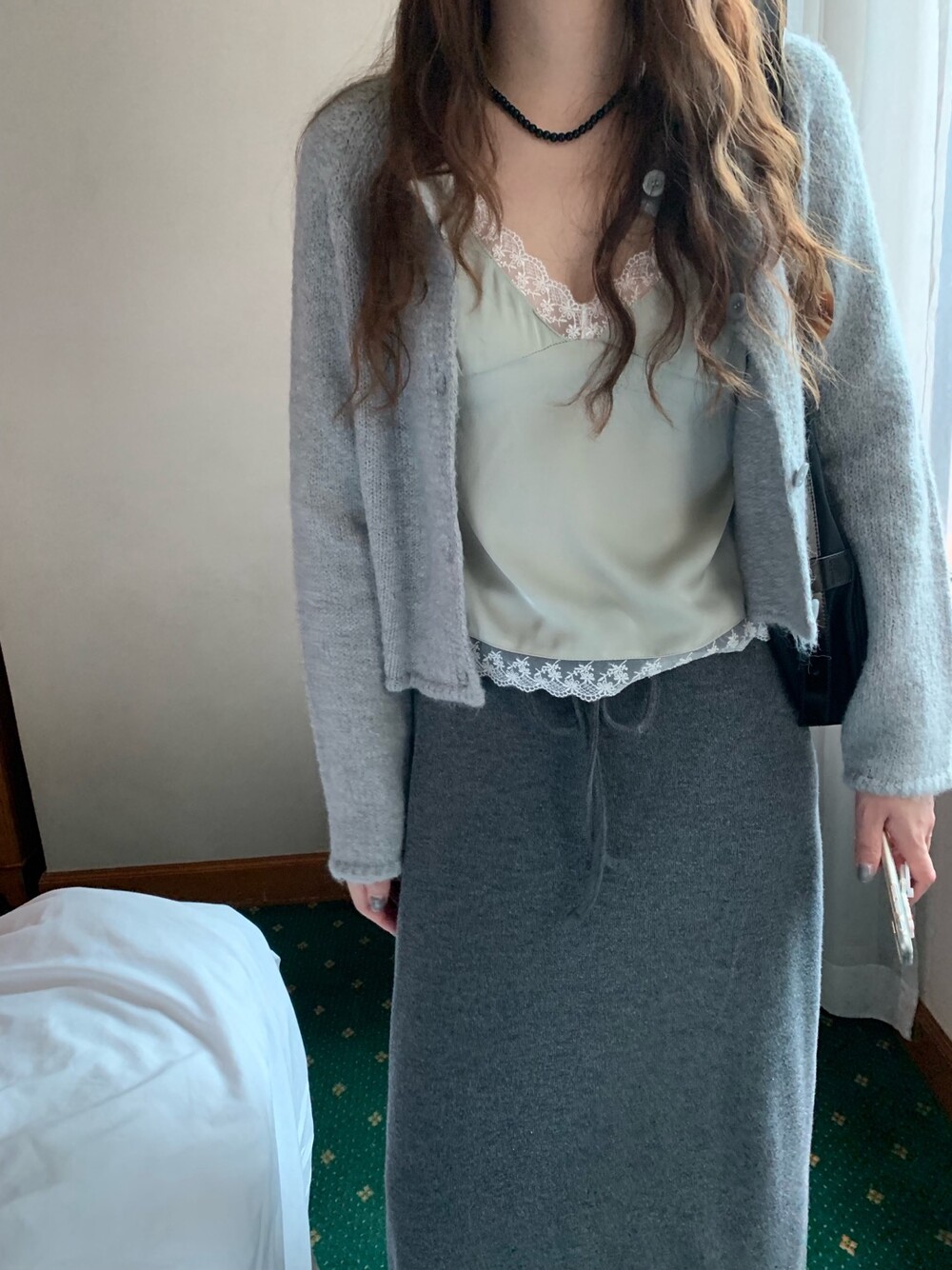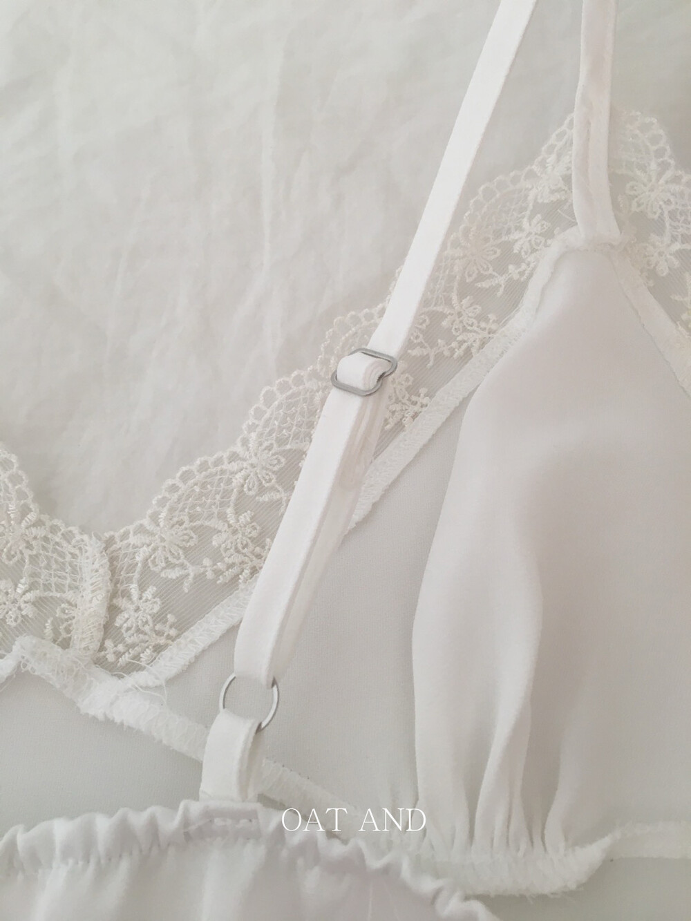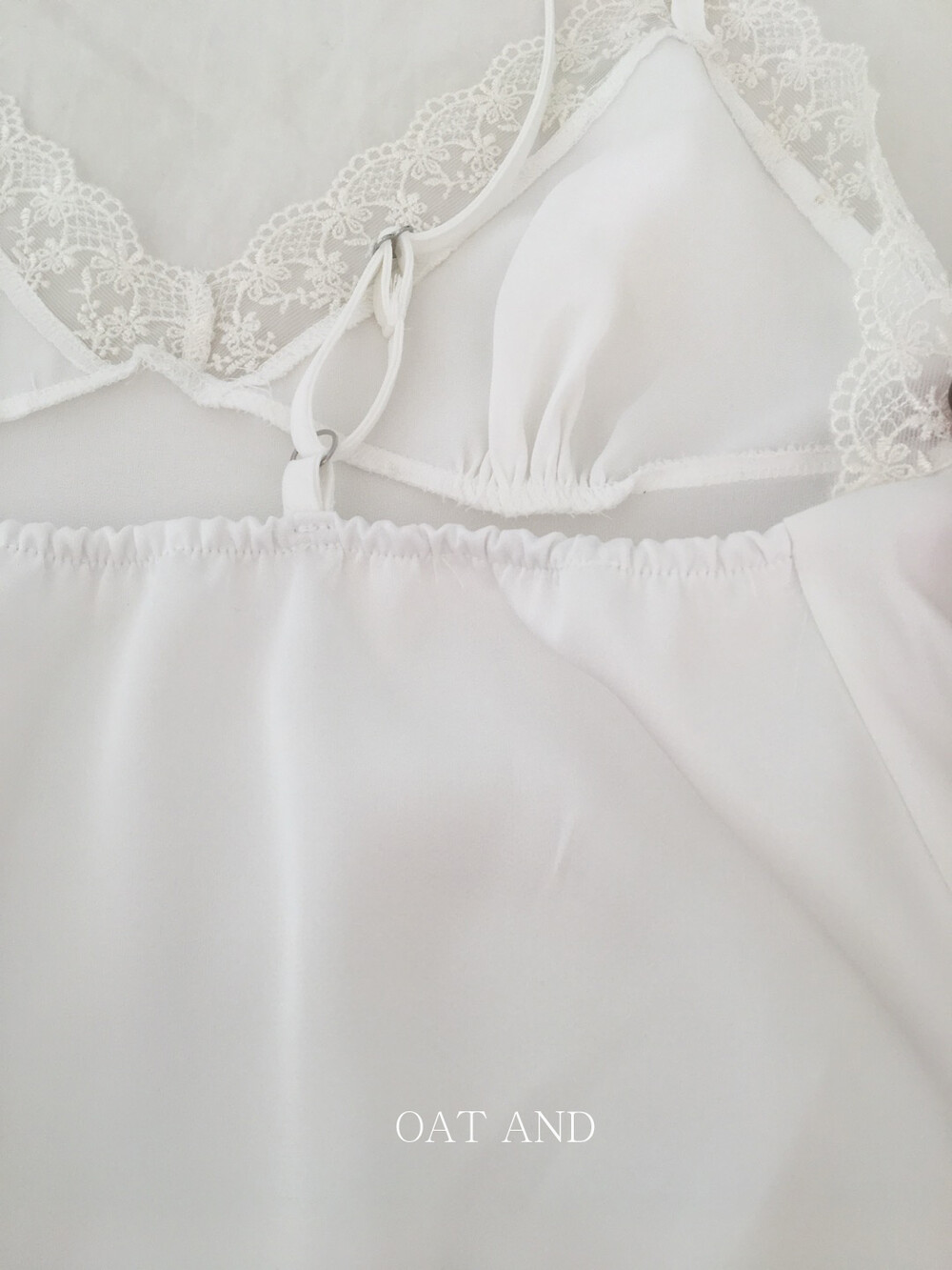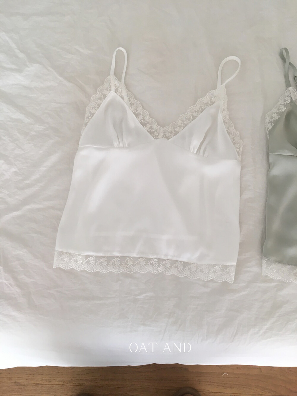 은은한 광택감이 느껴지는 실키한 소재와 정교한 레이스가 조화를 이루어 청순하면서도 빈티지한 무드를 자아내는 뷔스티에입니다. 넥라인과 밑단을 따라 흐르는 레이스 디테일이 확실한 포인트가 되어줍니다.