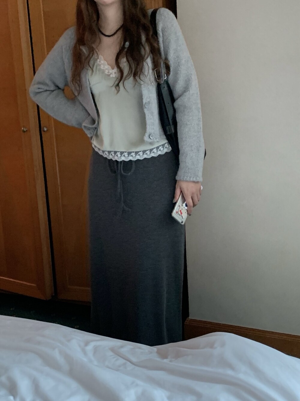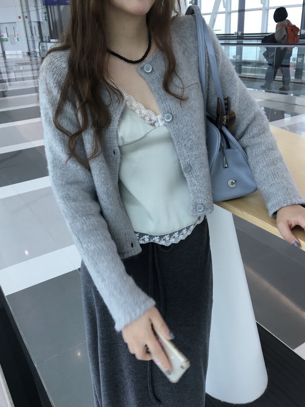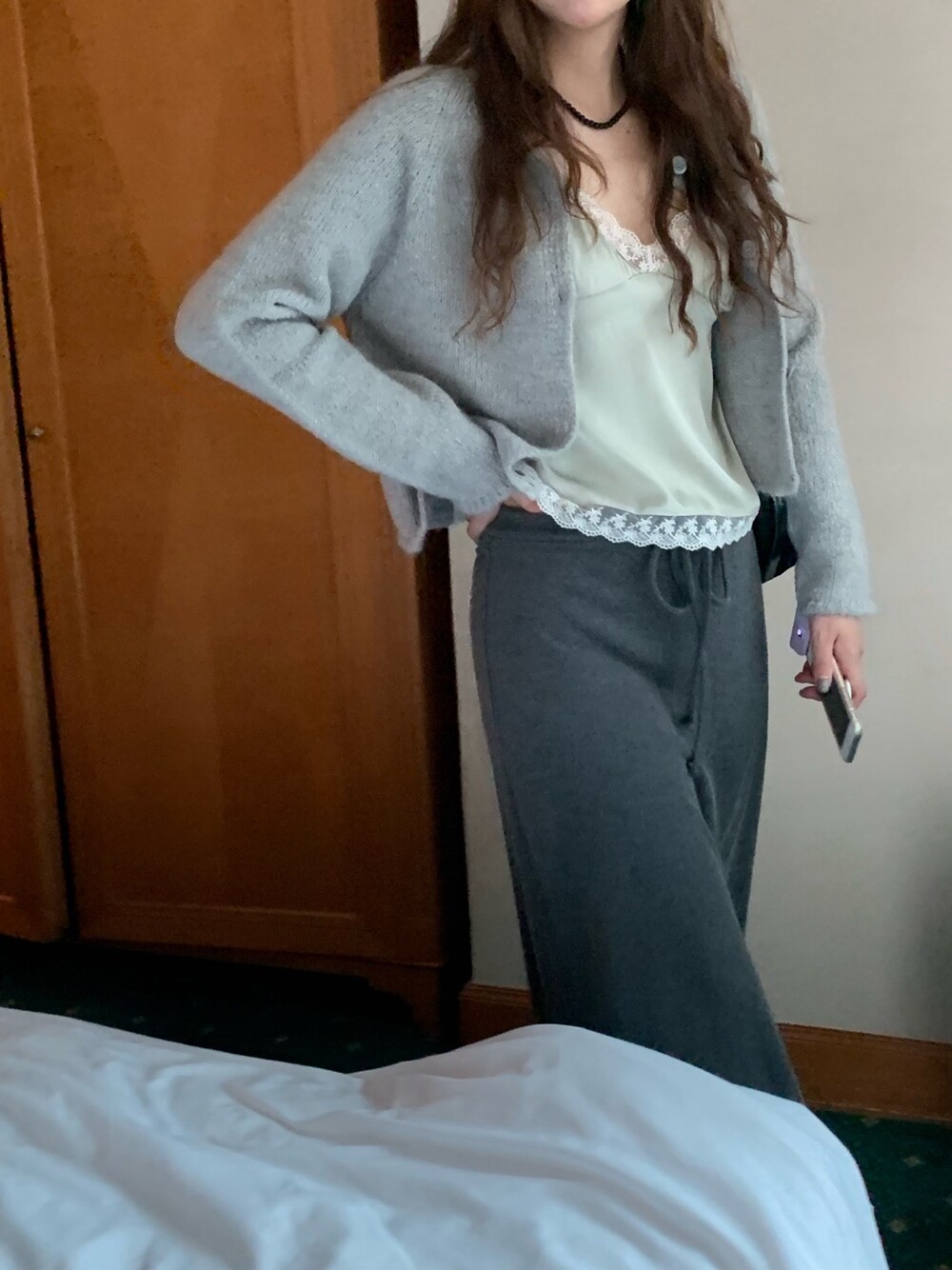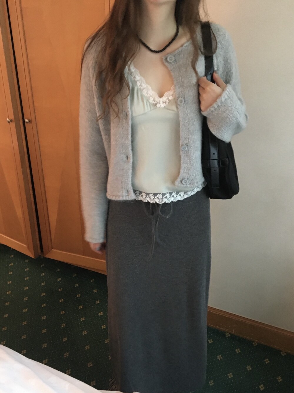 은은한 광택감이 느껴지는 실키한 소재와 정교한 레이스가 조화를 이루어 청순하면서도 빈티지한 무드를 자아내는 뷔스티에입니다. 넥라인과 밑단을 따라 흐르는 레이스 디테일이 확실한 포인트가 되어줍니다.