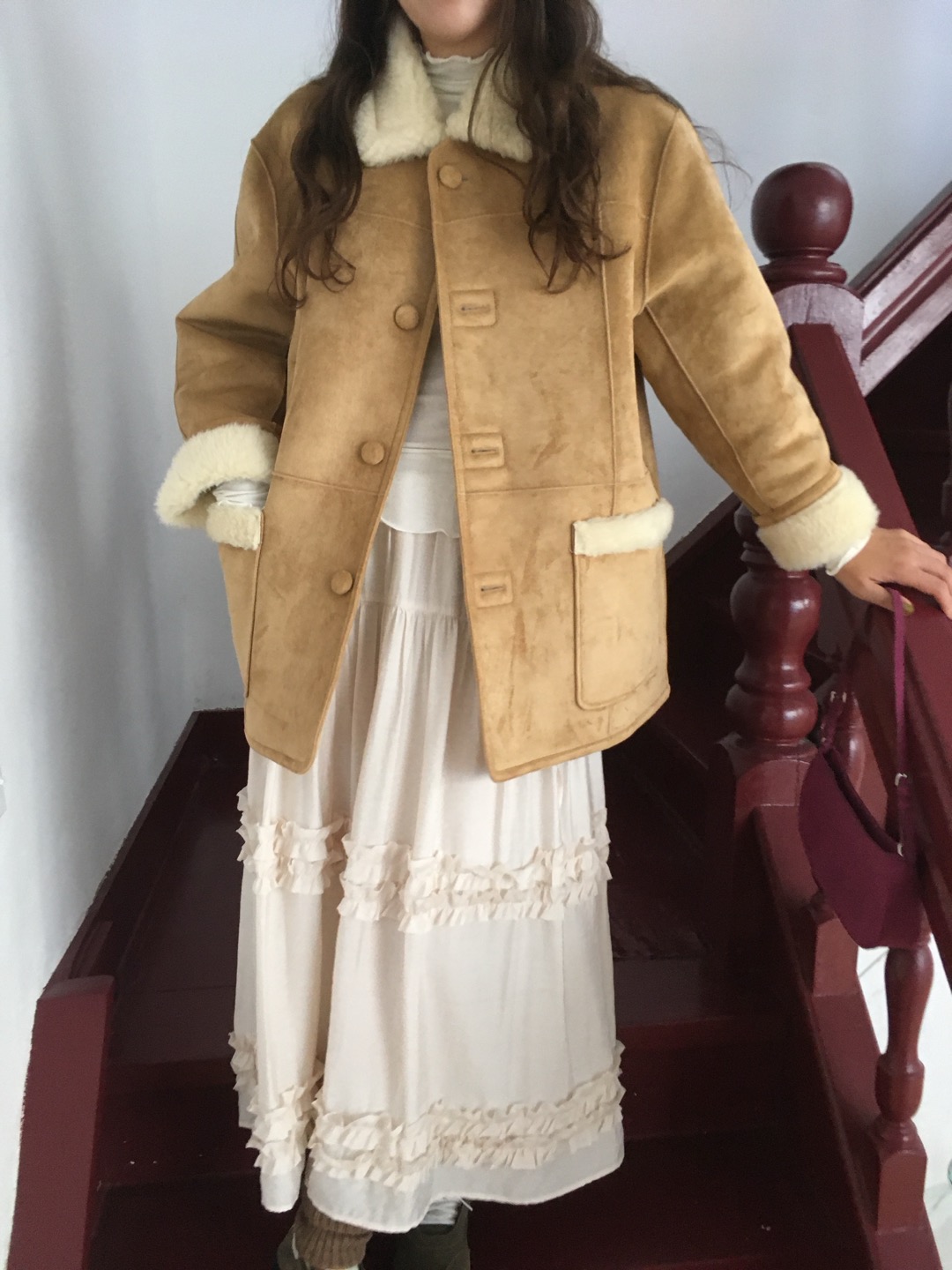 *오버핏 제품이라 아방한 핏의 무스탕 제품입니다. 평소 오버핏을 즐겨 입지 않으시거나, 체구가 작다면 옷이 크게 느껴지실수 있습니다. 신장 160cm 이상 , 상의 55 부터 추천드립니다!
