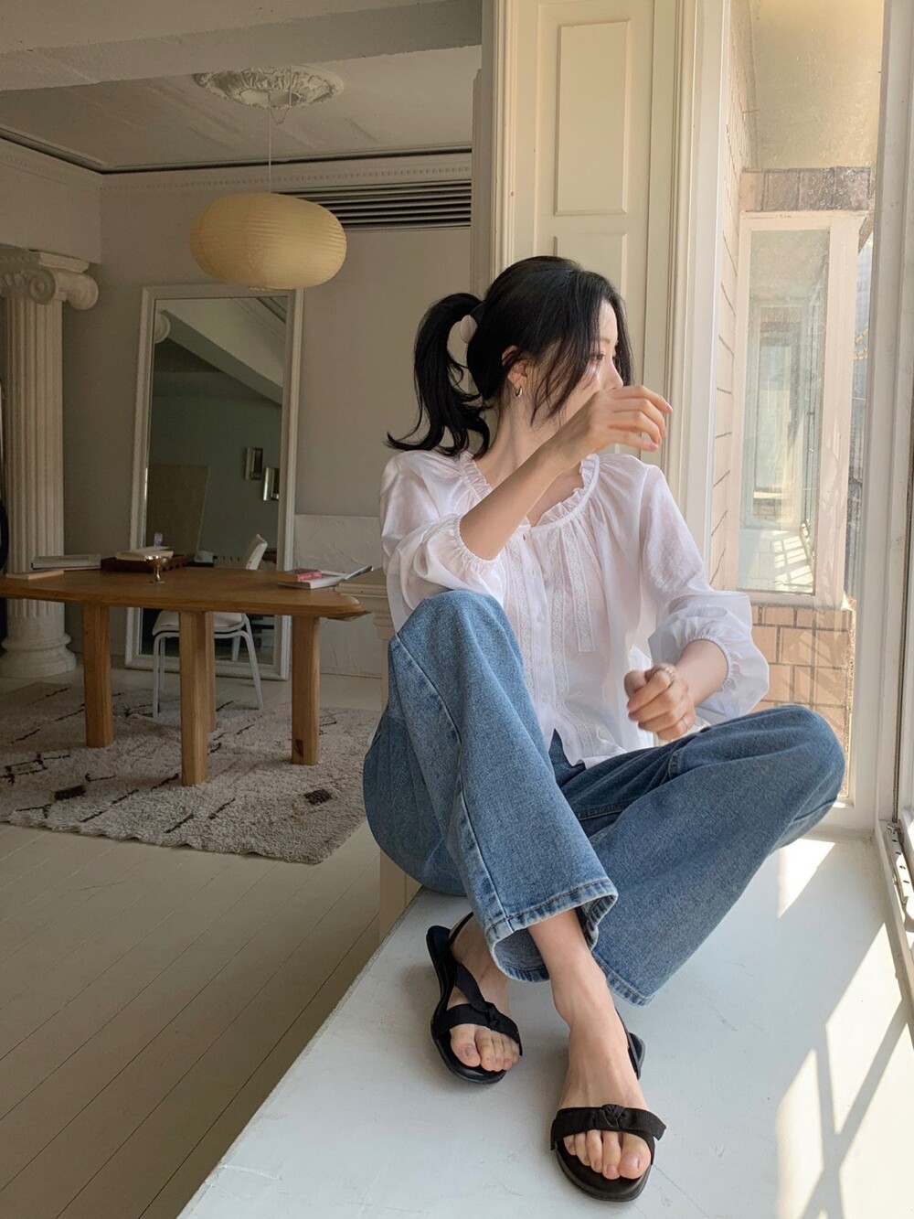 어깨와 소매로 이어지는 풍성한 퍼프 라인은 팔뚝 라인을 가녀리게 커버해주어 체형 보정 효과까지 톡톡히 해준답니다.