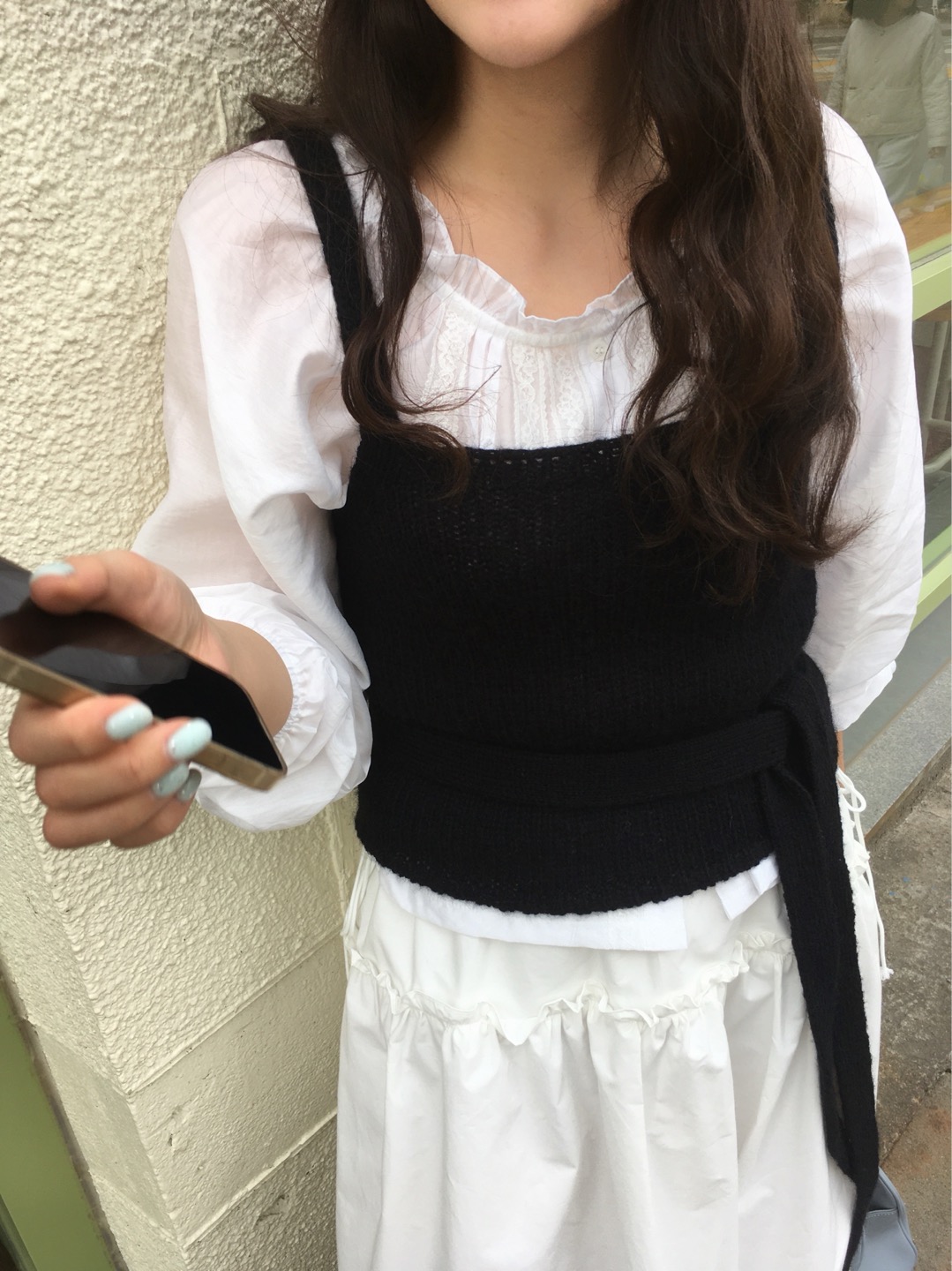 자칫 밋밋할 수 있는 화이트 블라우스에 입체감을 주어 단독으로 입어도 충분히 존재감이 느껴지는 아이템이에요.