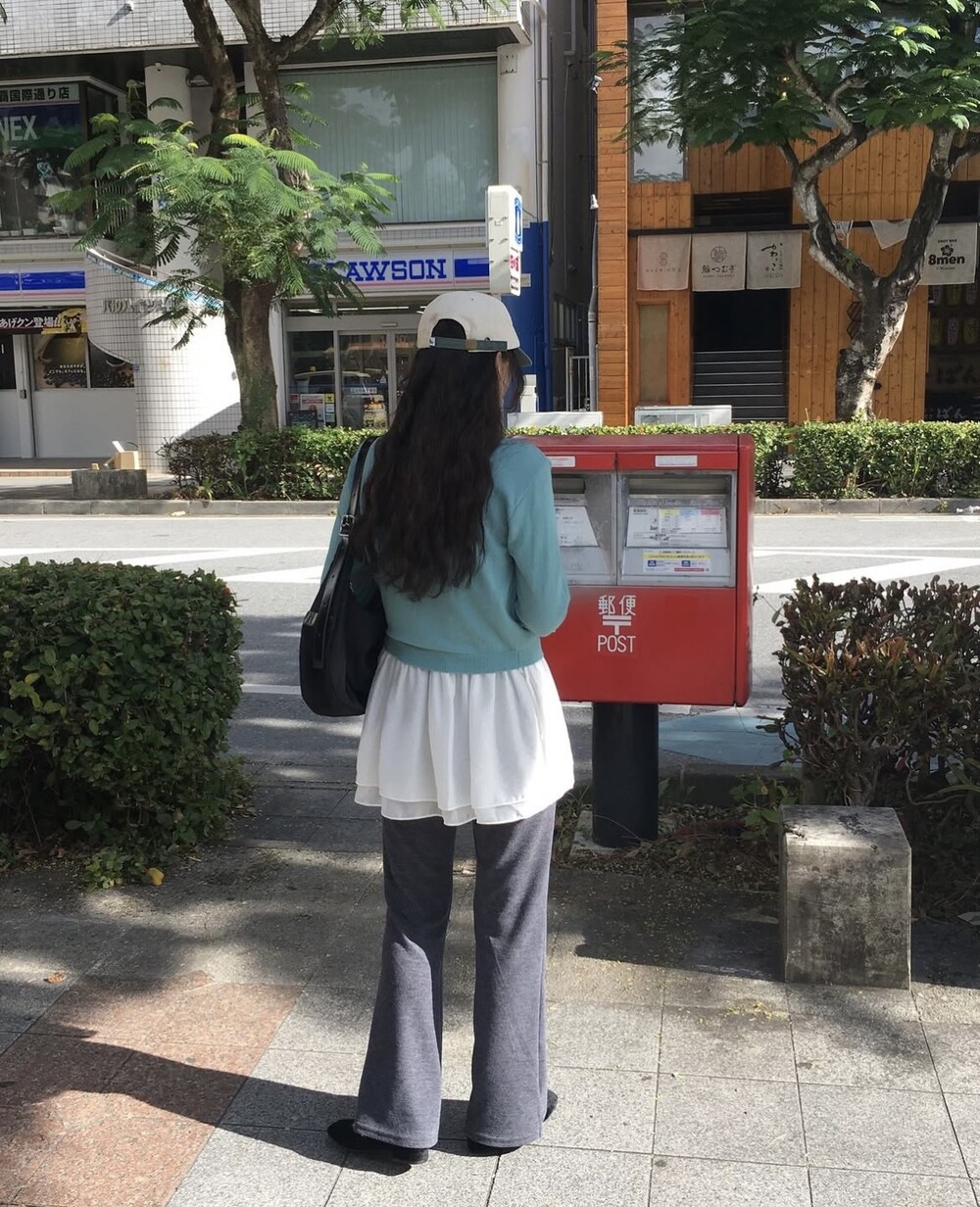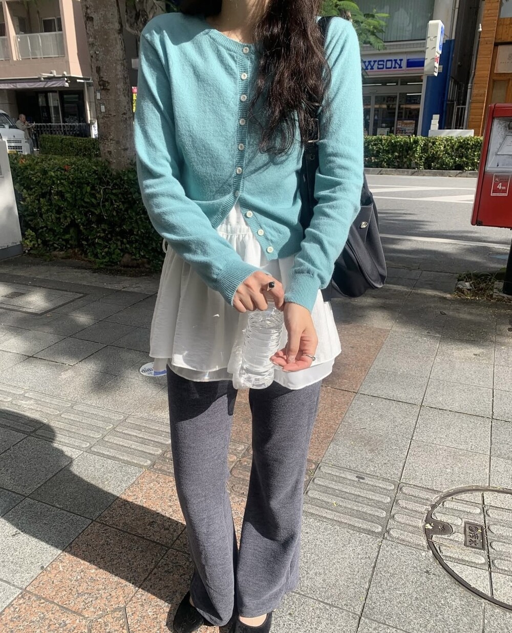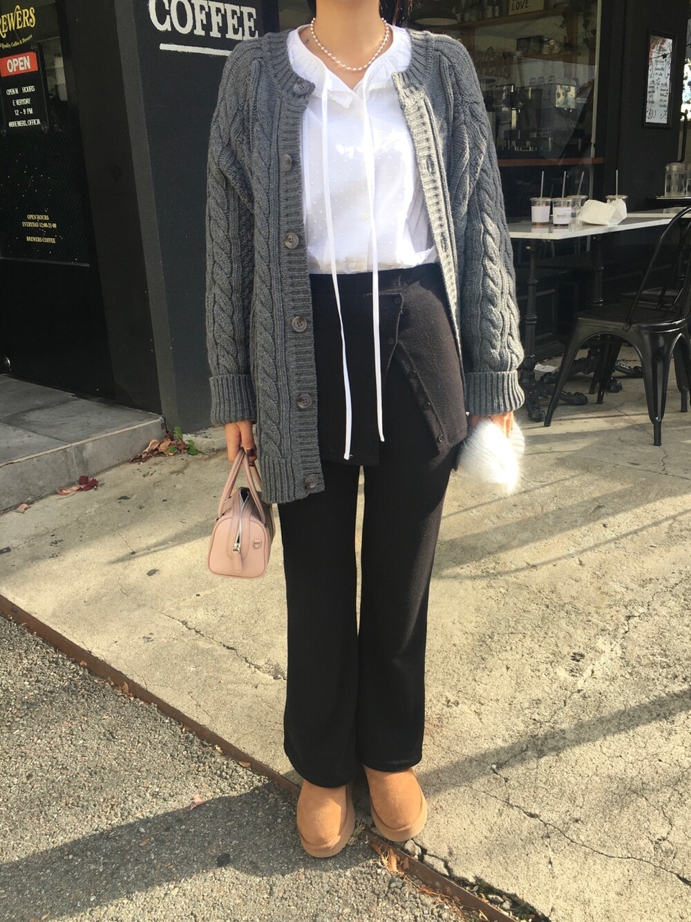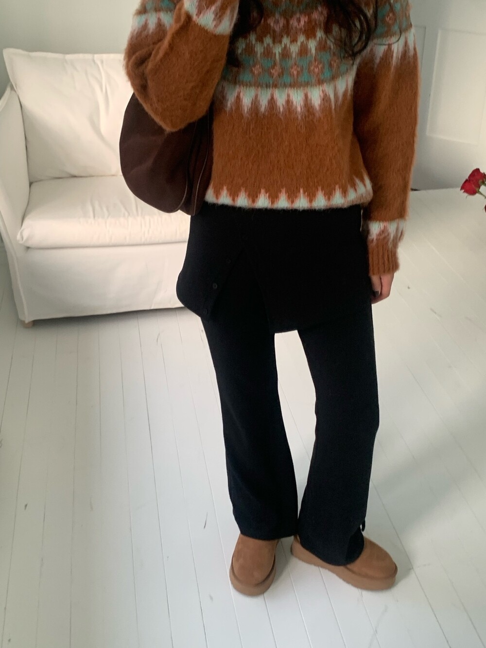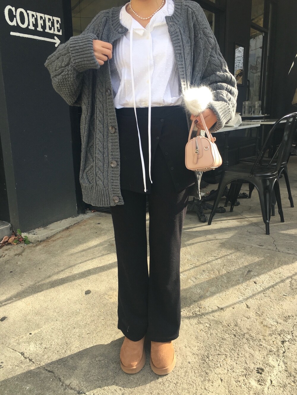 밑단이 넓은 형태의 부츠컷라인으로 다리가 정말 길고 날씬해보이는 효과가 아주 큰 제품이에요.